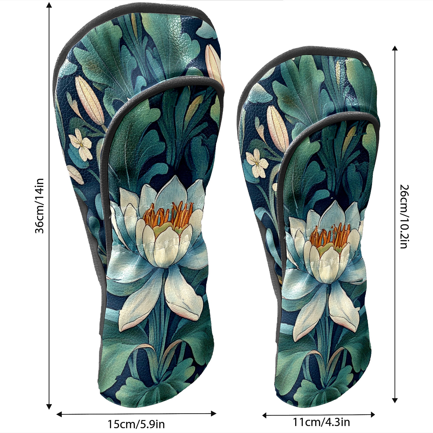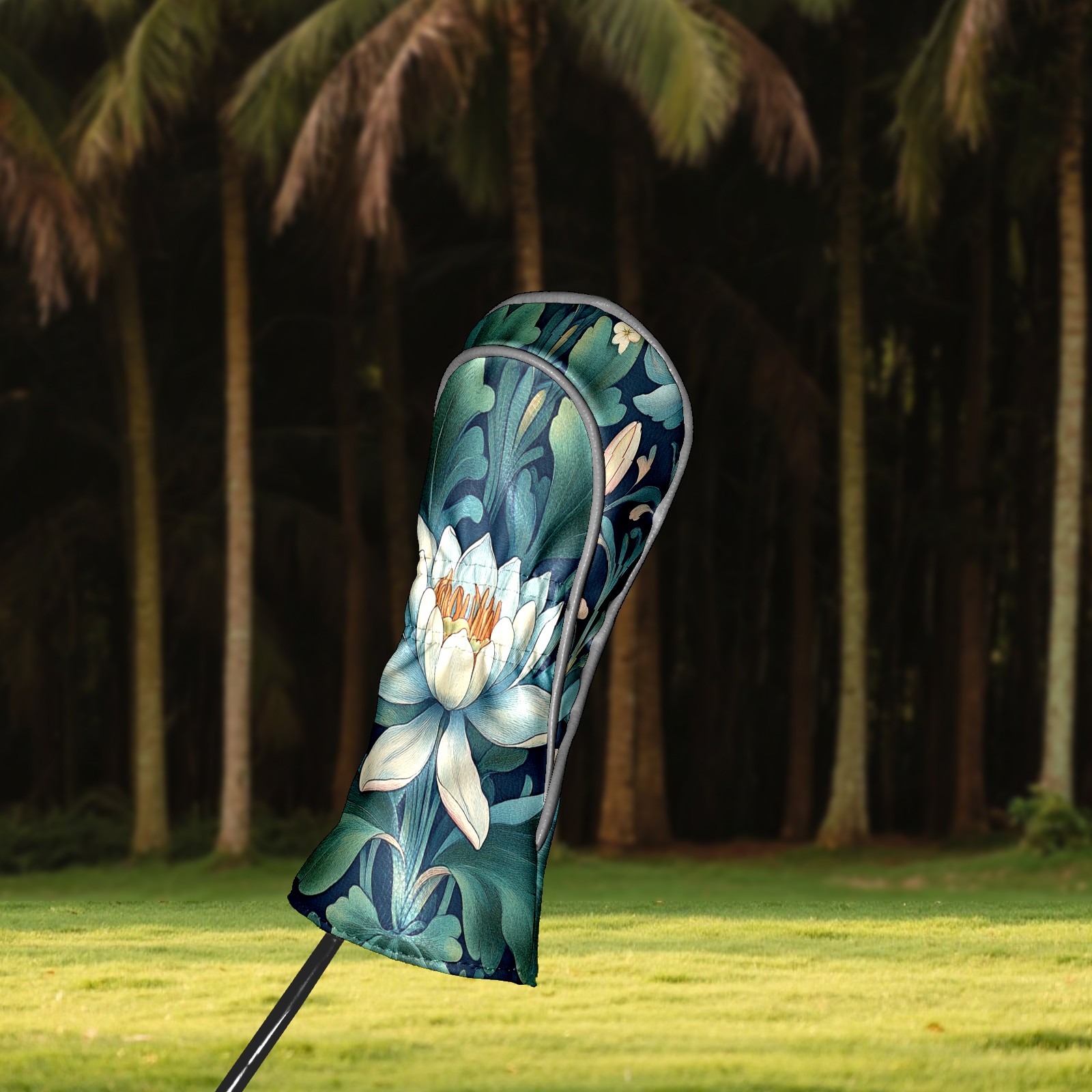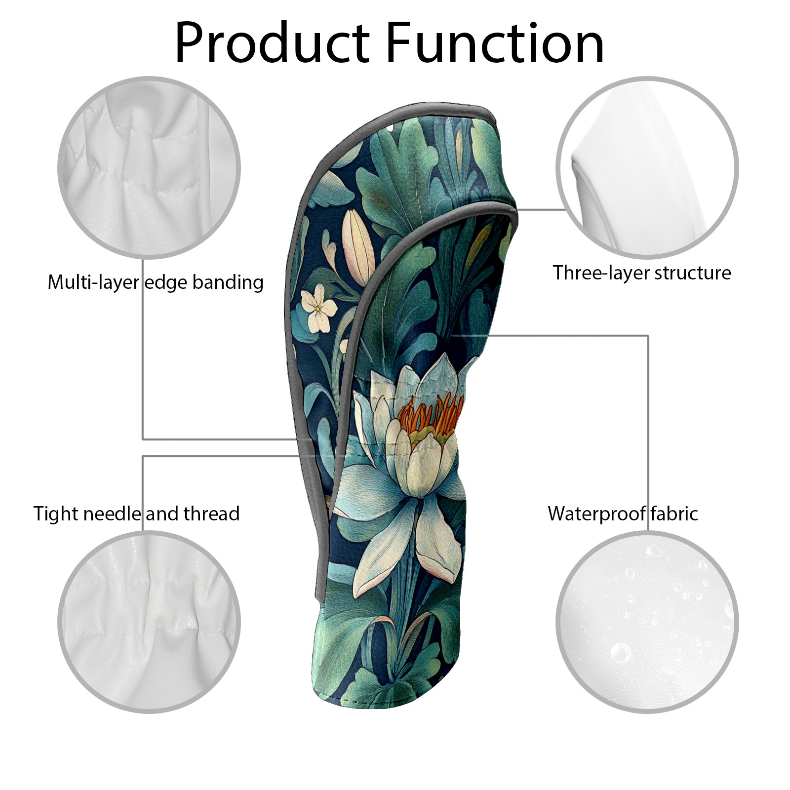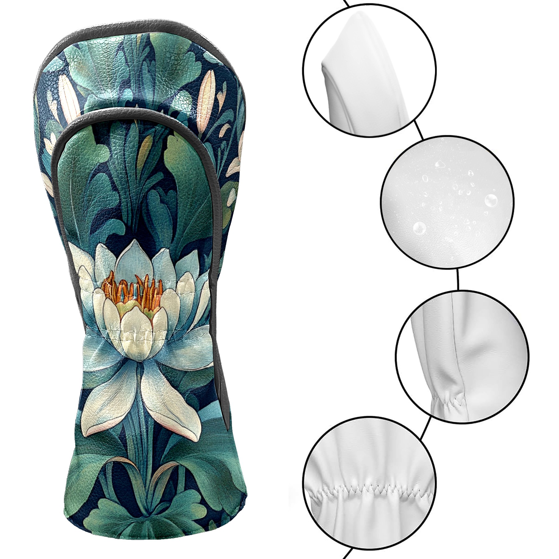 Black Golf Club Head Cover Golf Accessories Head Covers Set For Driver & Fairway Woods Vintage Blue Flowers