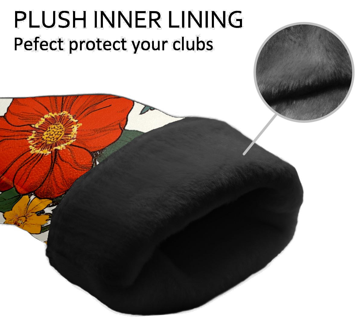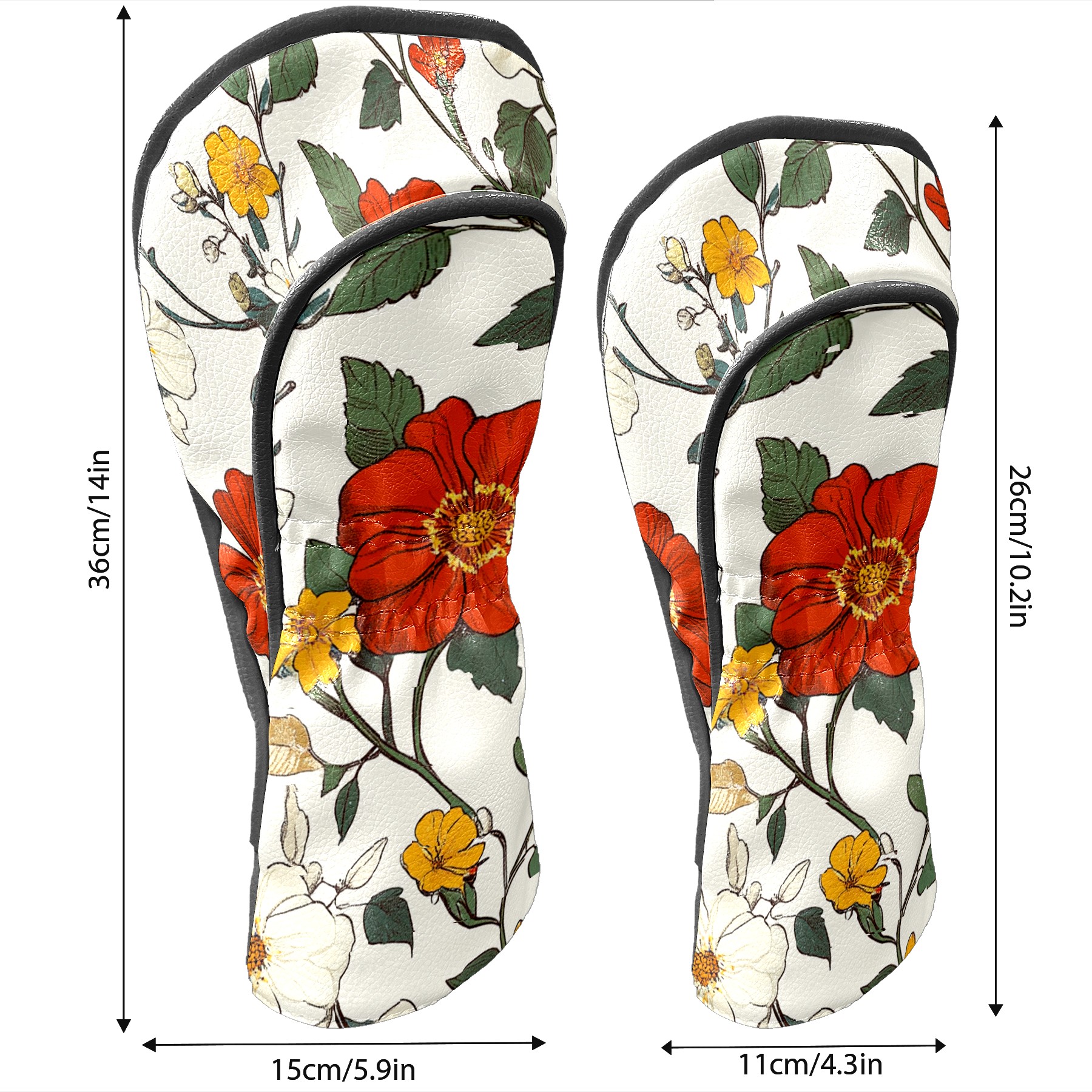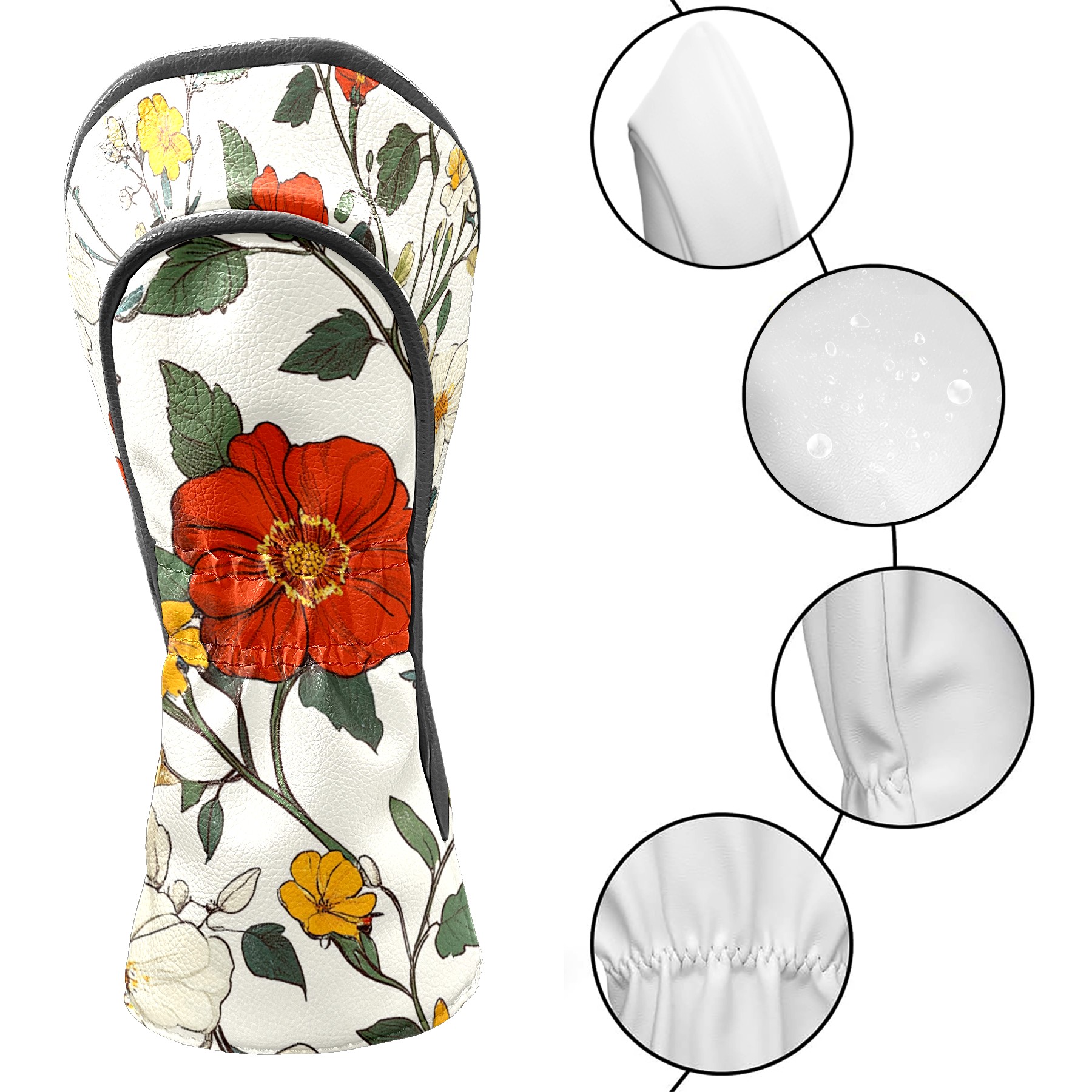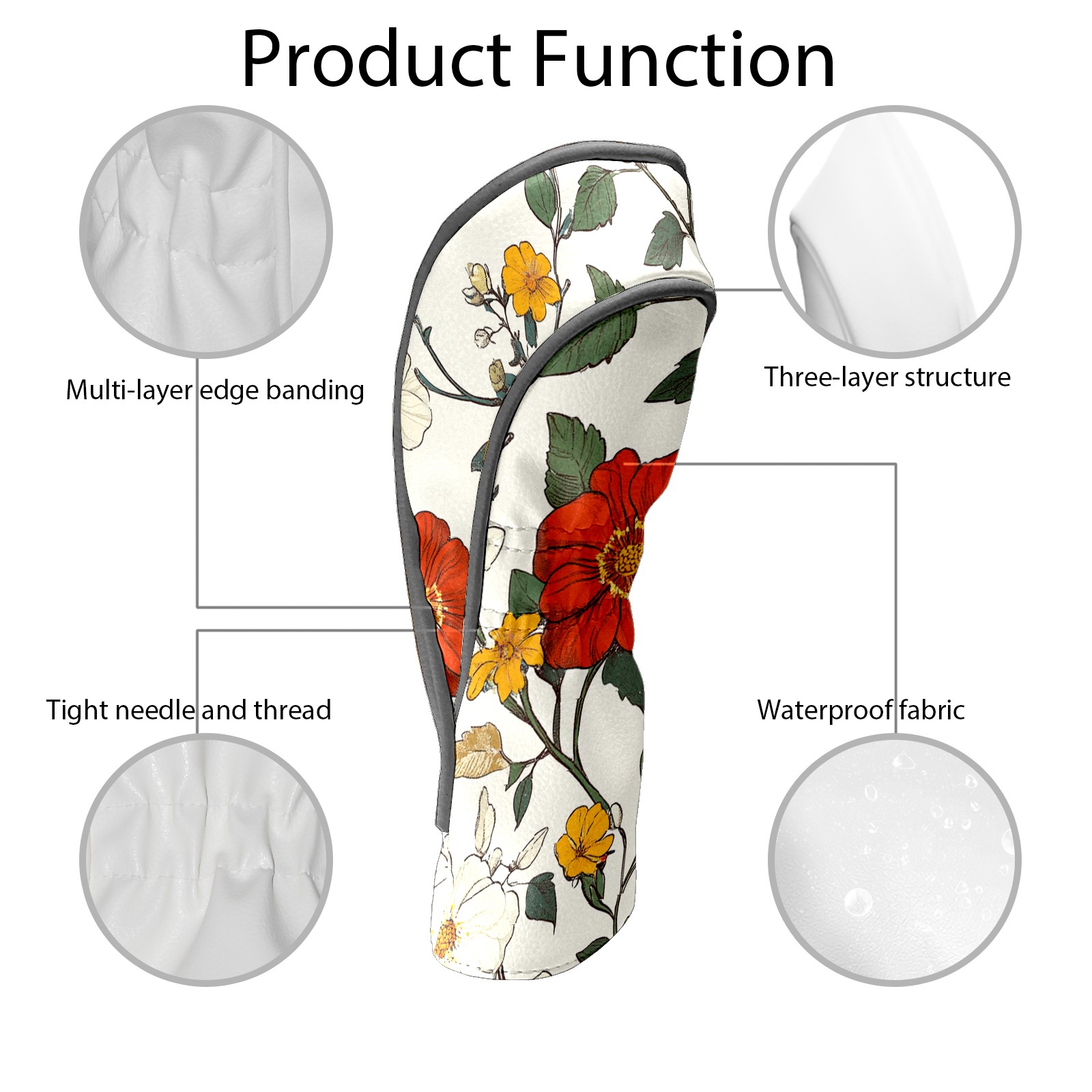 Black Golf Club Head Cover Golf Accessories Head Covers Set For Driver & Fairway Woods Red Yellow Flowers