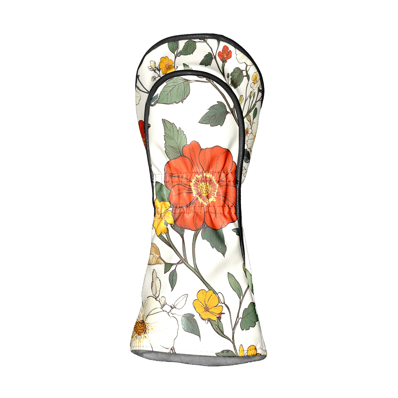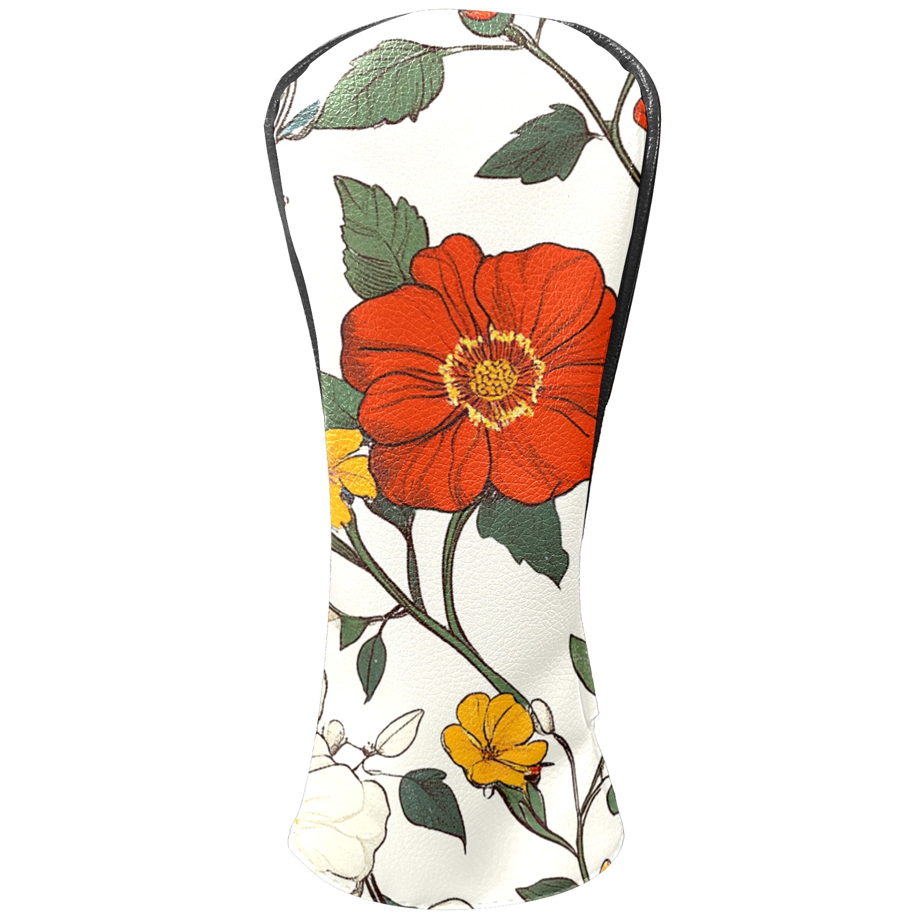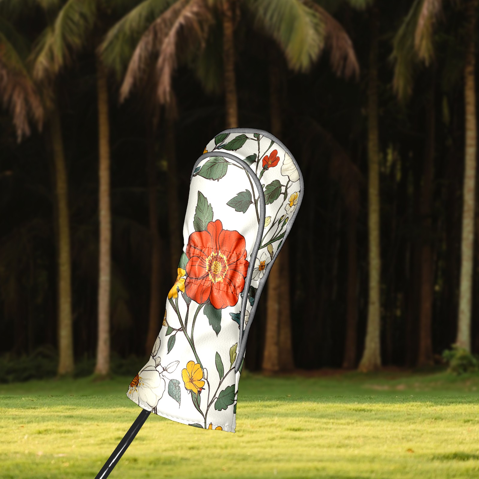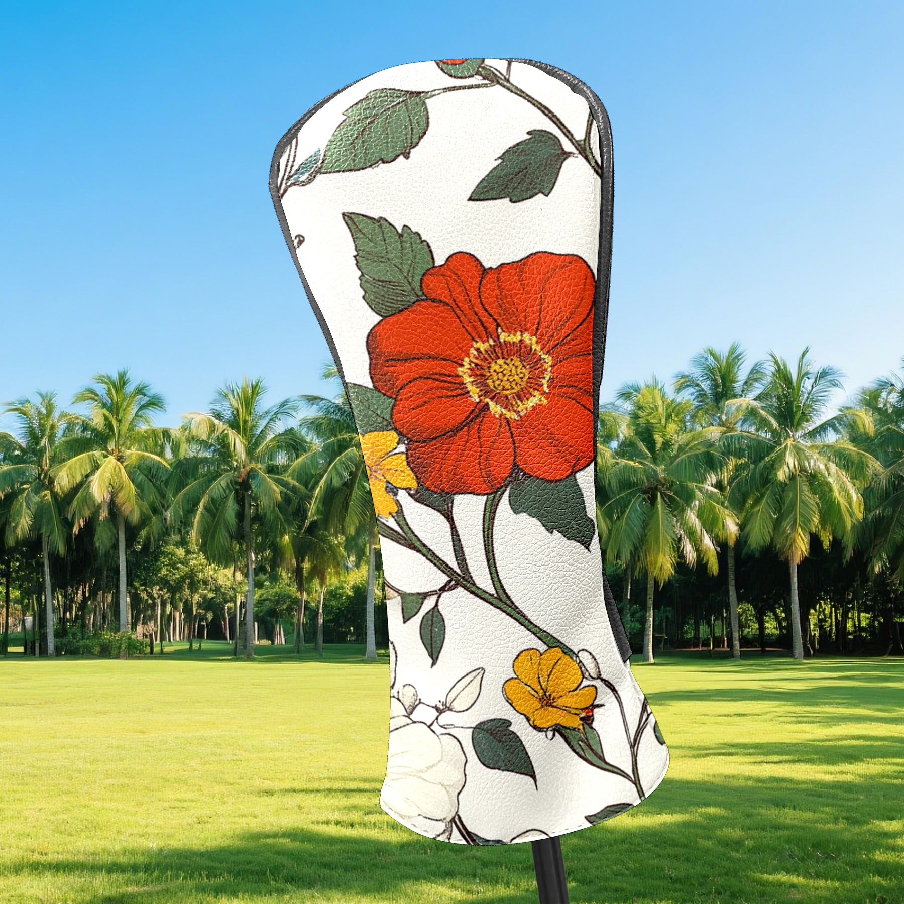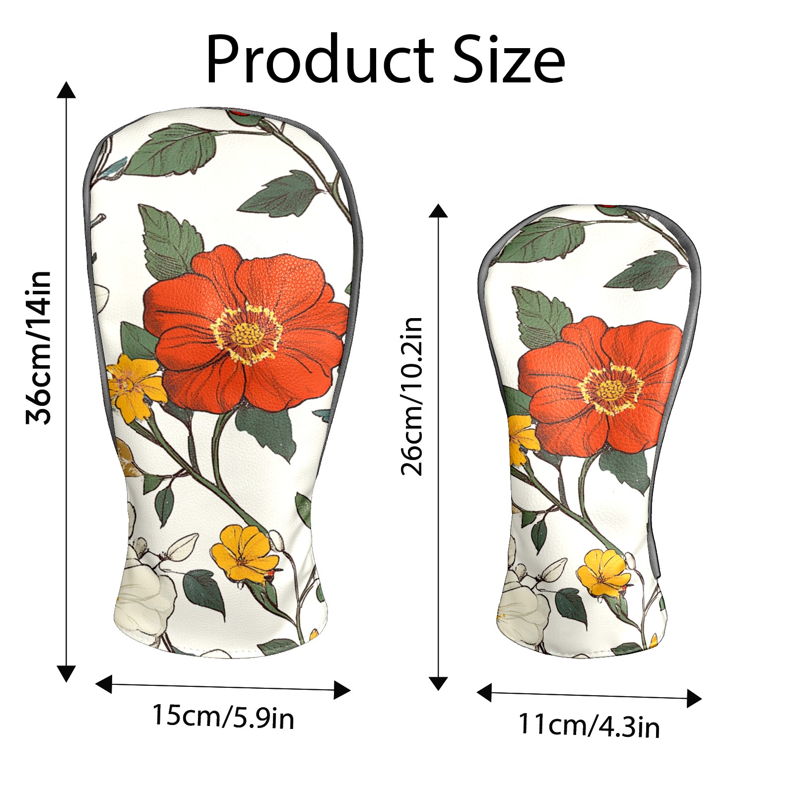 Black Golf Club Head Cover Golf Accessories Head Covers Set For Driver & Fairway Woods Red Yellow Flowers