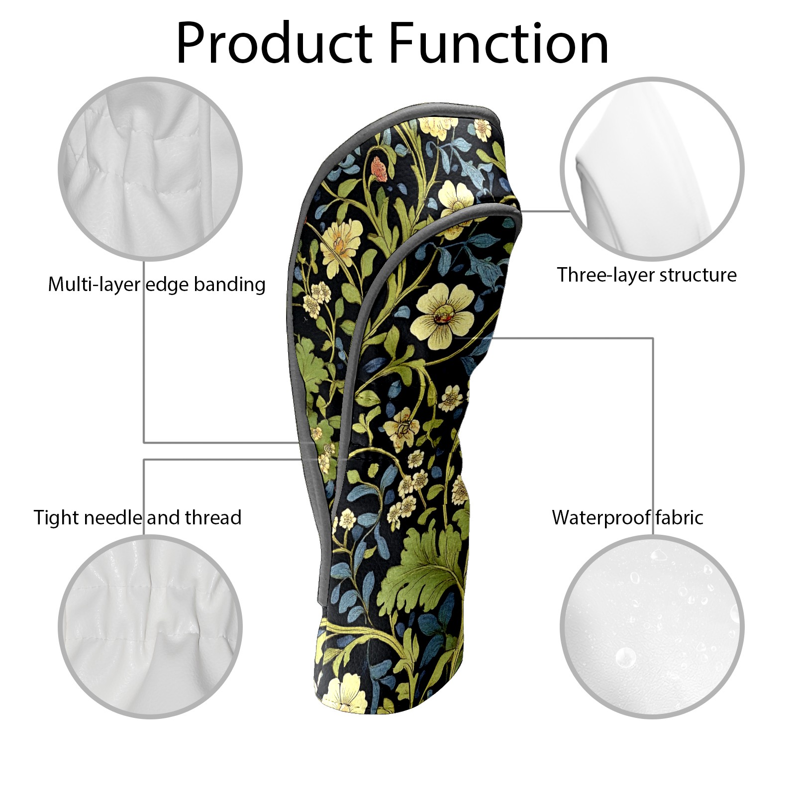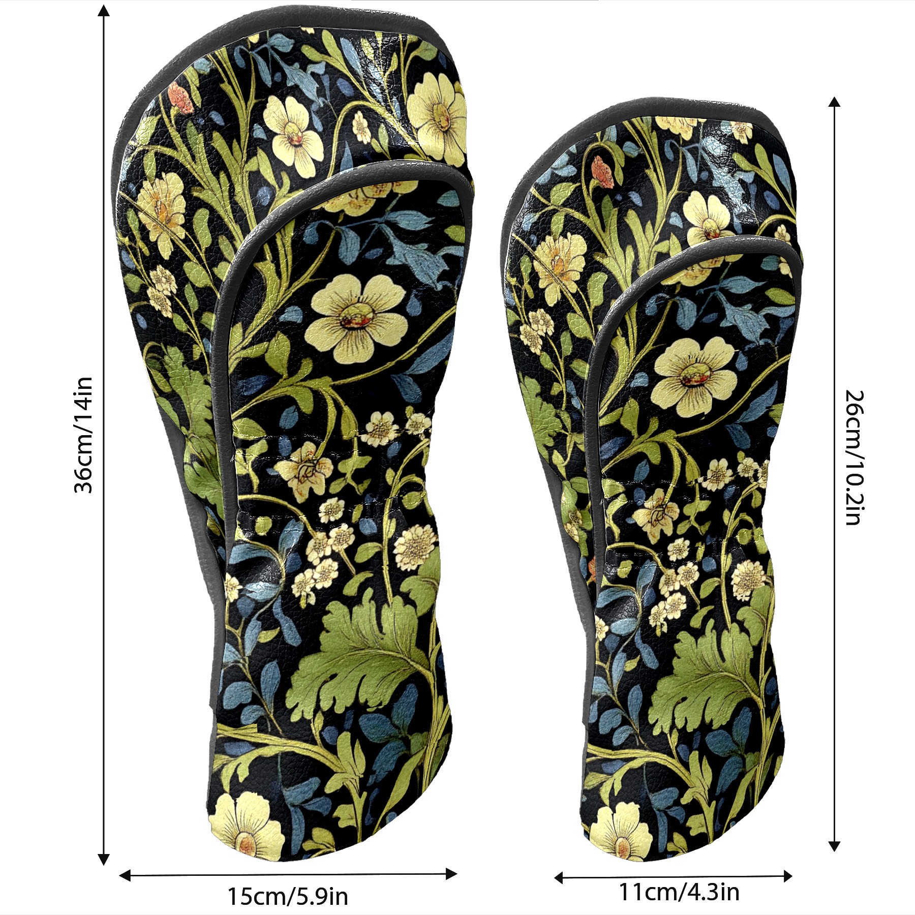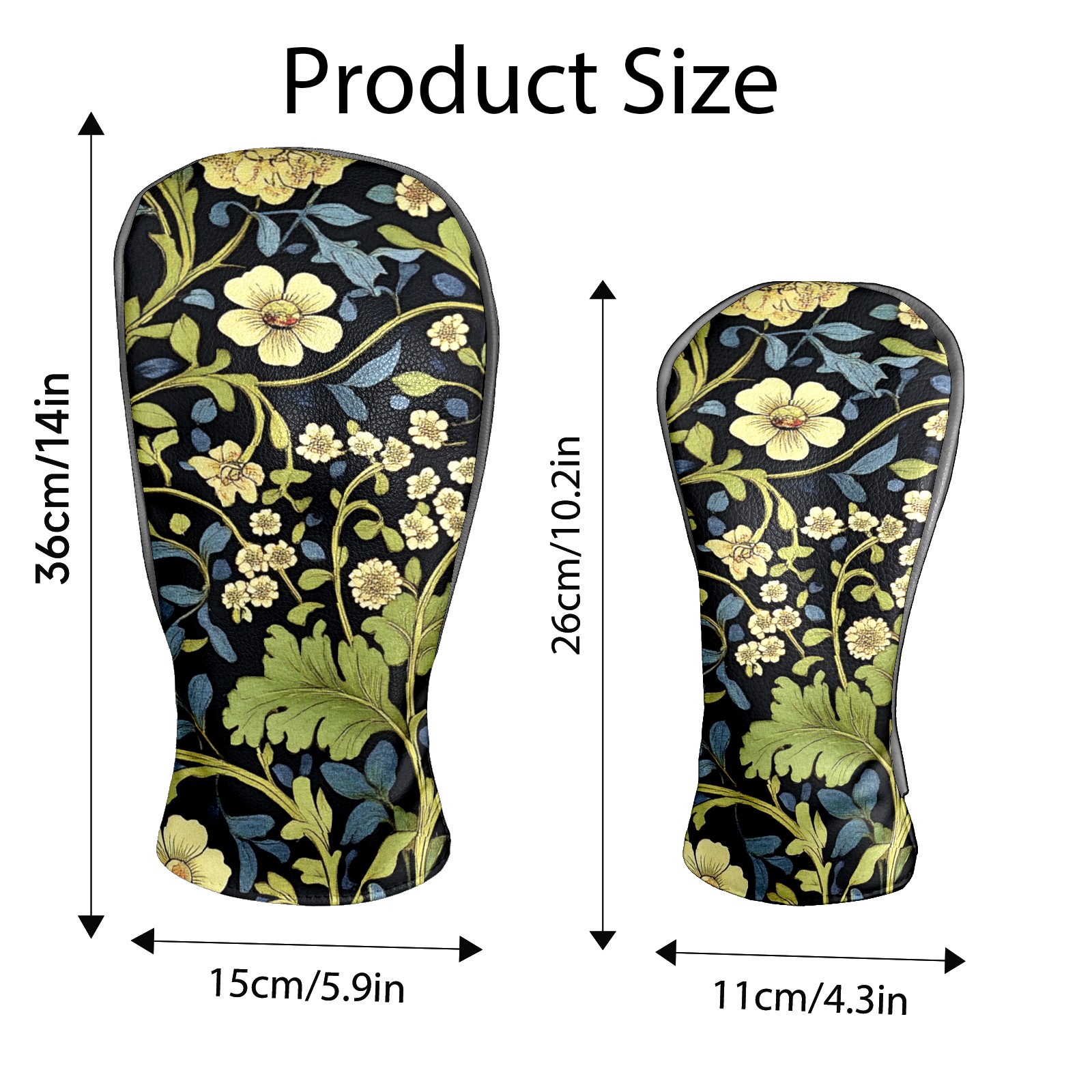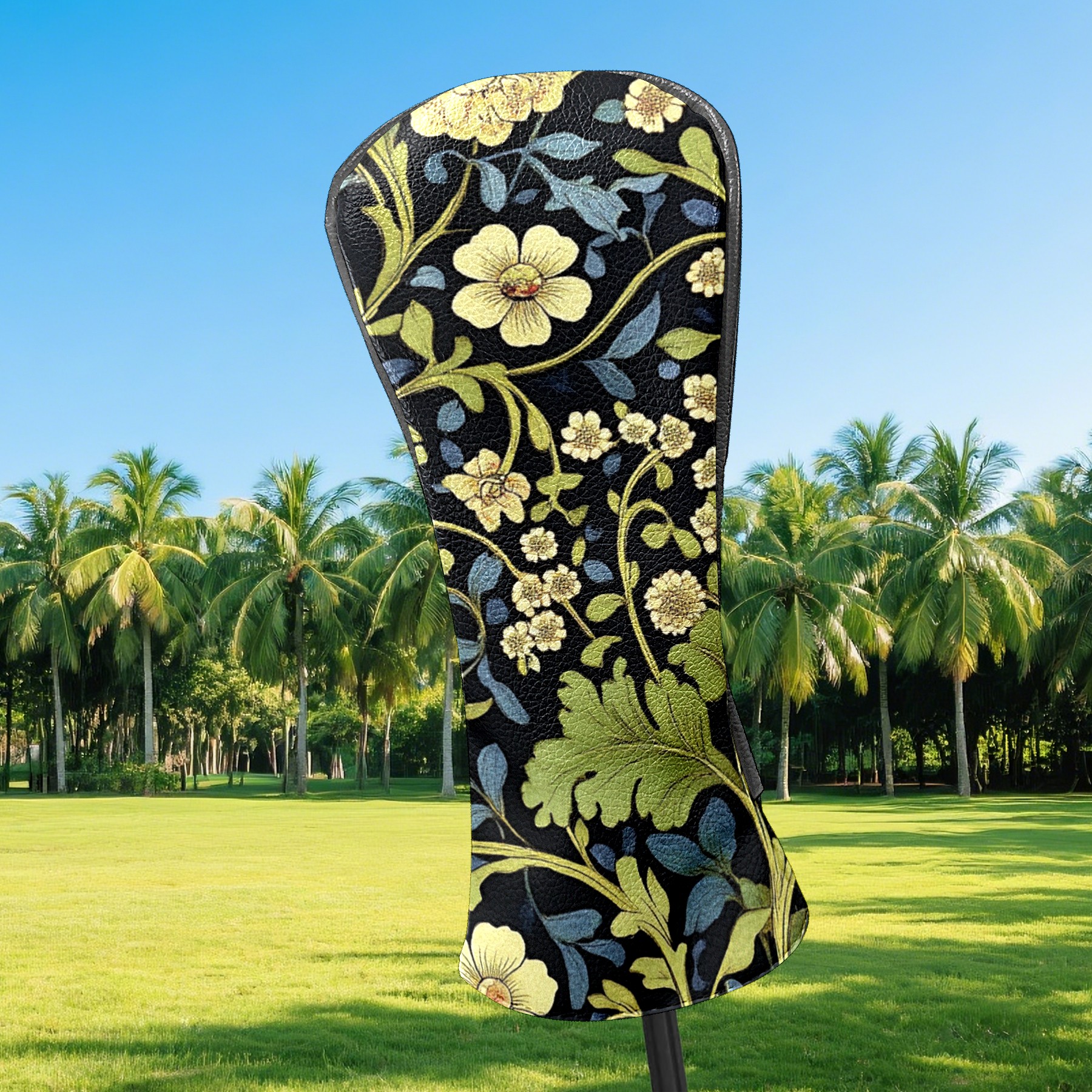 Black Golf Club Head Cover Golf Accessories Head Covers Set For Driver & Fairway Woods Red Yellow Floral