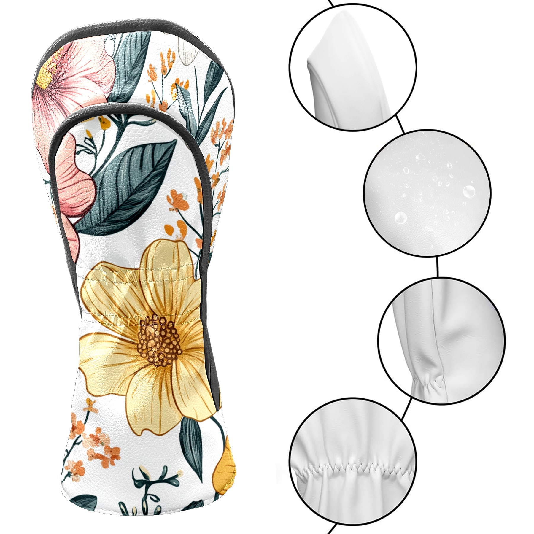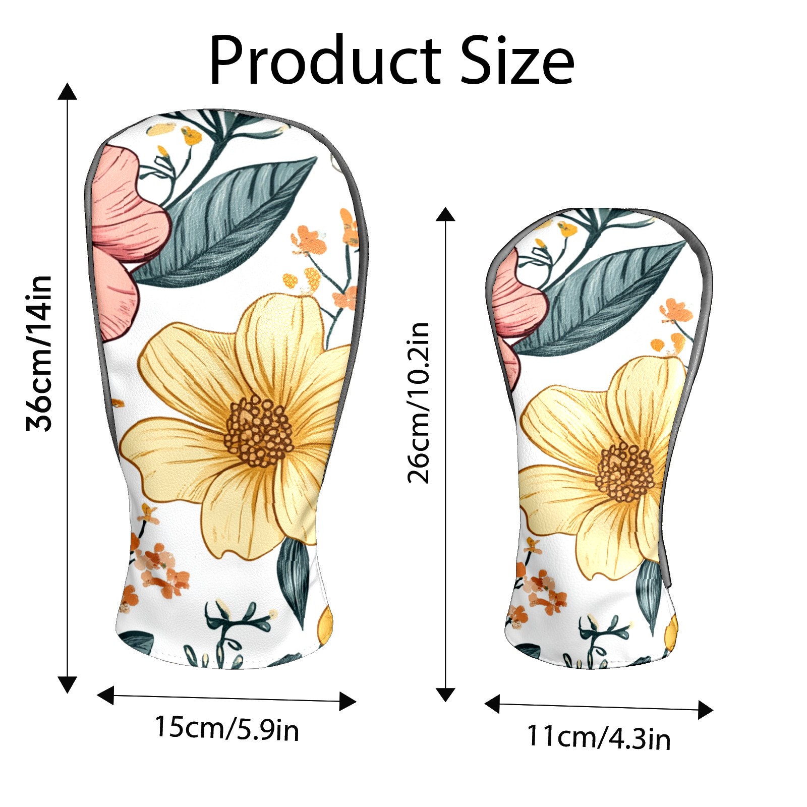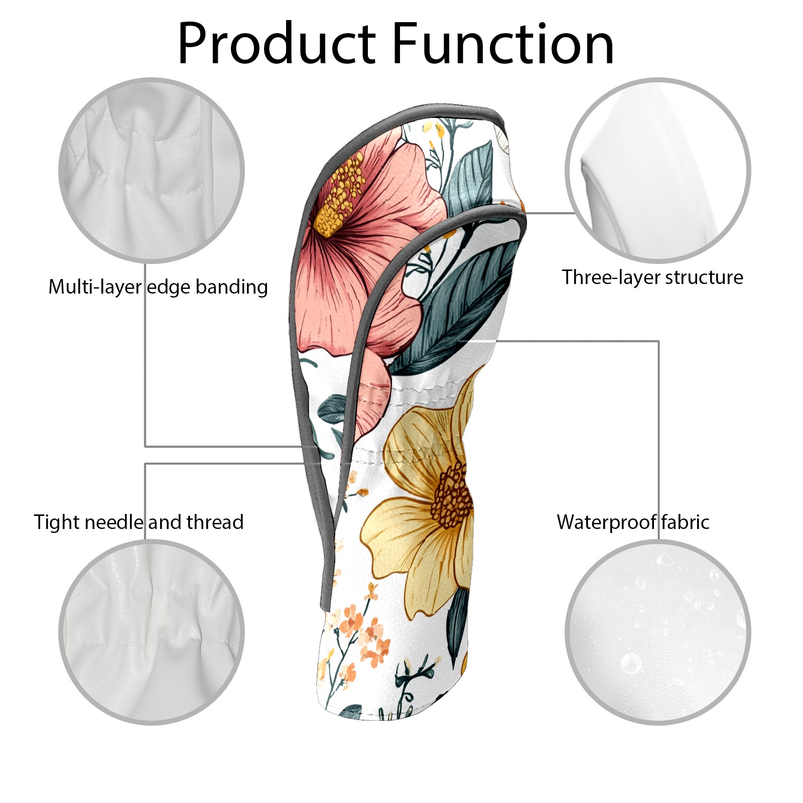 Black Golf Club Head Cover Golf Accessories Head Covers Set For Driver & Fairway Woods Pink Orange Floral