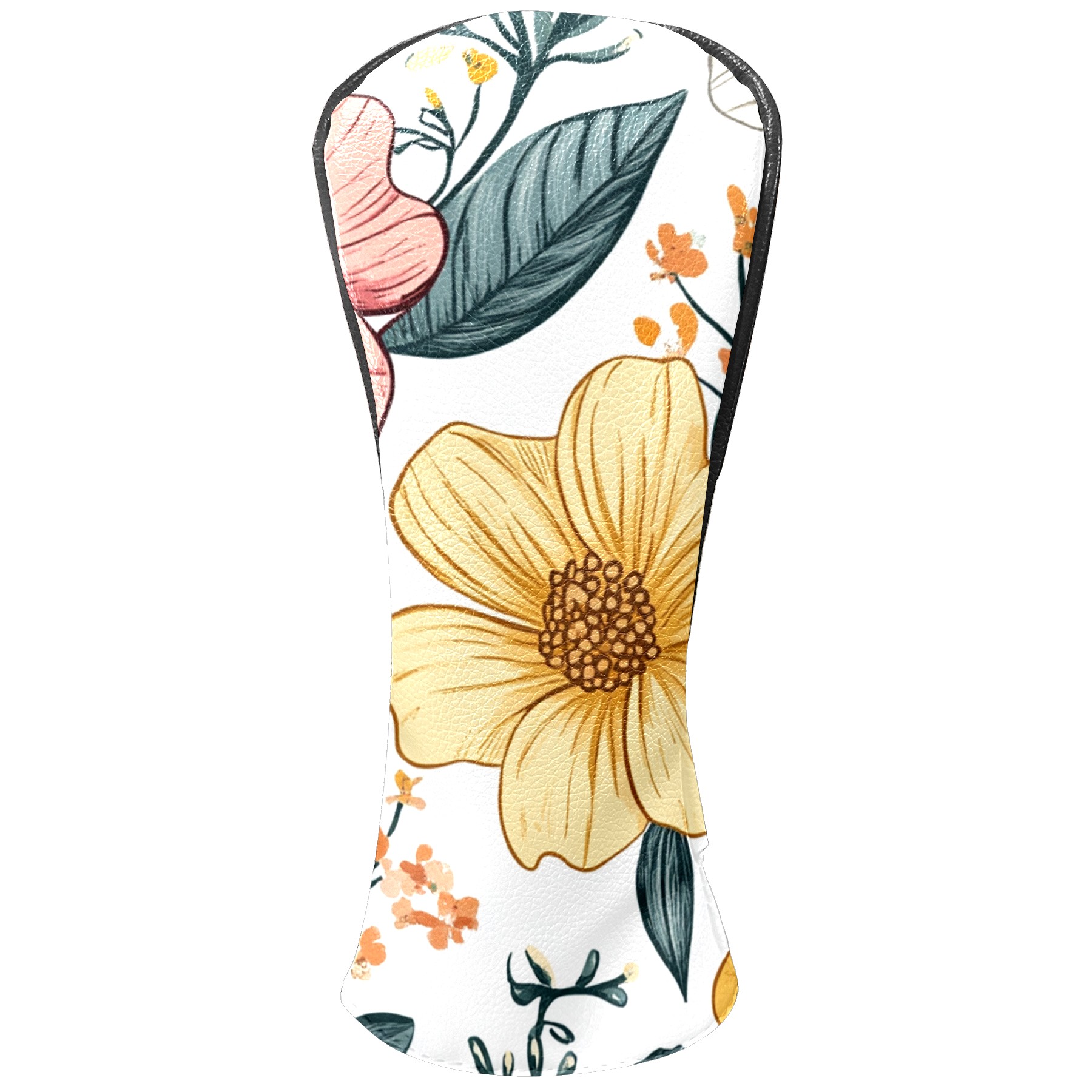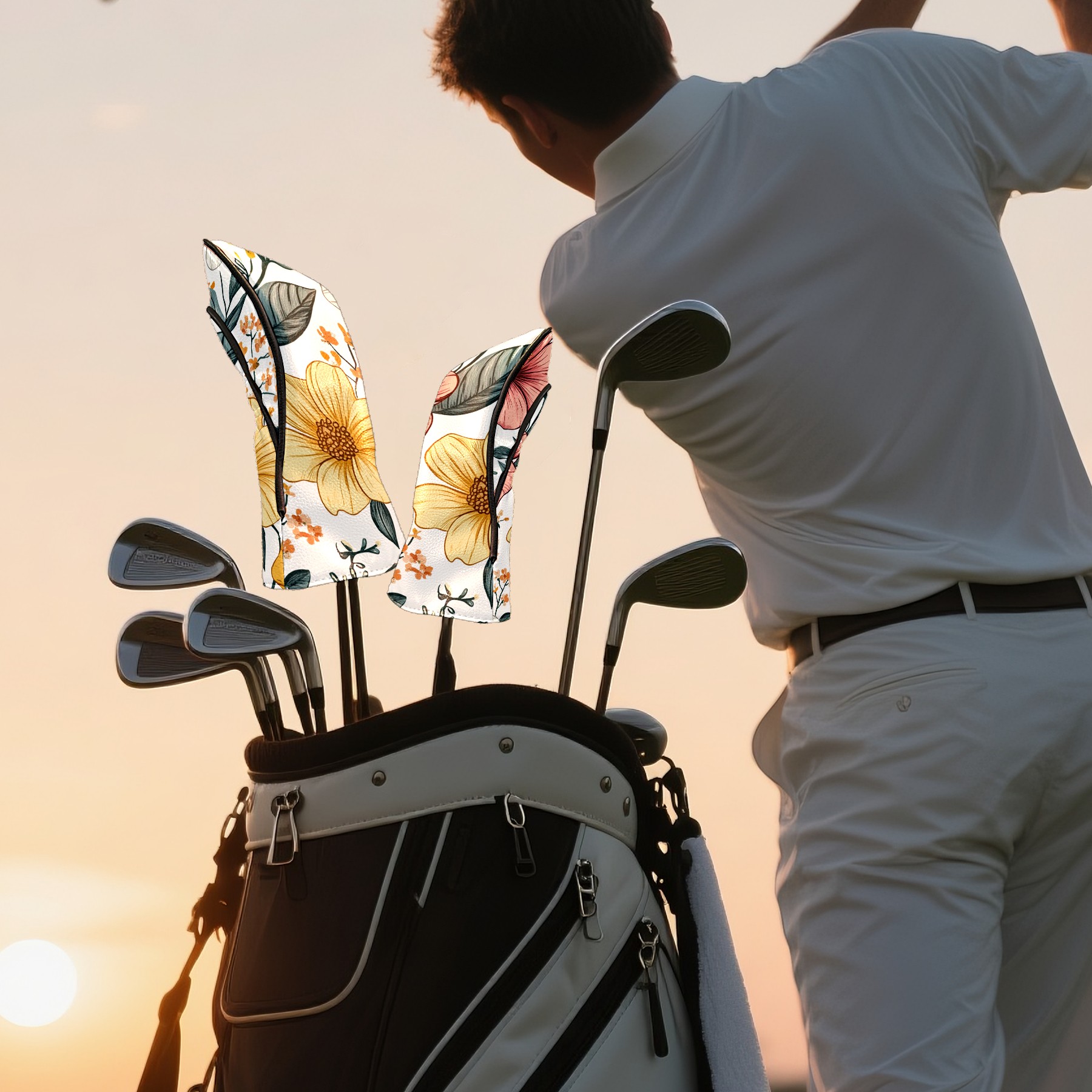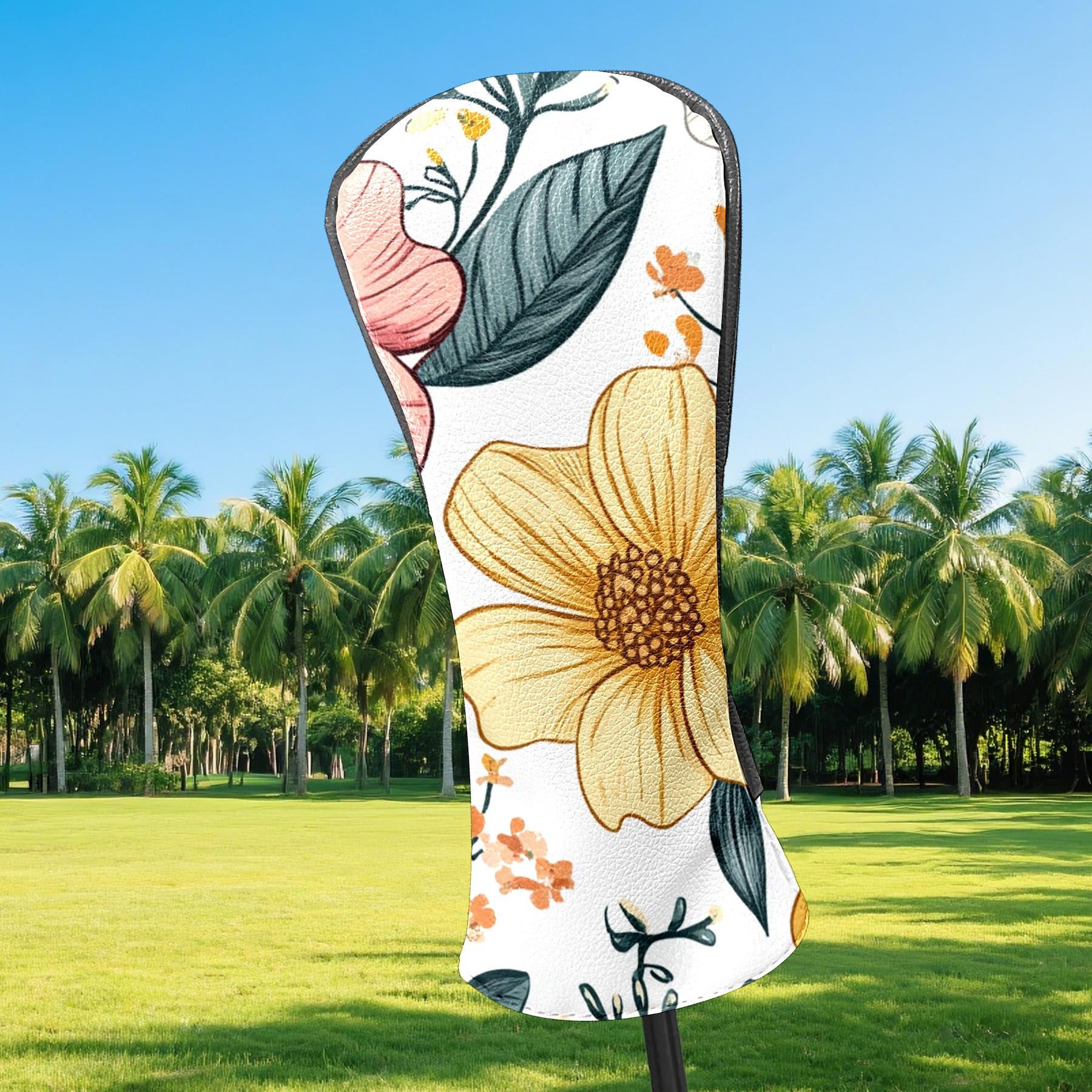 Black Golf Club Head Cover Golf Accessories Head Covers Set For Driver & Fairway Woods Pink Orange Floral