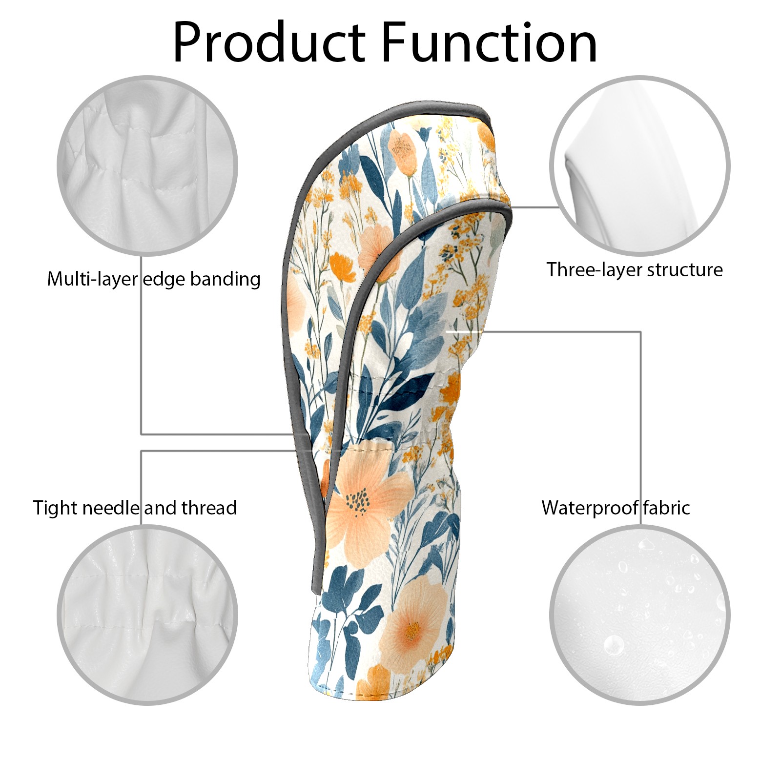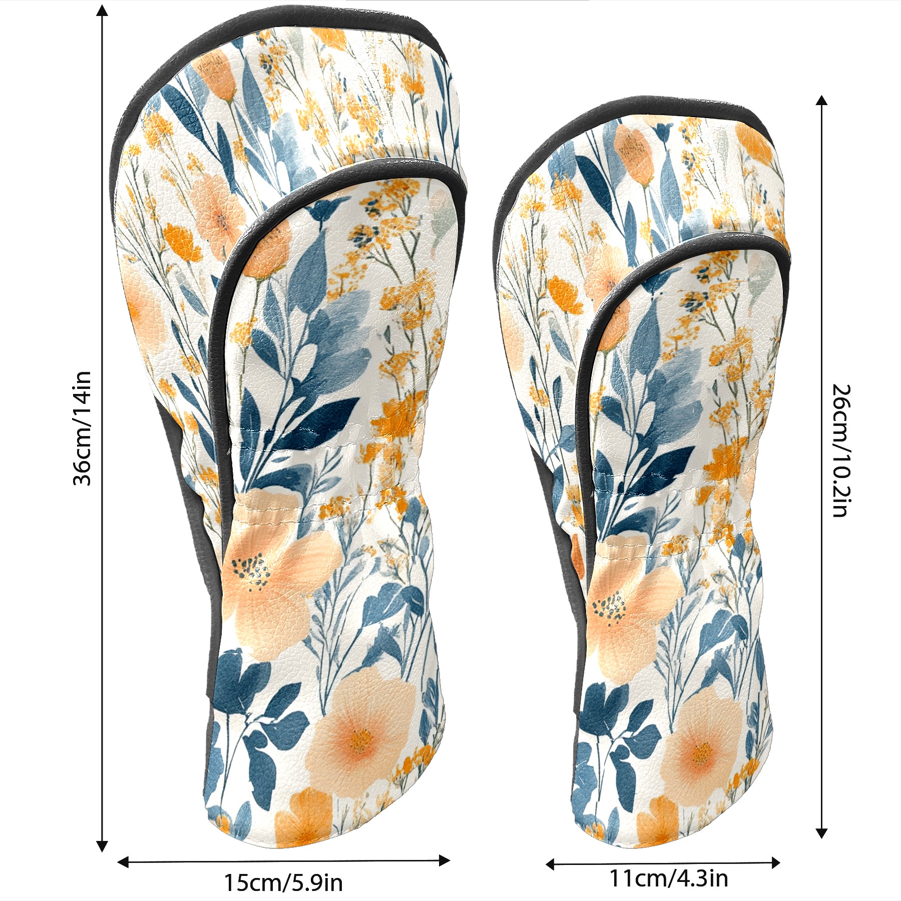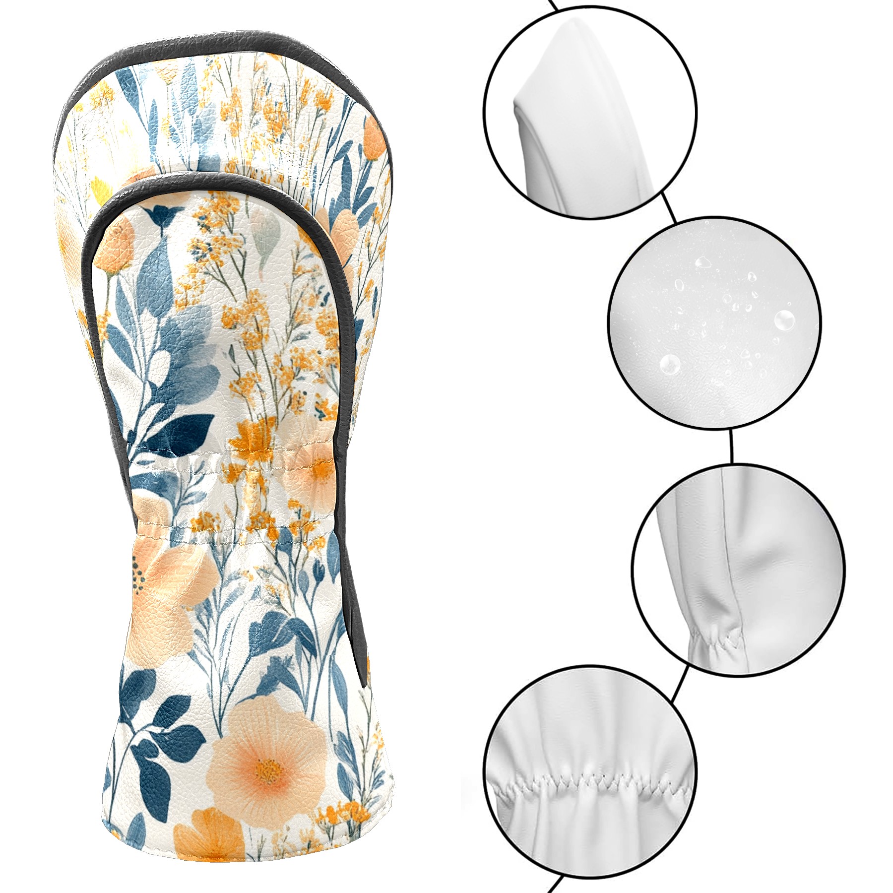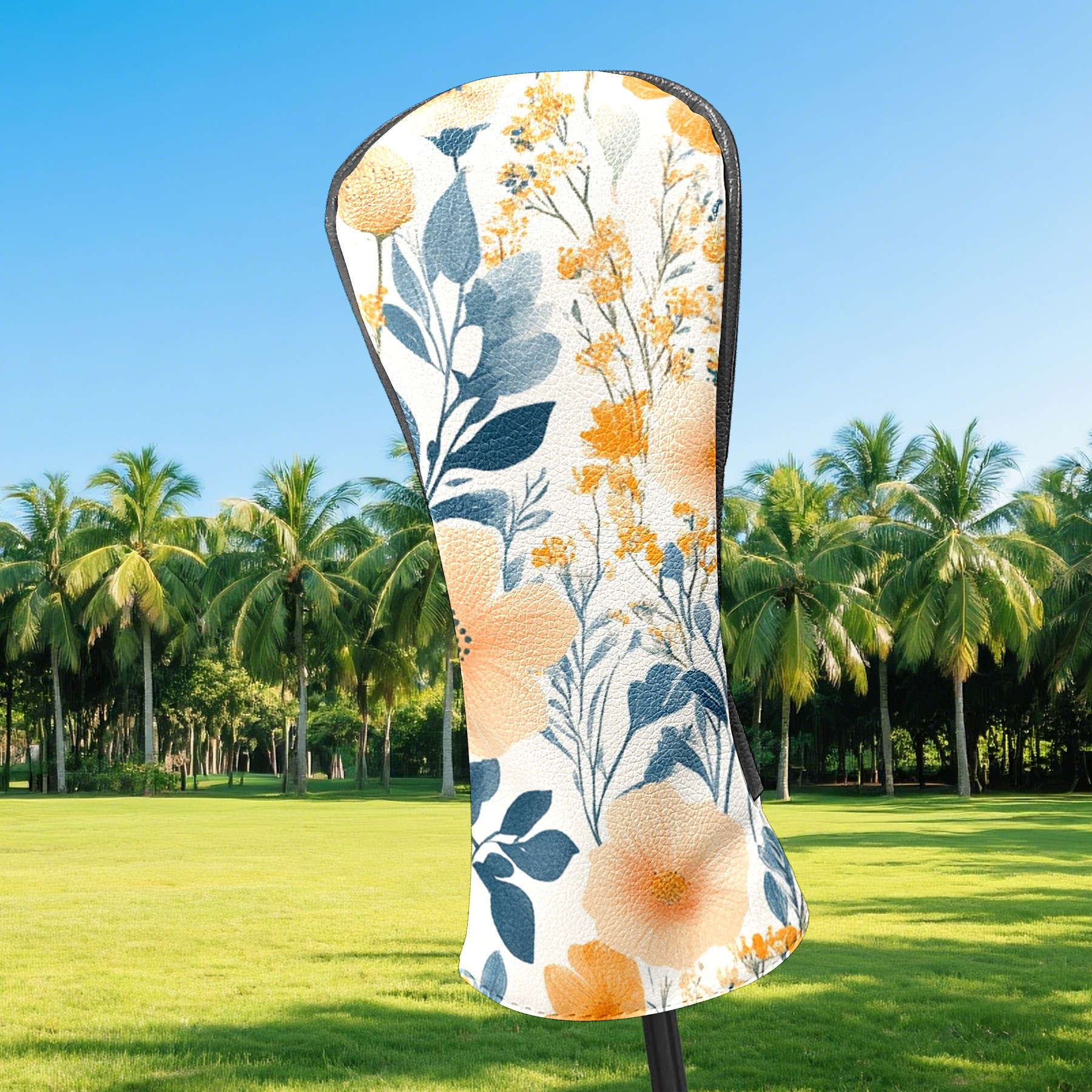 Black Golf Club Head Cover Golf Accessories Head Covers Set For Driver & Fairway Woods Peach Blue Wildflowers