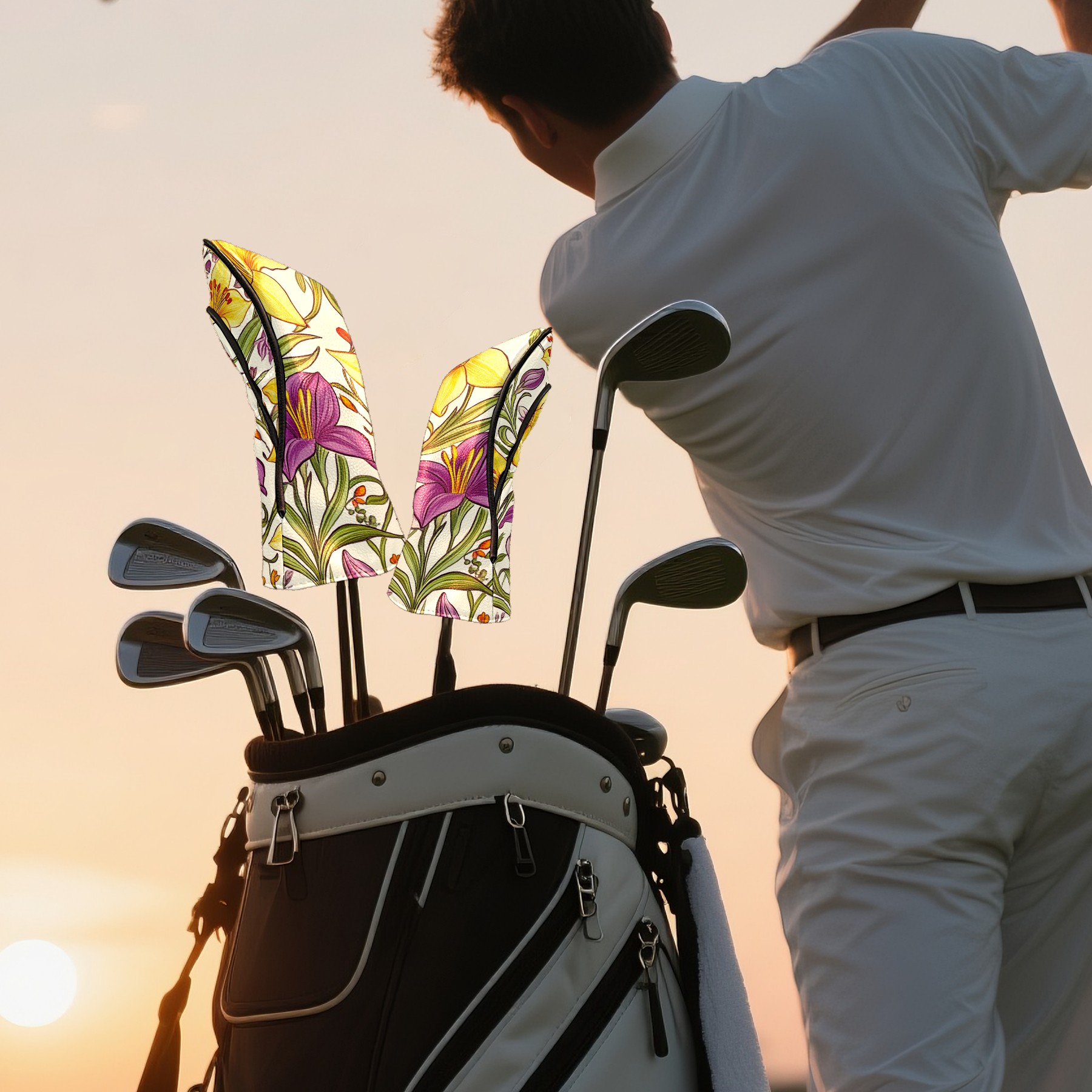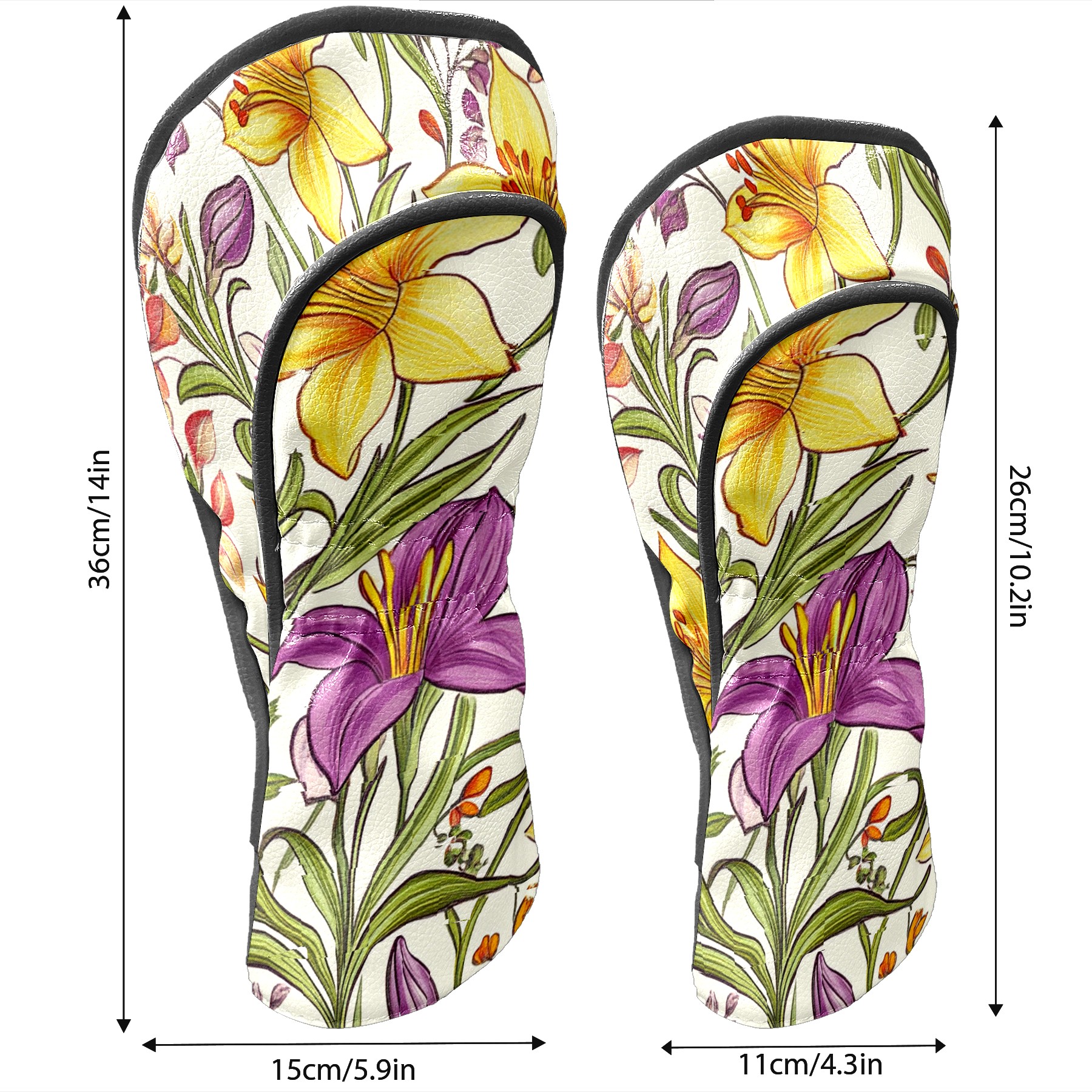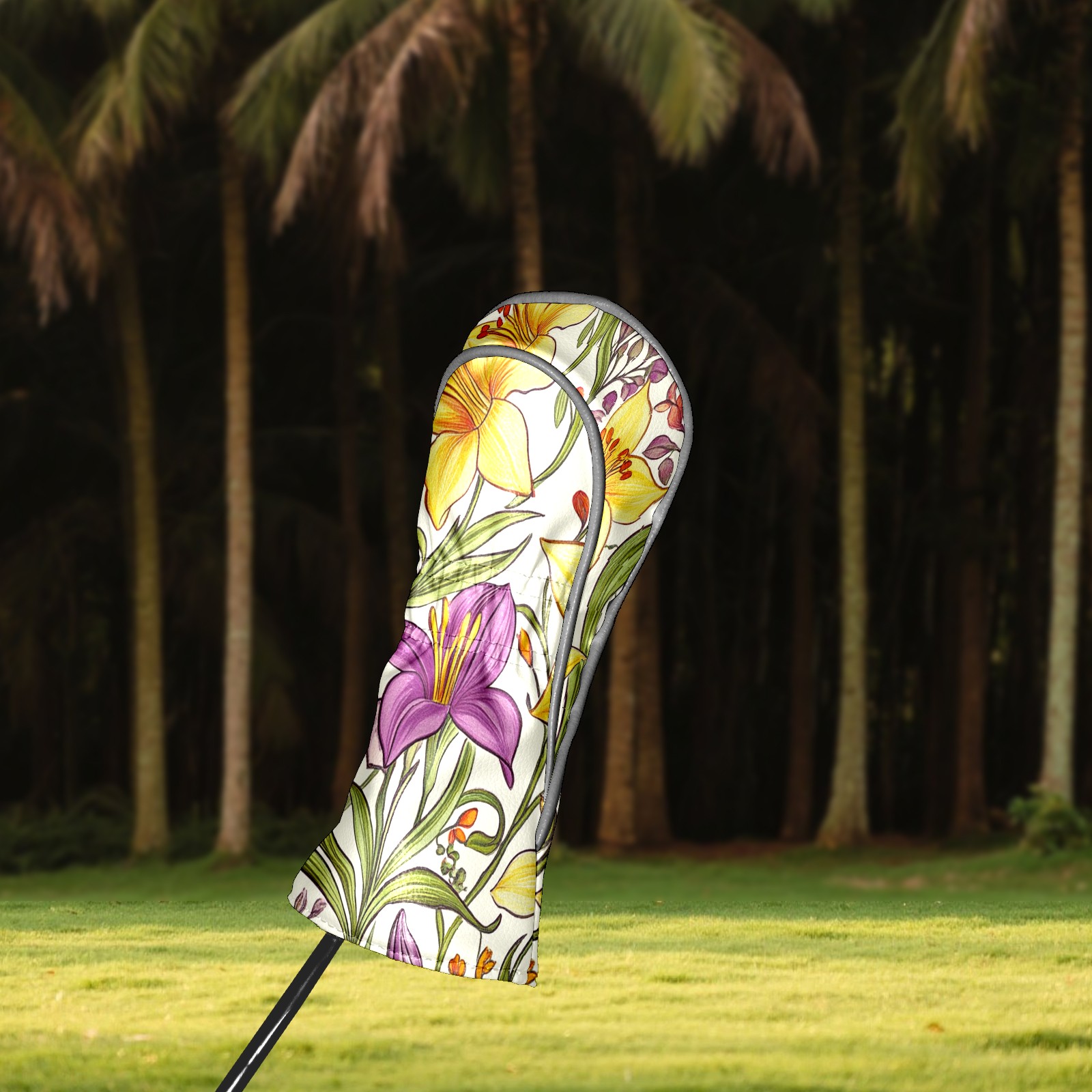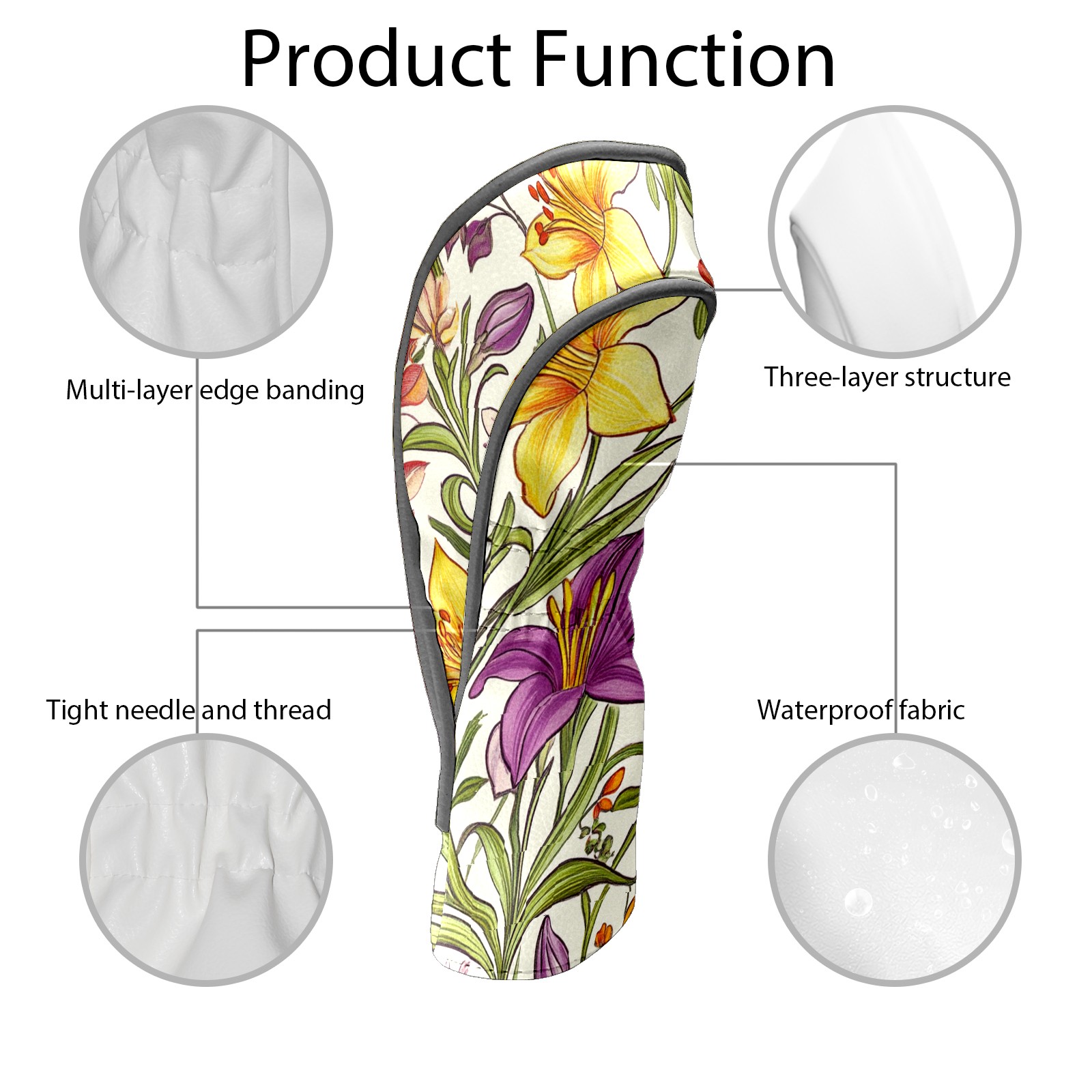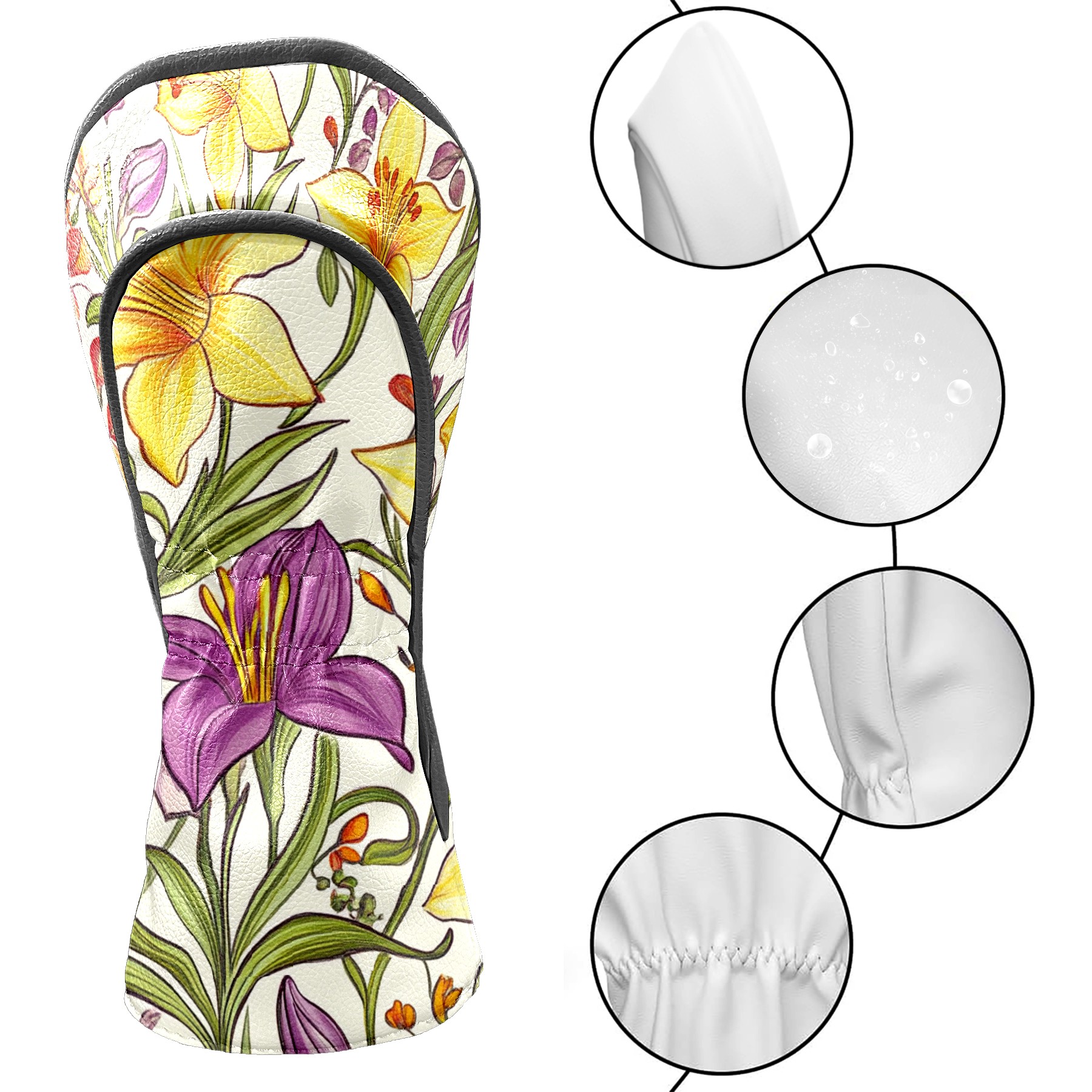 Black Golf Club Head Cover Golf Accessories Head Covers Set For Driver & Fairway Woods Lilies And Daffodils