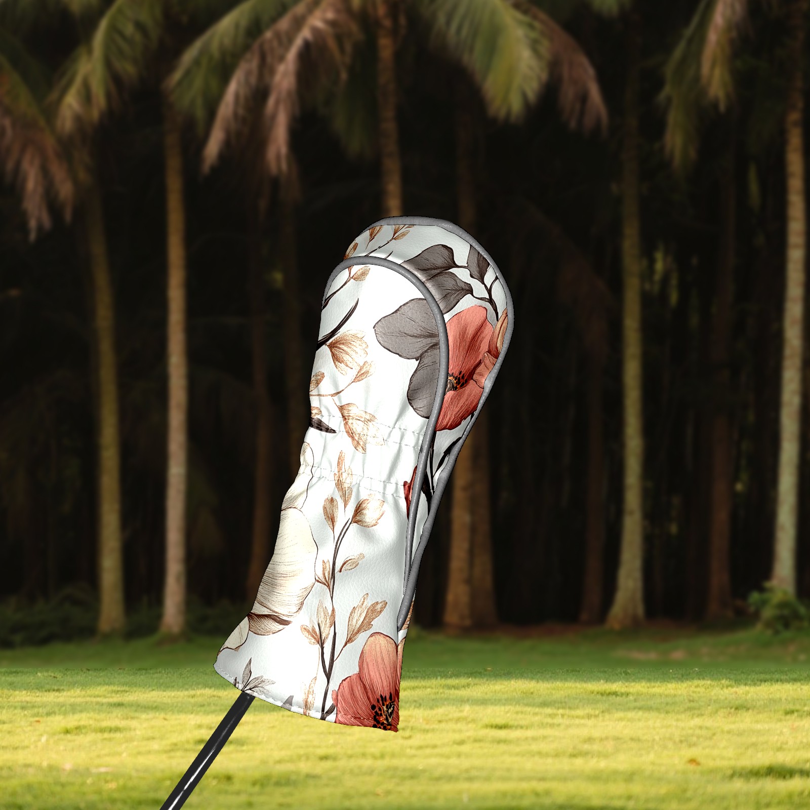 Black Golf Club Head Cover Golf Accessories Head Covers Set For Driver & Fairway Woods Hand-drawn Floral