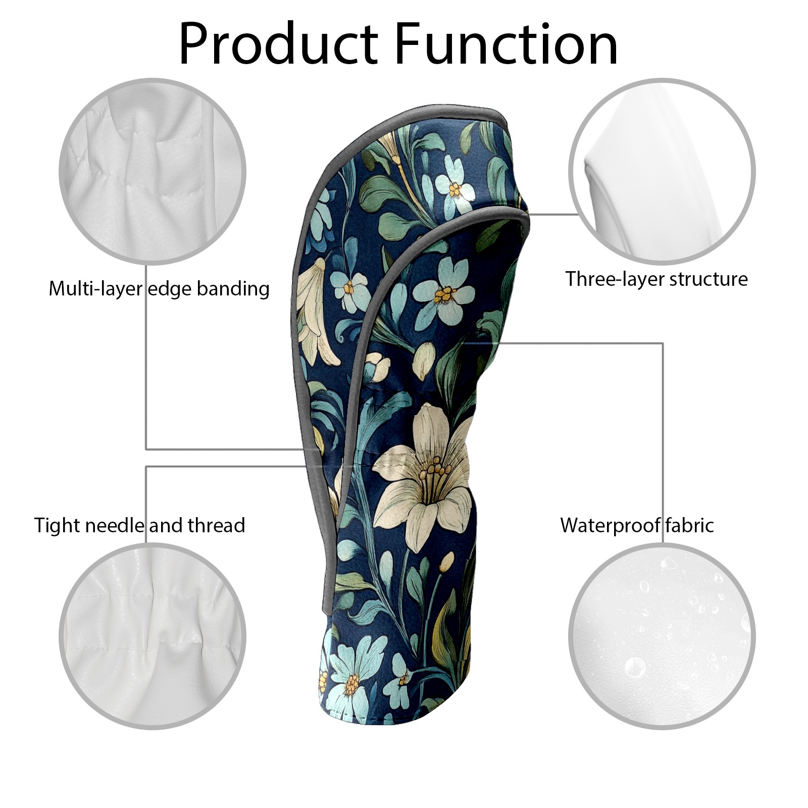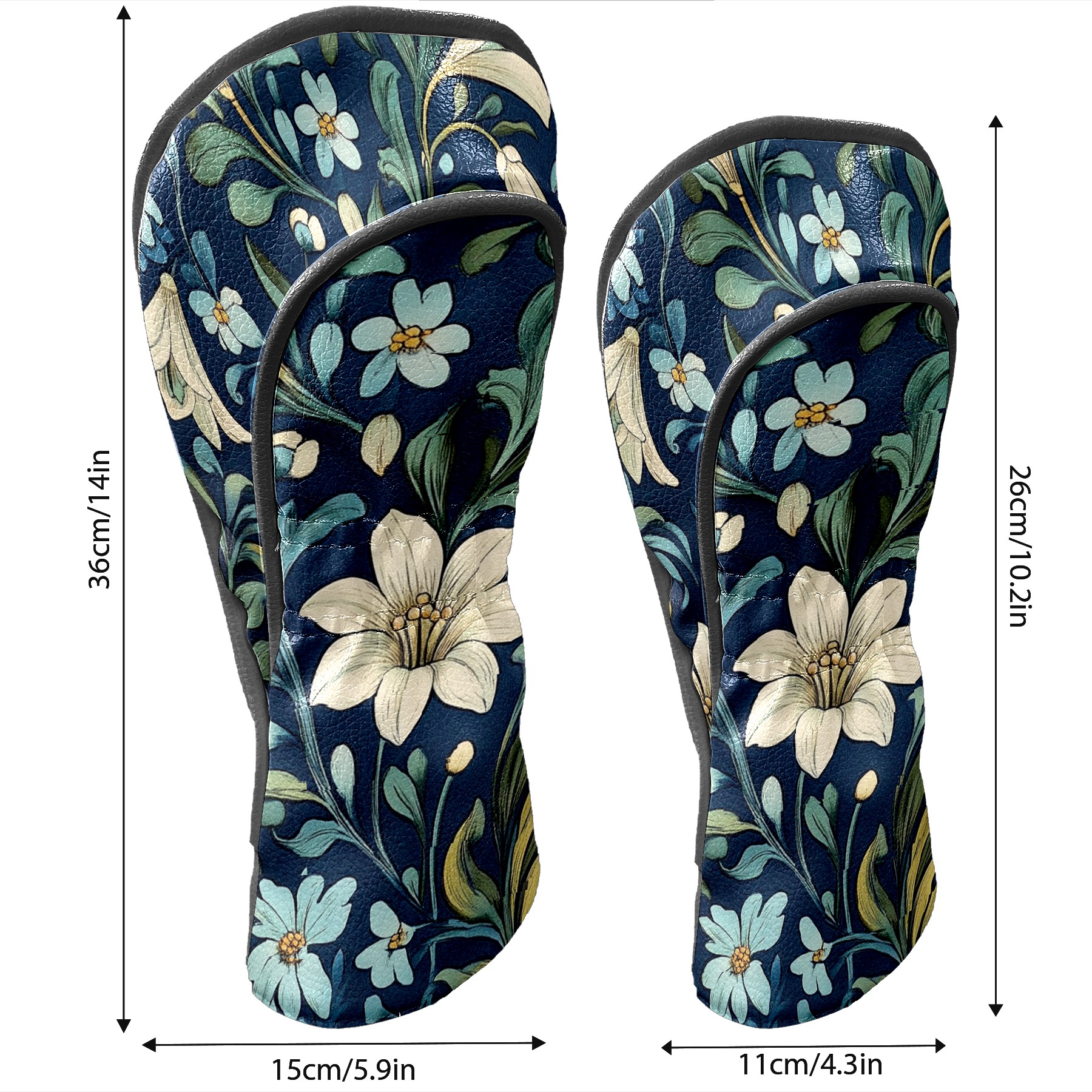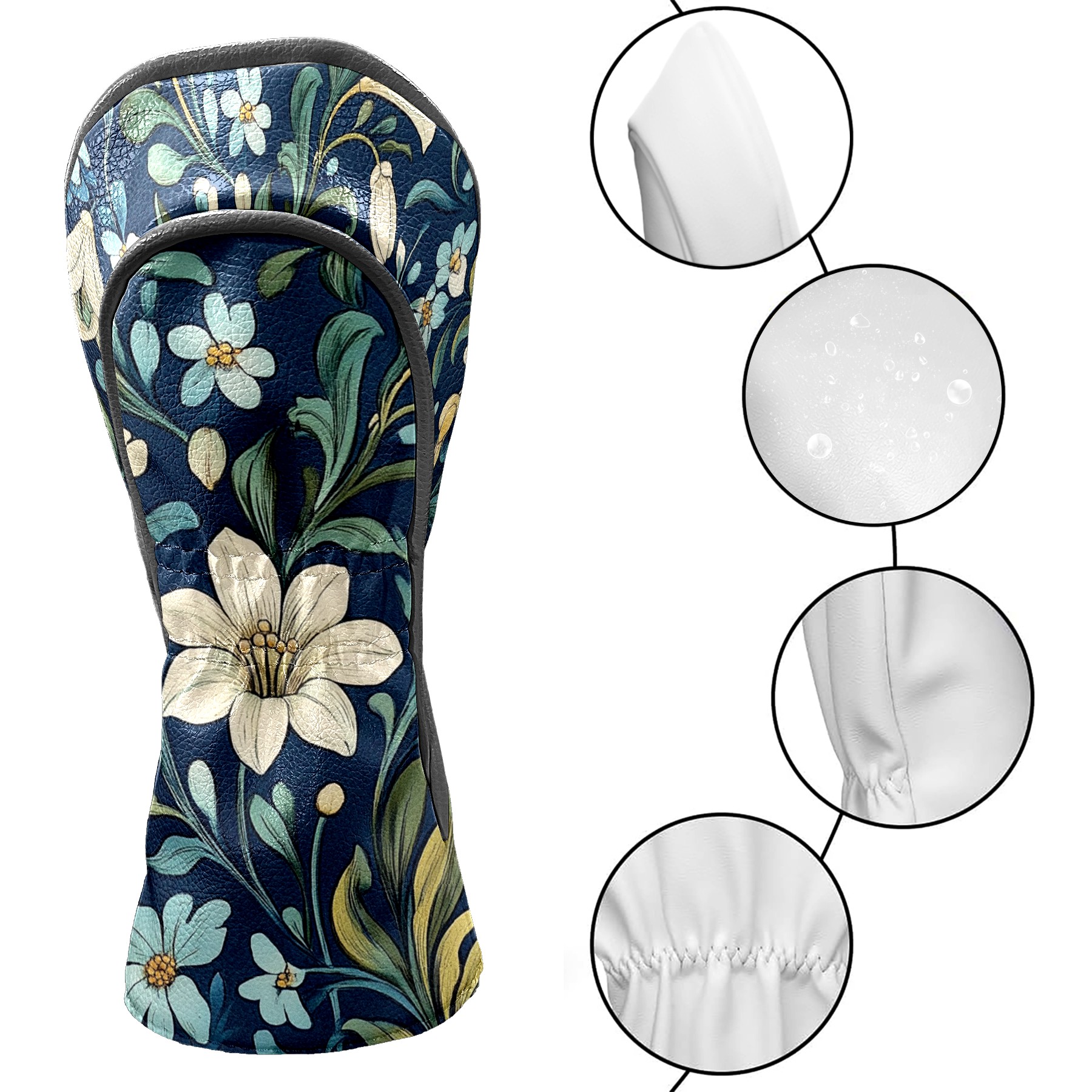 Black Golf Club Head Cover Golf Accessories Head Covers Set For Driver & Fairway Woods Blue White Flowers