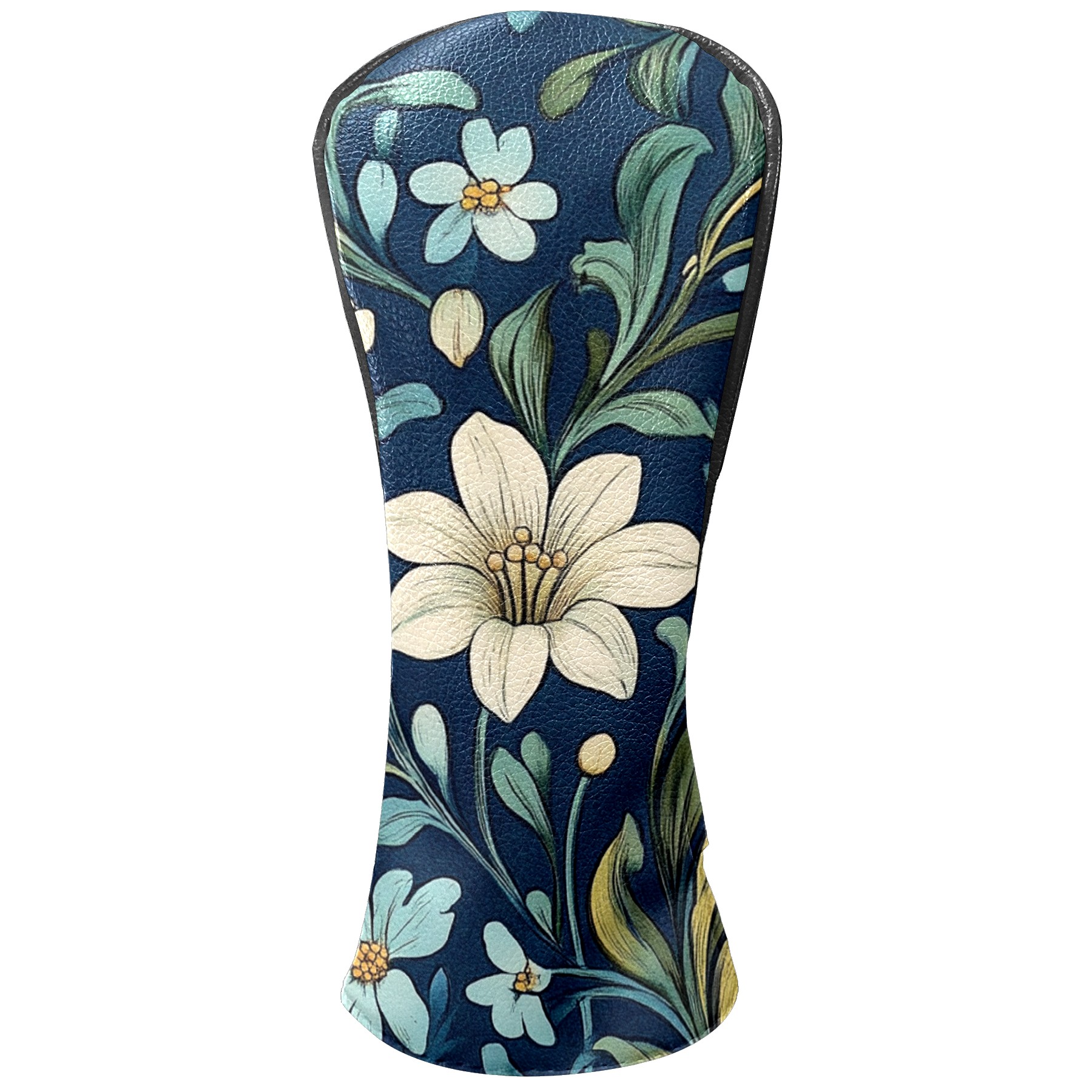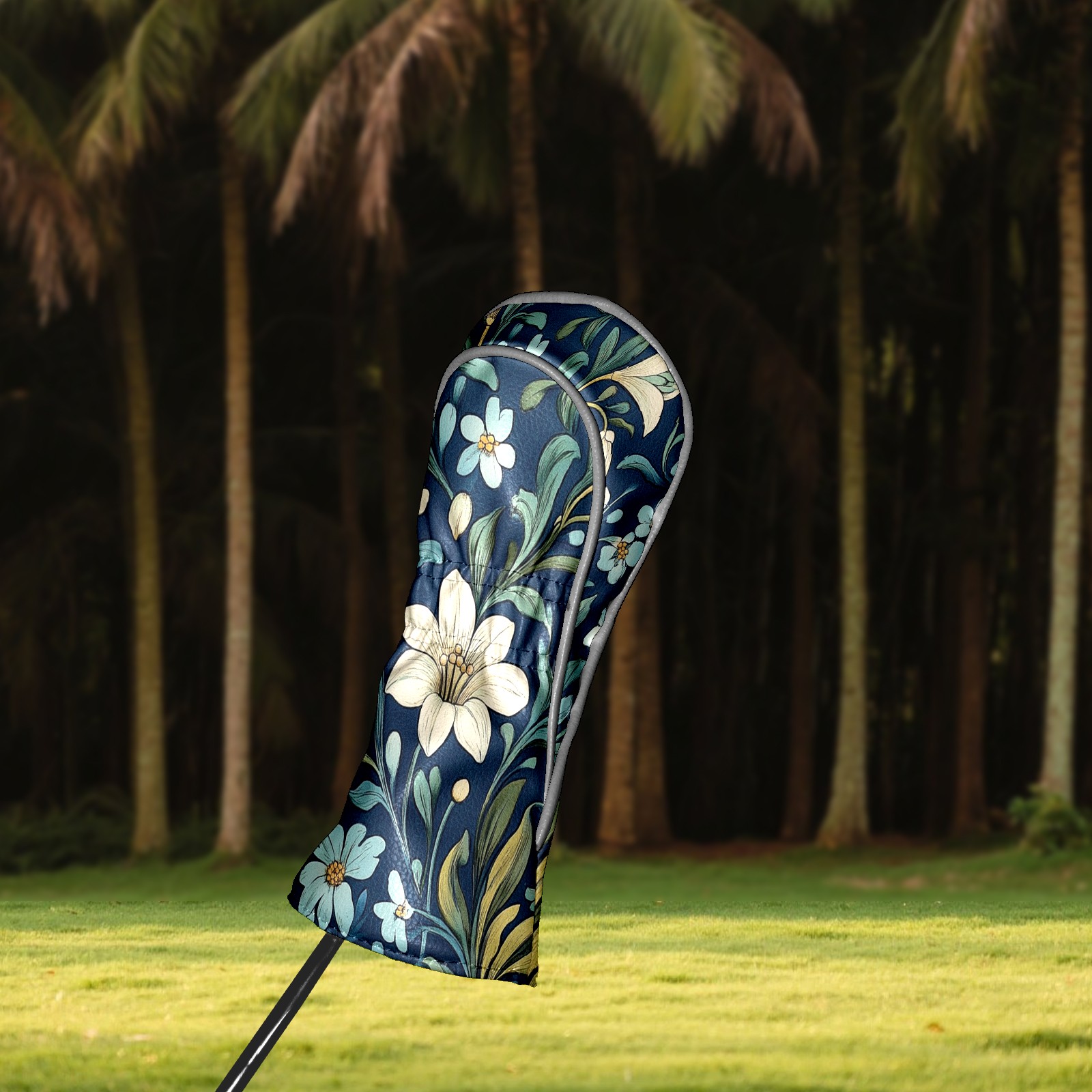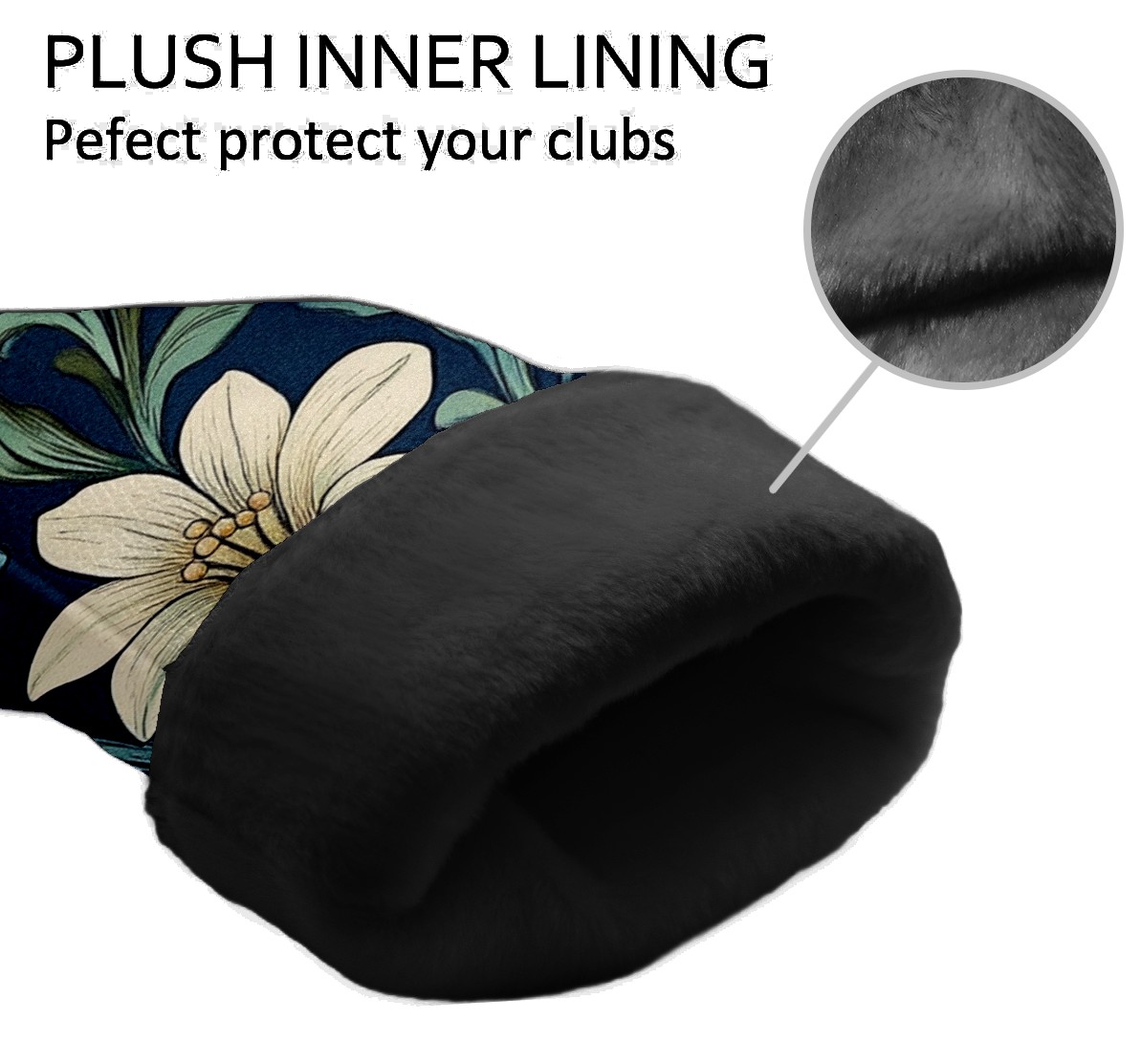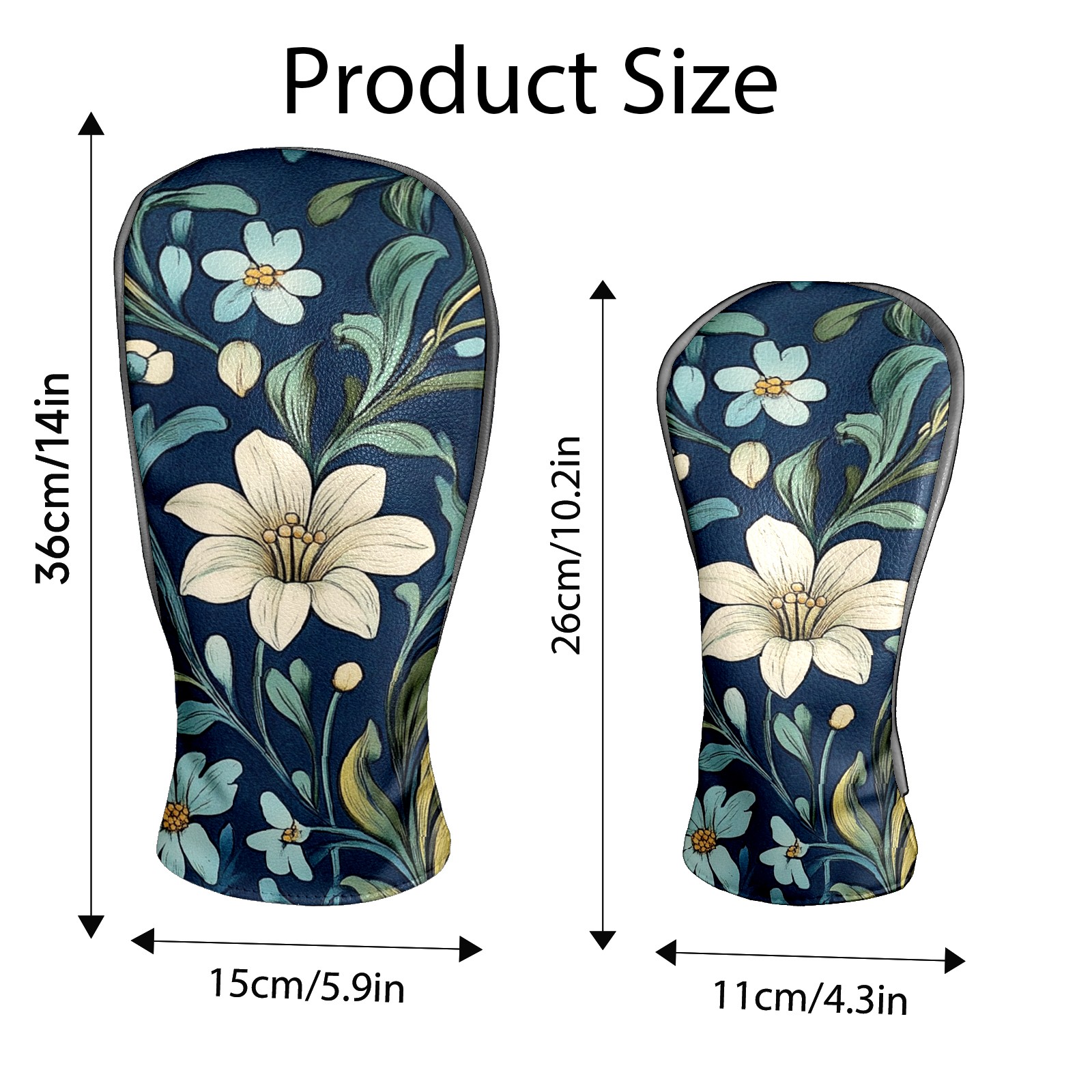 Black Golf Club Head Cover Golf Accessories Head Covers Set For Driver & Fairway Woods Blue White Flowers
