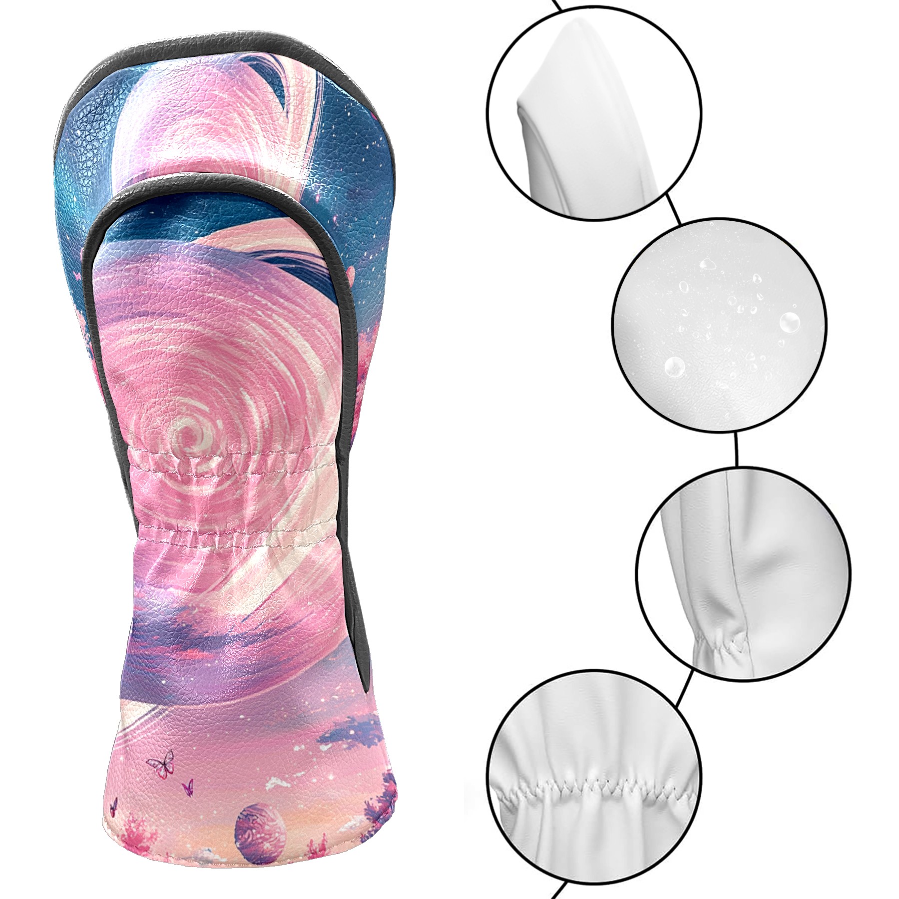 Black Golf Club Head Cover Golf Accessories Head Covers Set For Driver & Fairway Woods Pink Universe