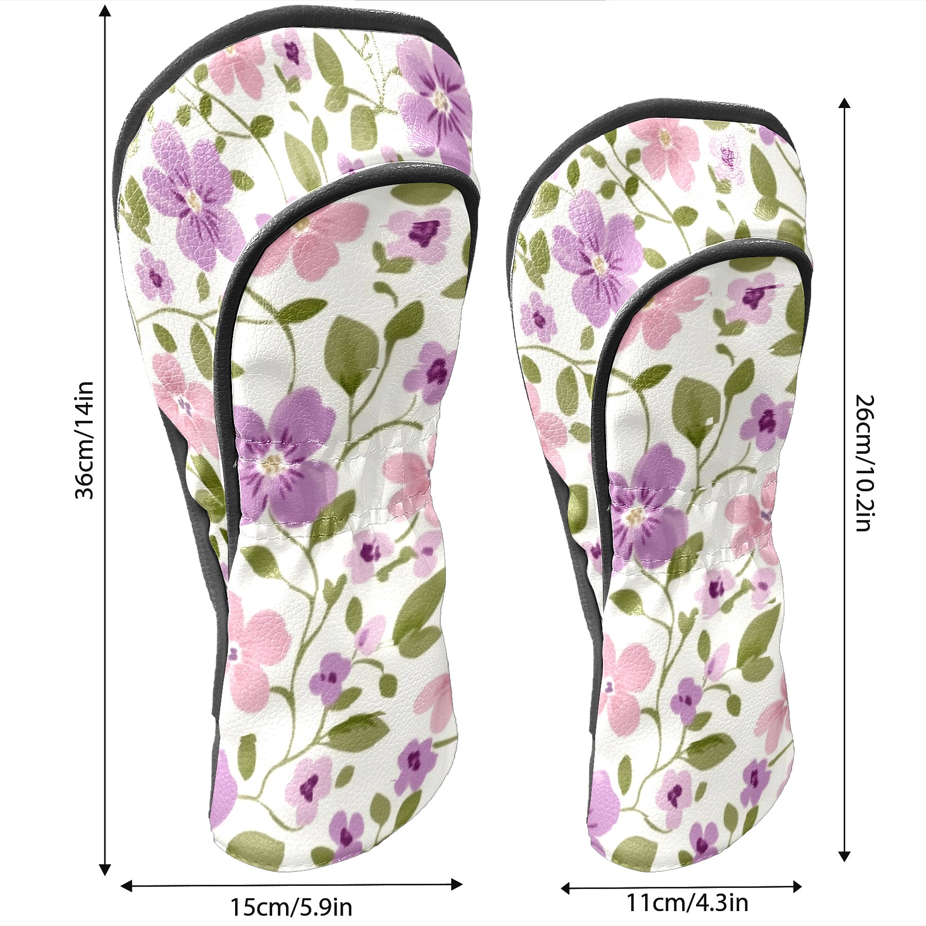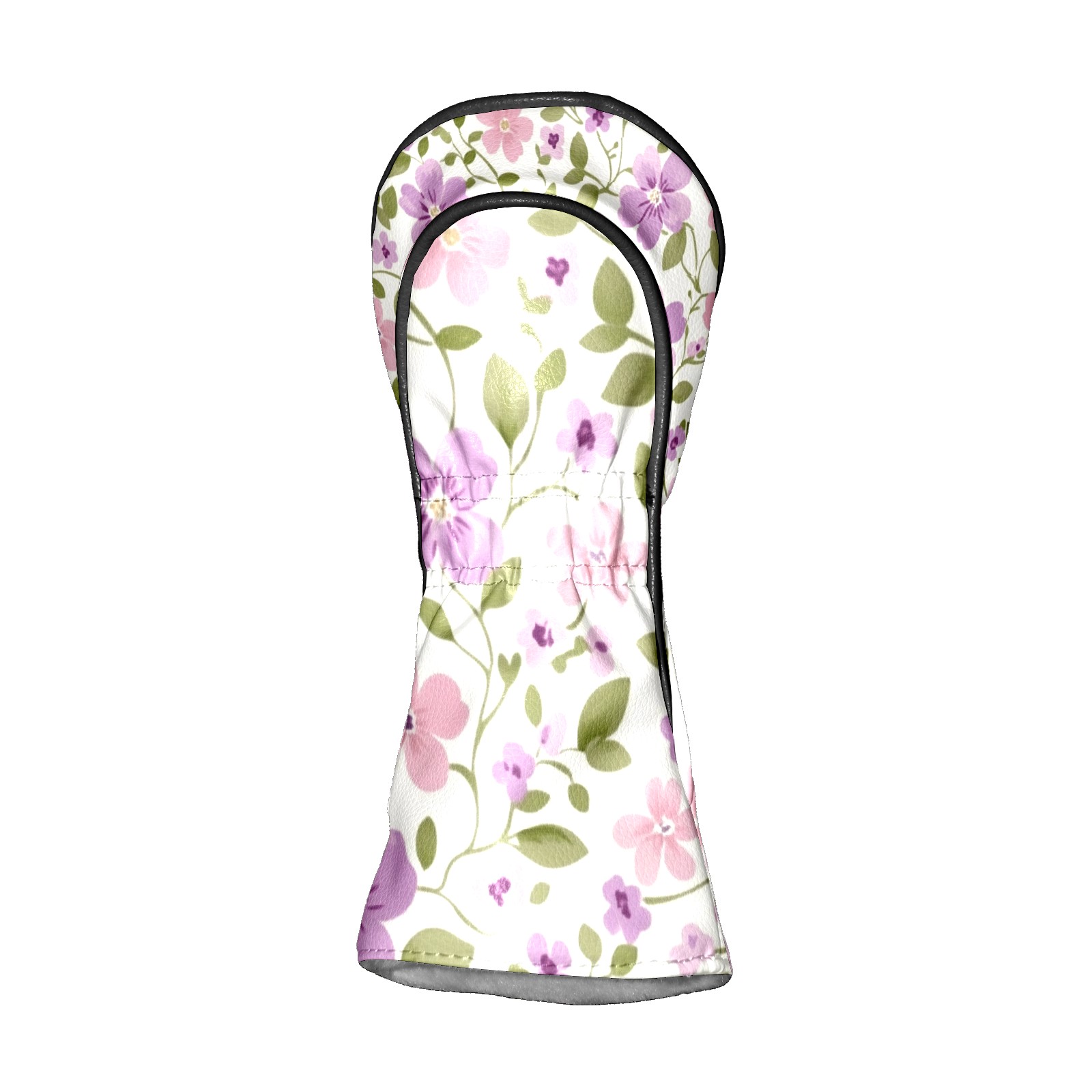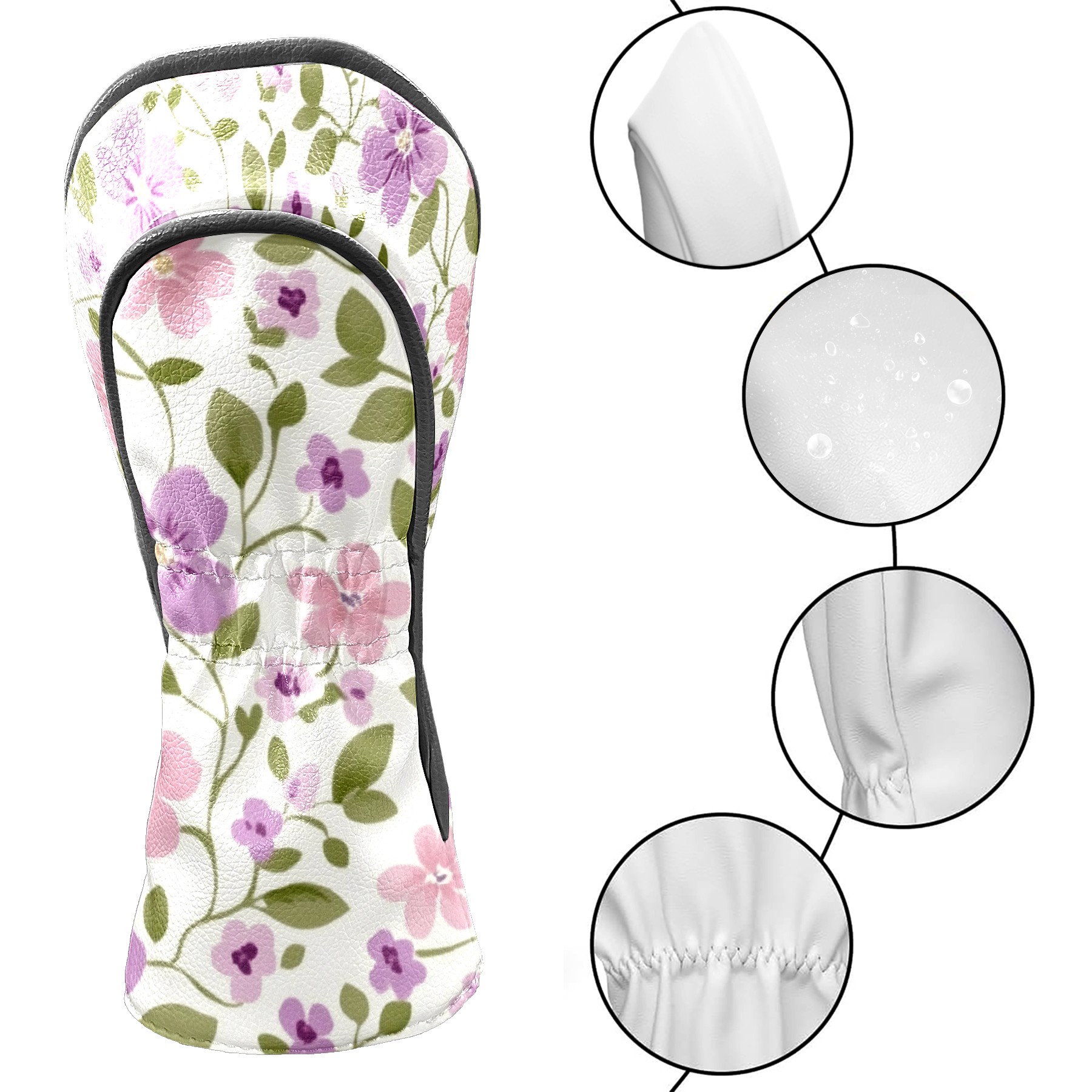 Black Golf Club Head Cover Golf Accessories Head Covers Set For Driver & Fairway Woods Small Purple Flowers