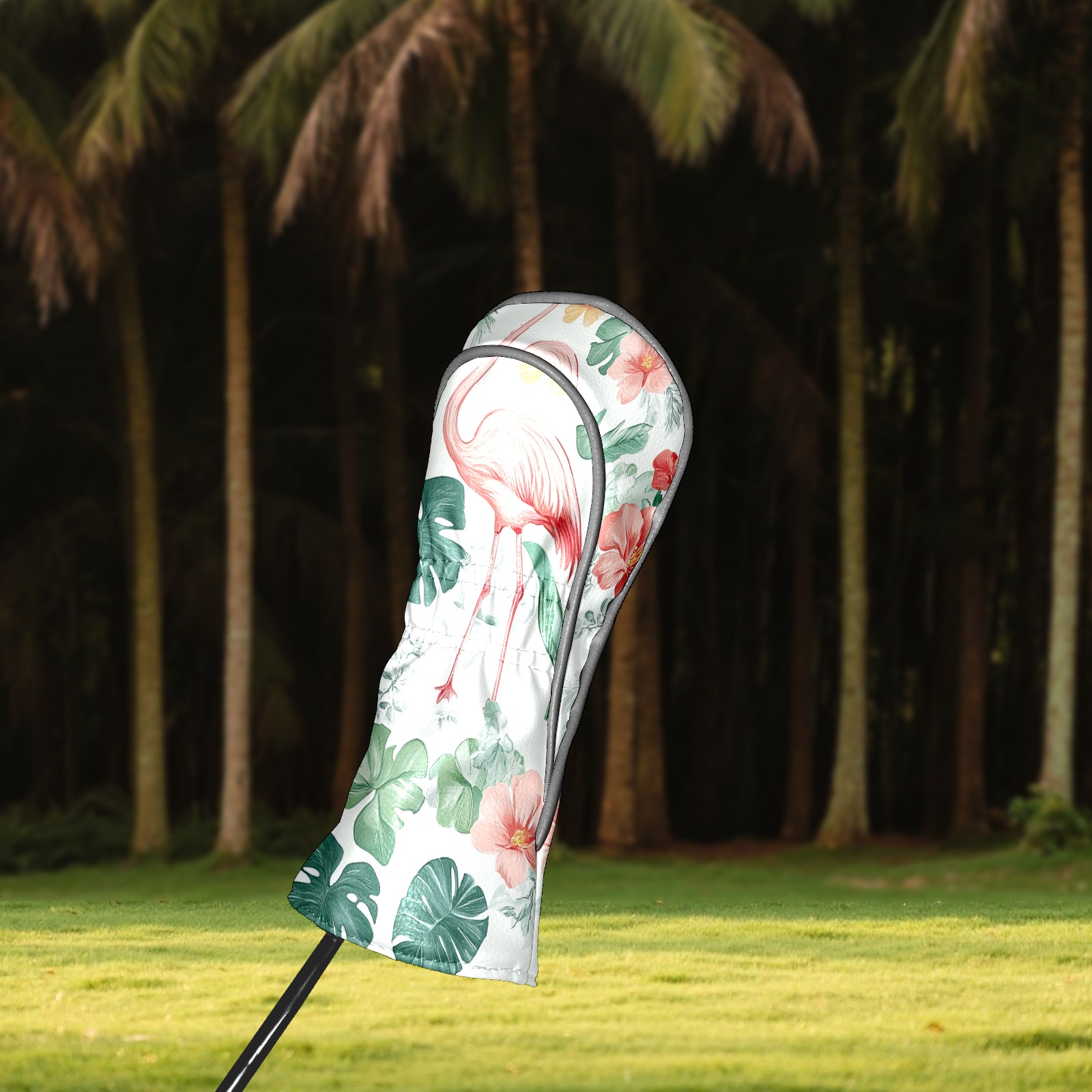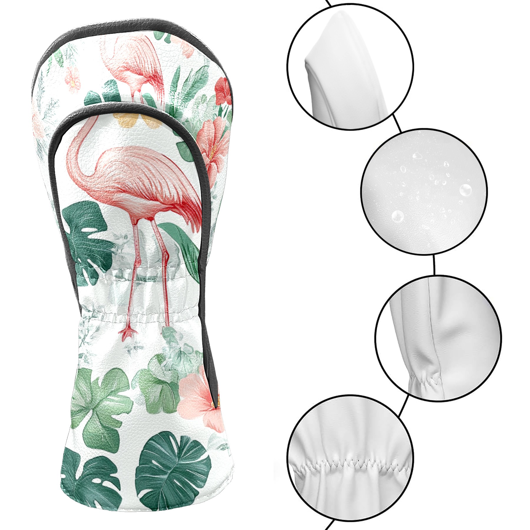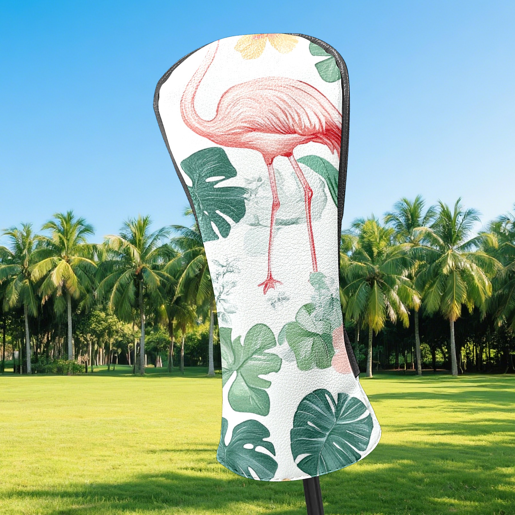 Black Golf Club Head Cover Golf Accessories Head Covers Set For Driver & Fairway Woods Pink Flamingo And Tropical Leaves