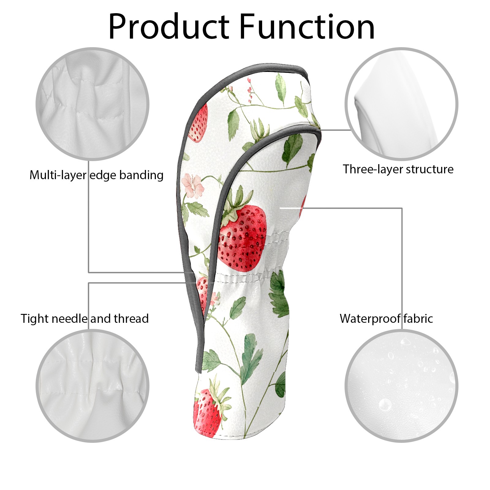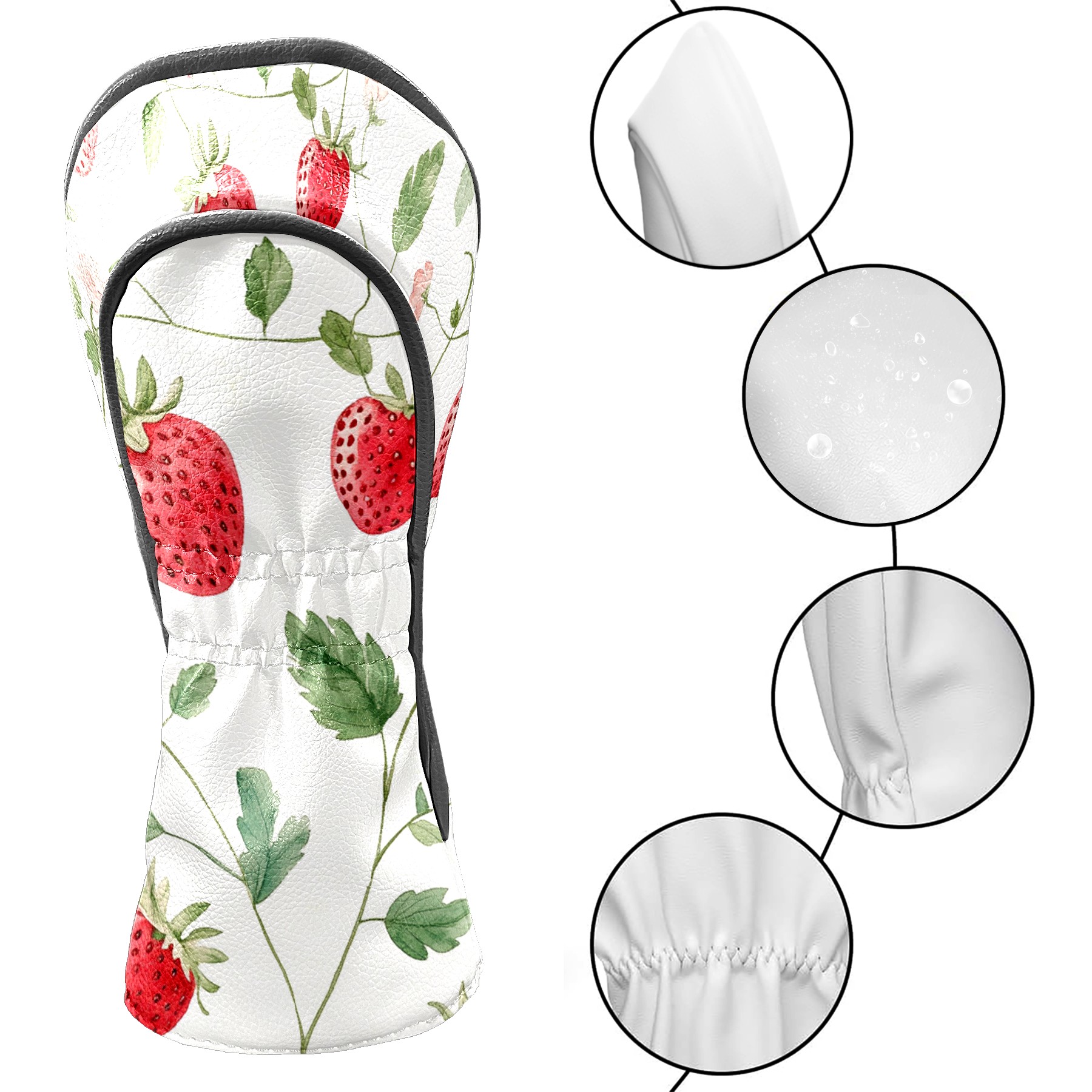 Black Golf Club Head Cover Golf Accessories Head Covers Set For Driver & Fairway Woods Seamless Pattern With Watercolor Strawberries