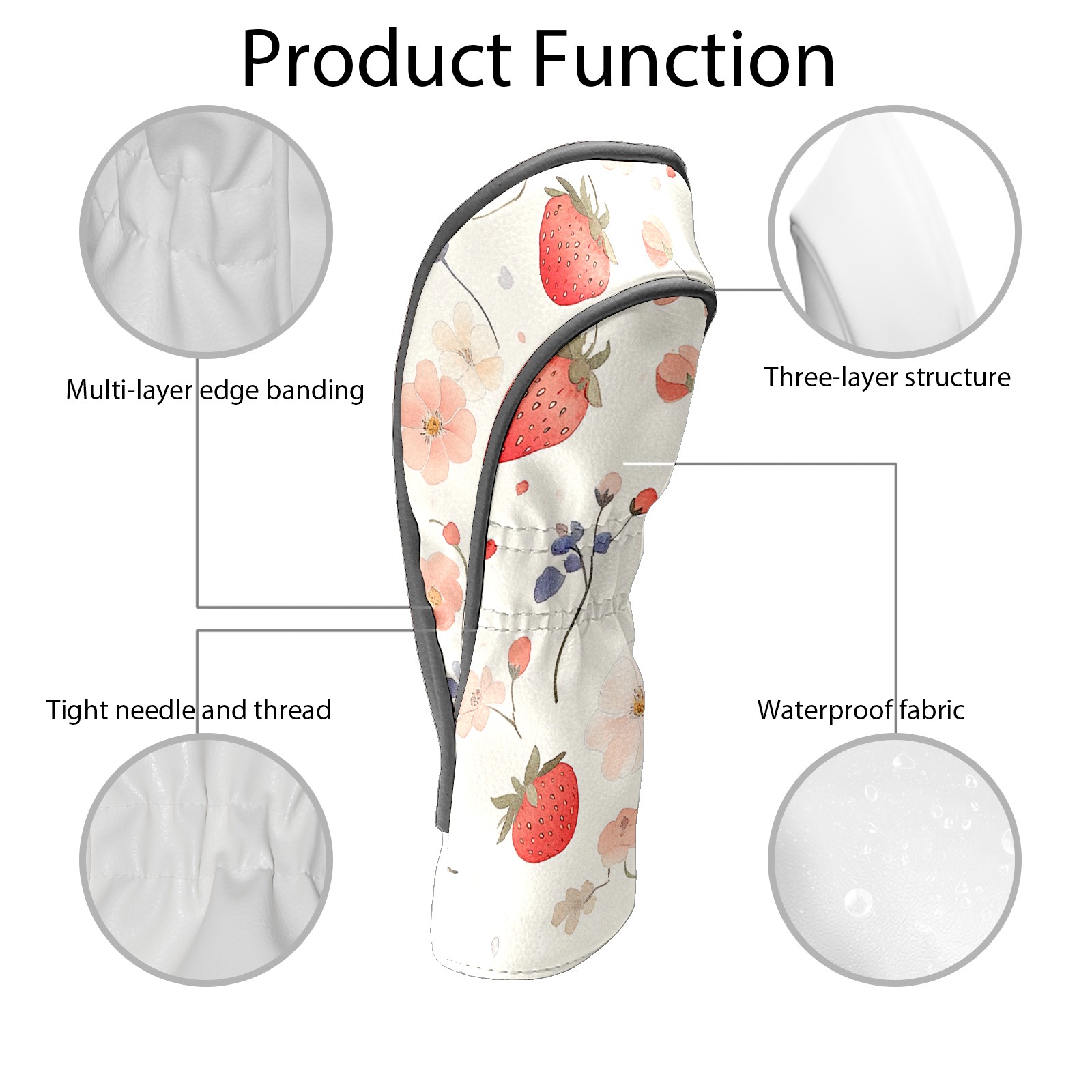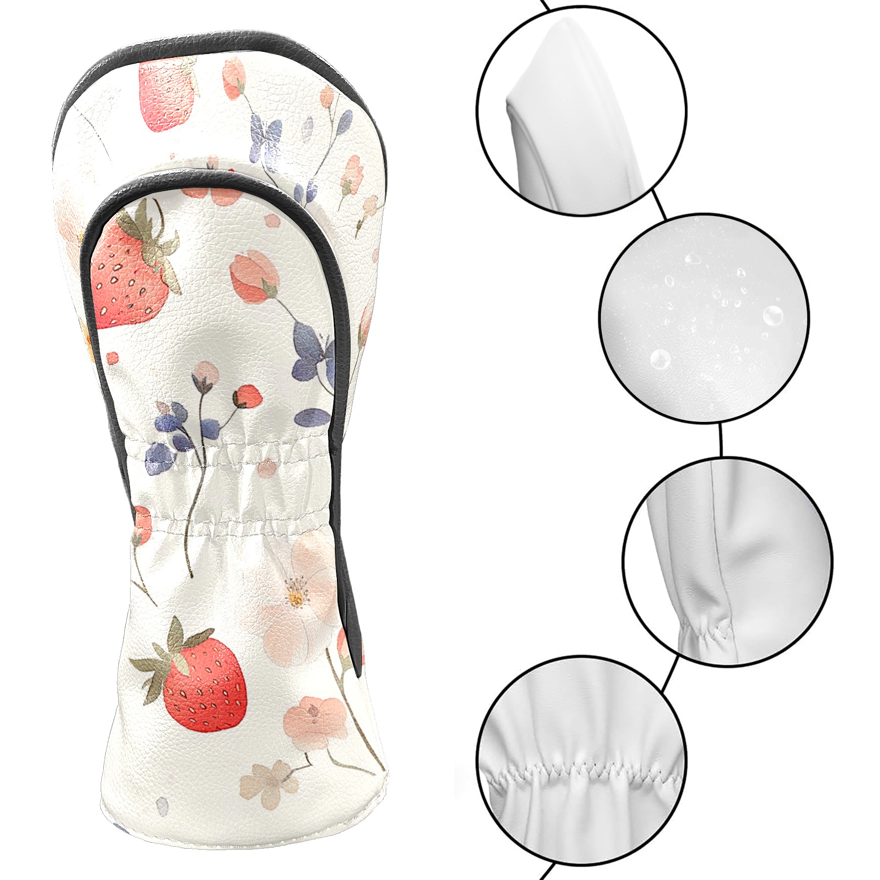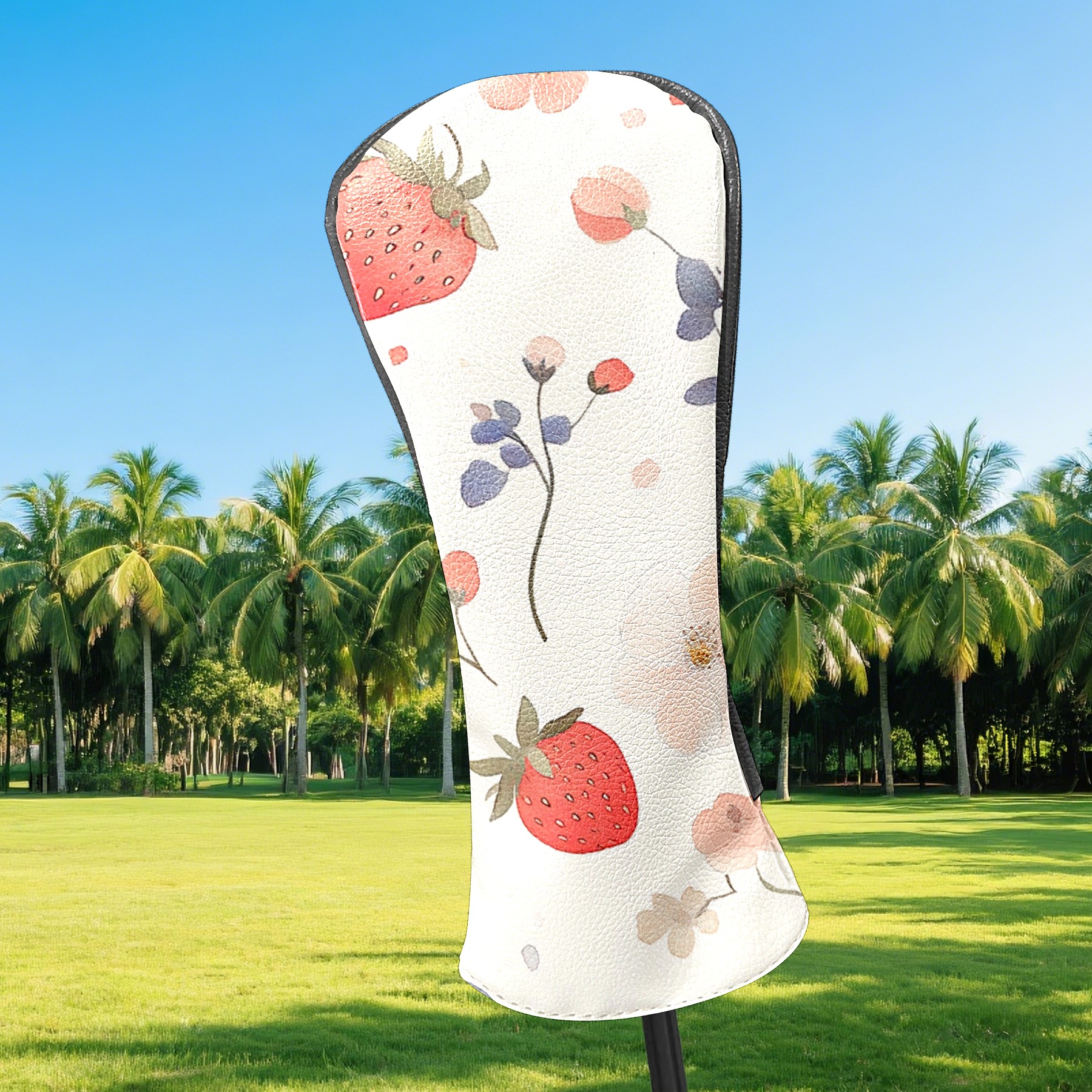 Black Golf Club Head Cover Golf Accessories Head Covers Set For Driver & Fairway Woods Retro Strawberry Pattern