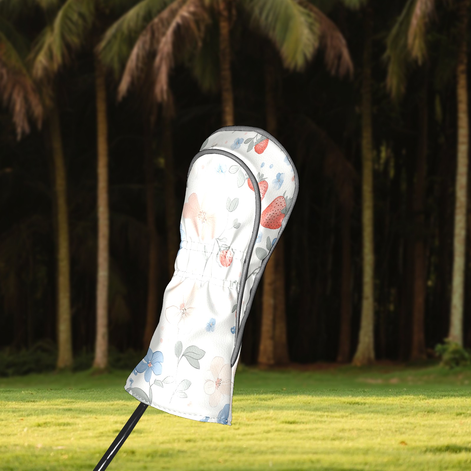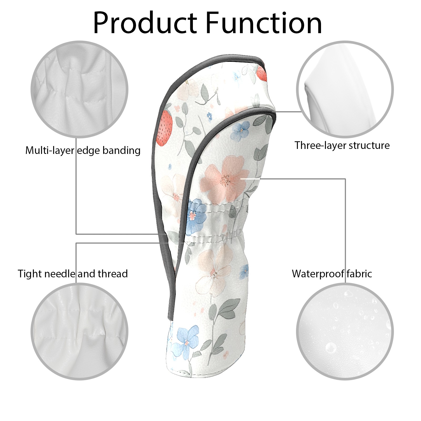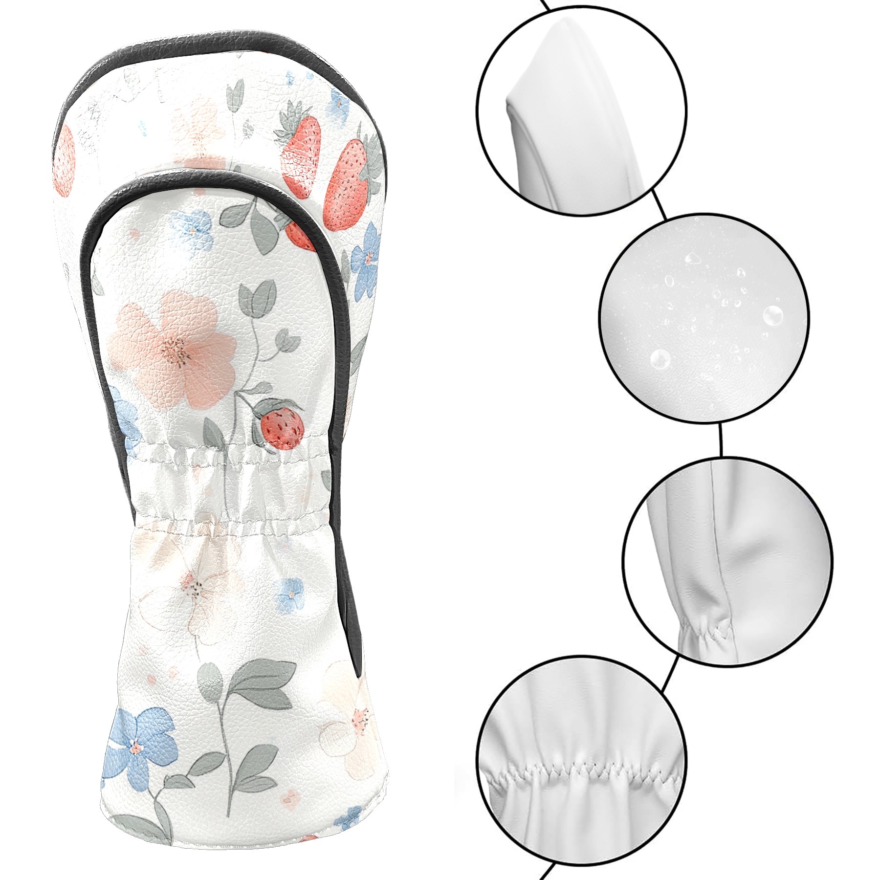 Black Golf Club Head Cover Golf Accessories Head Covers Set For Driver & Fairway Woods Strawberry Blue Floral