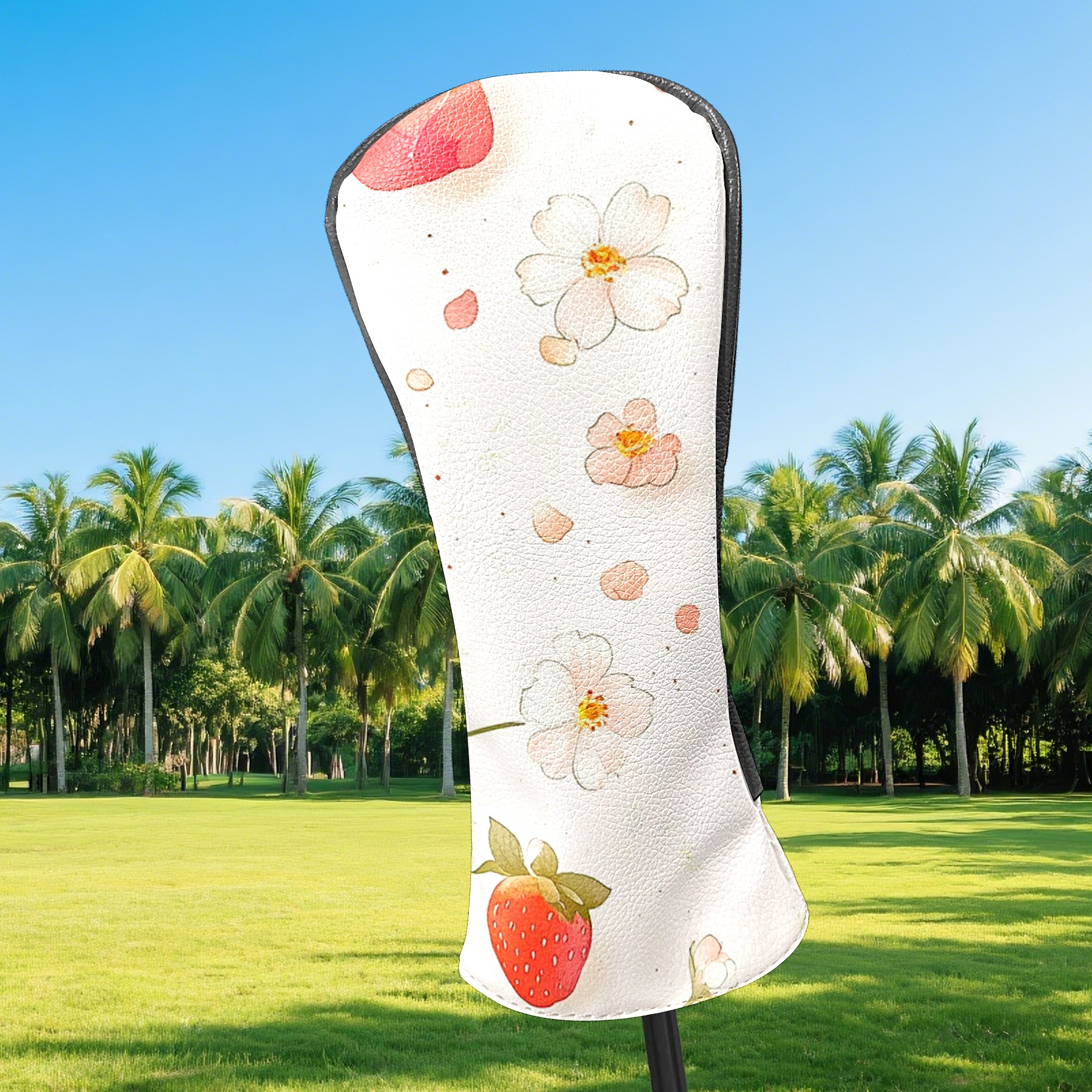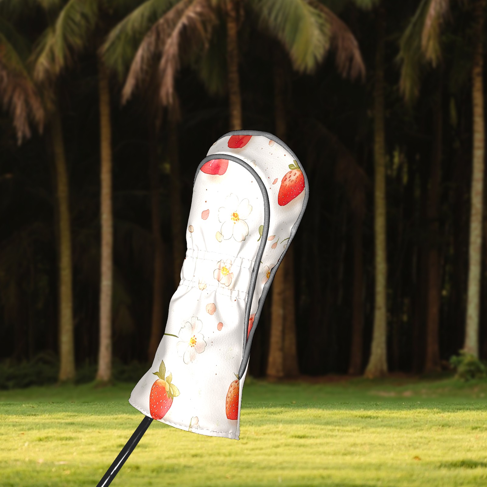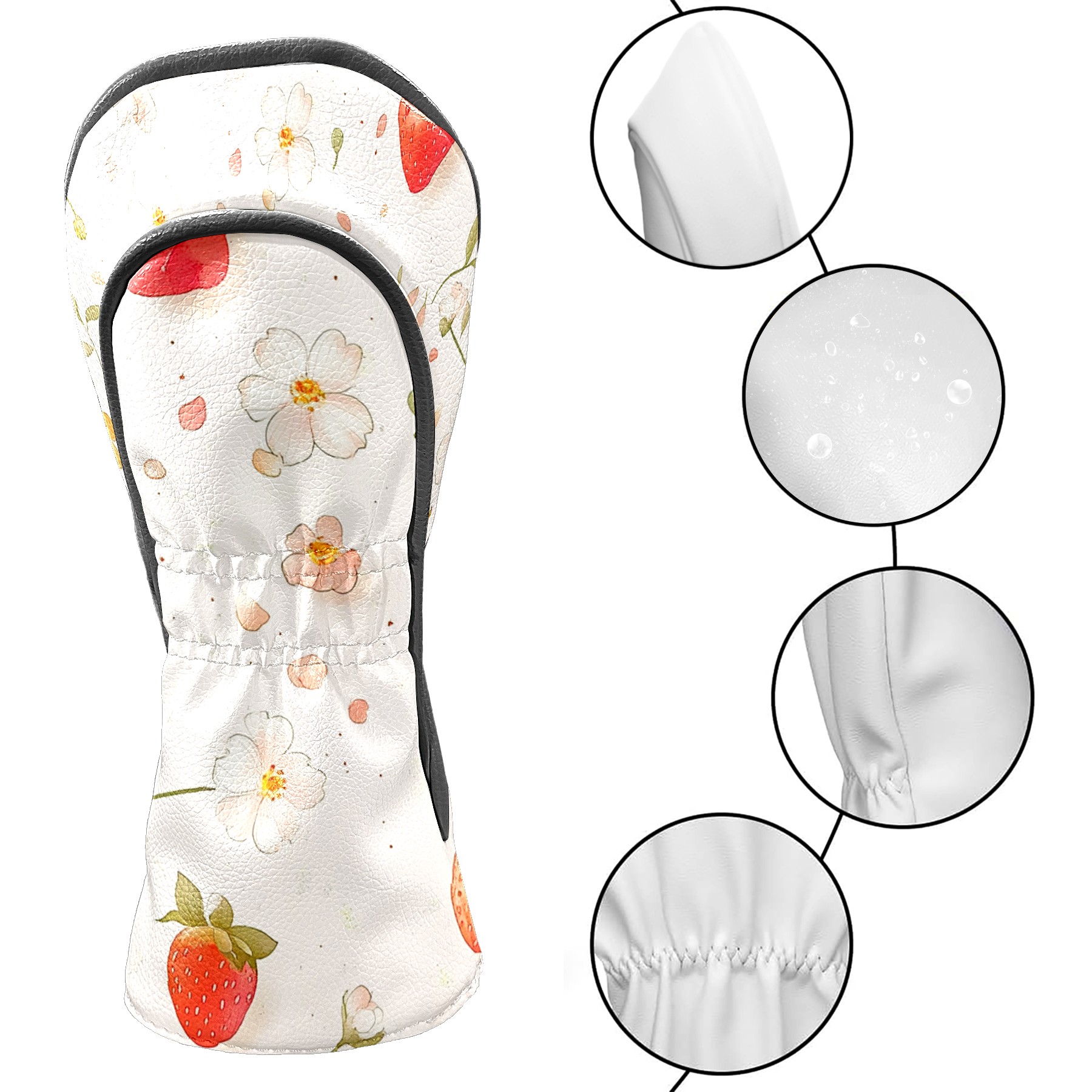 Black Golf Club Head Cover Golf Accessories Head Covers Set For Driver & Fairway Woods Cute Tiny Strawberry Pattern