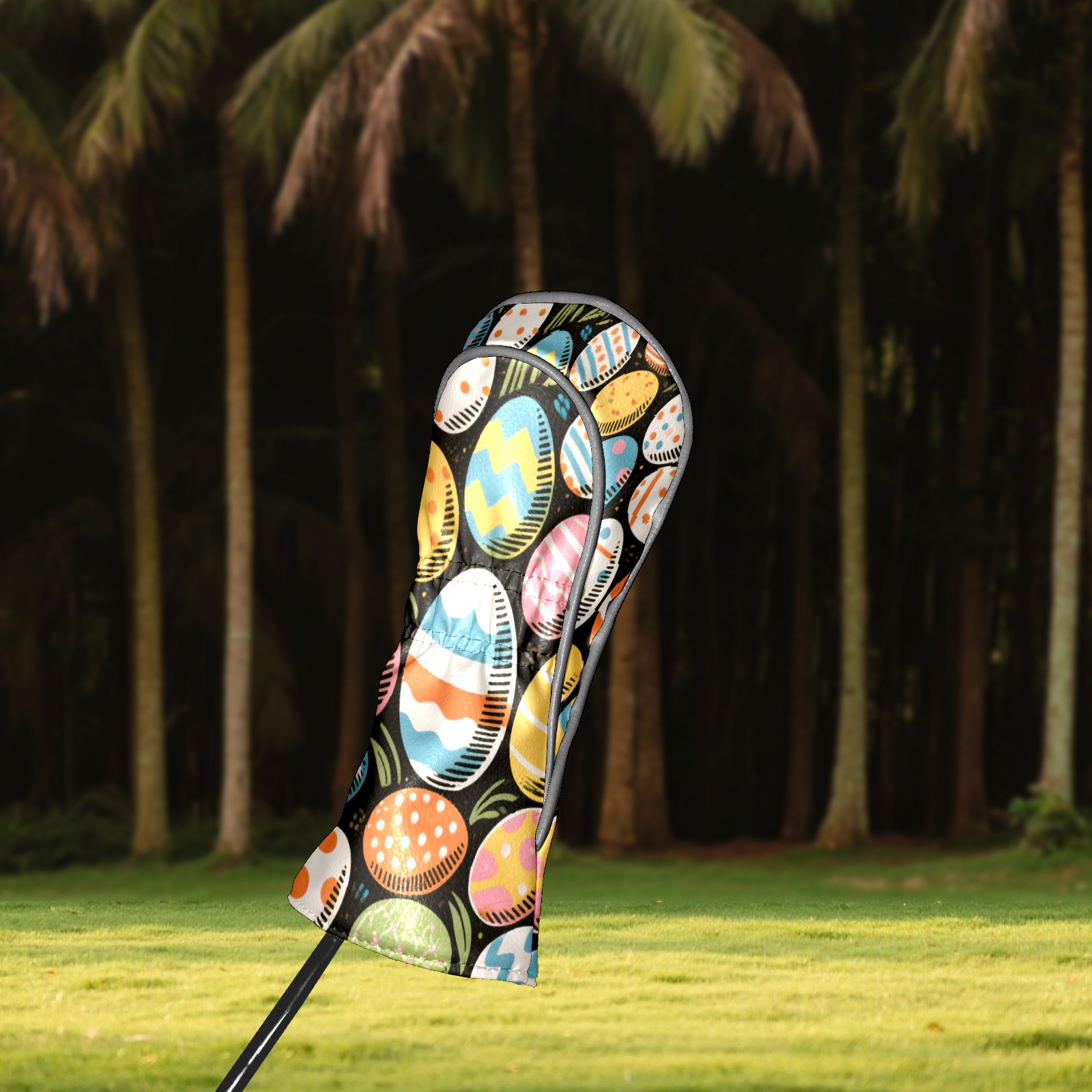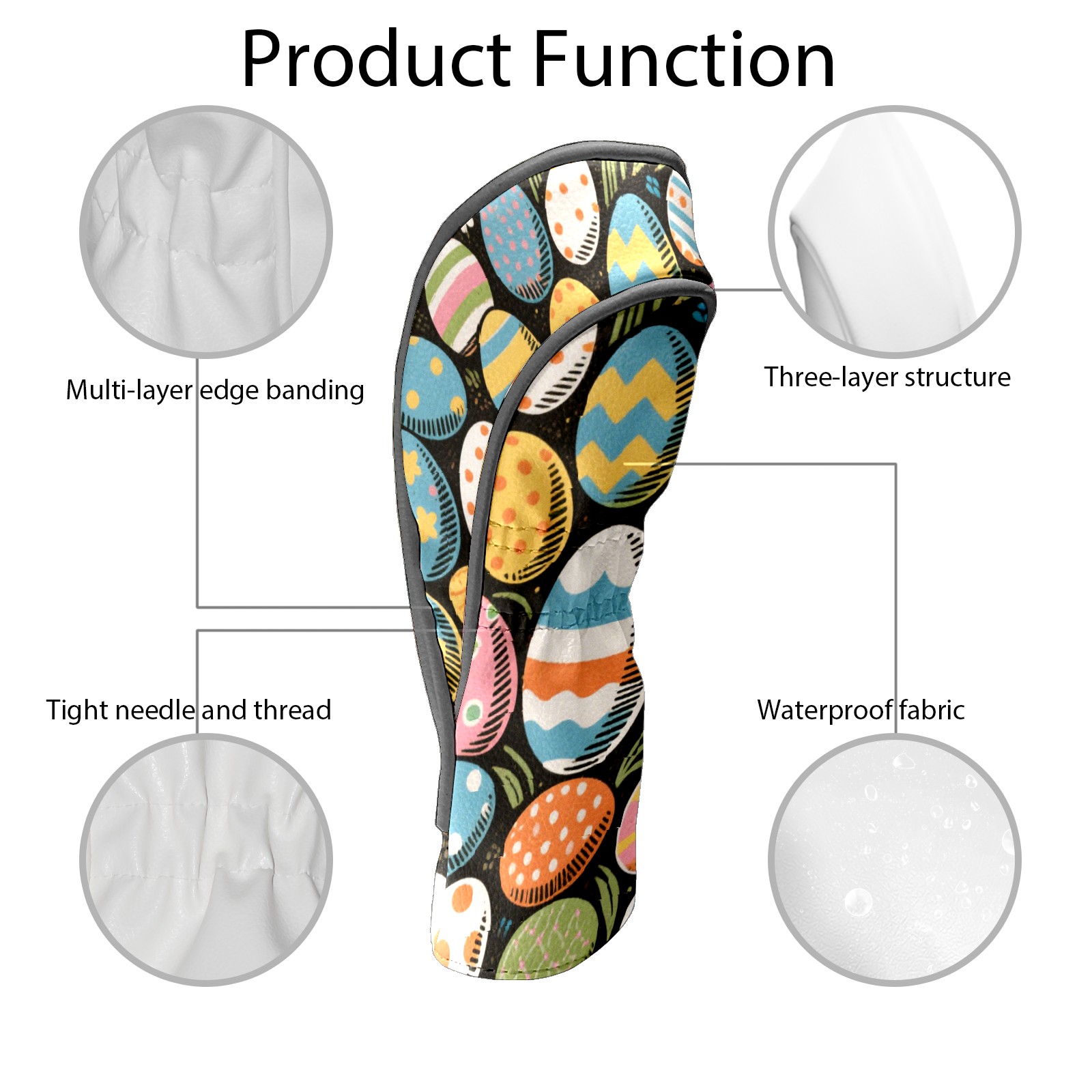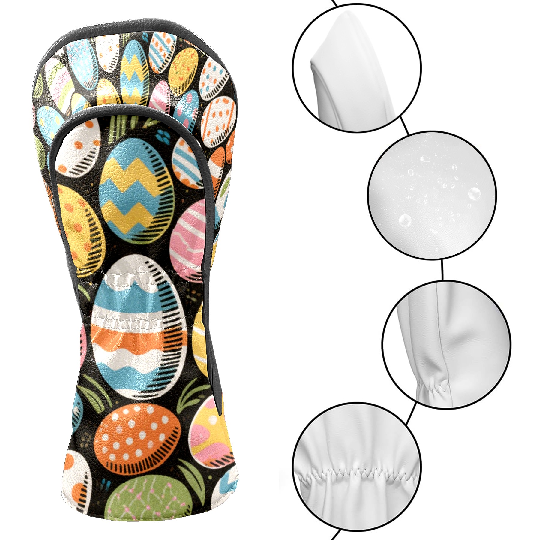 Black Golf Club Head Cover Golf Accessories Head Covers Set For Driver & Fairway Woods Easter Theme (11)