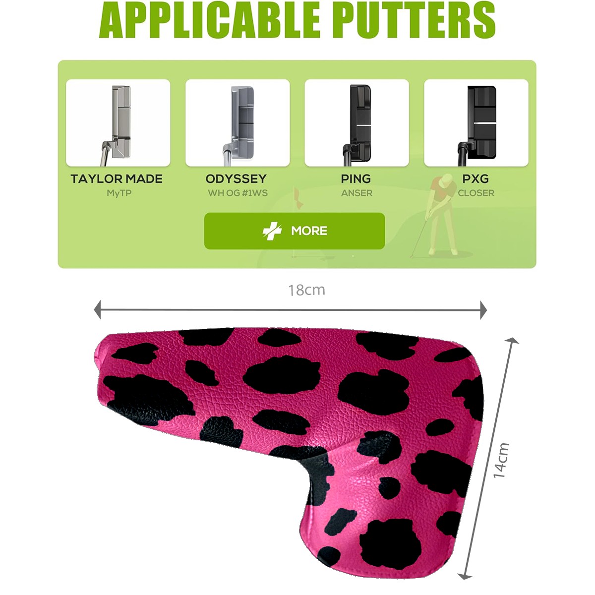 Golf Club Head Covers for Blade Putter, Waterproof Leather Headcovers for Golf Clubs, Ideal Golf Accessories Gift for Men Women (Pink Leopard Print)