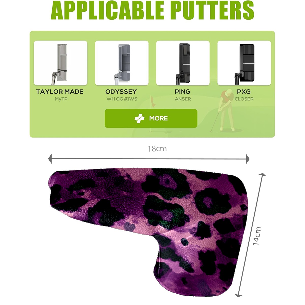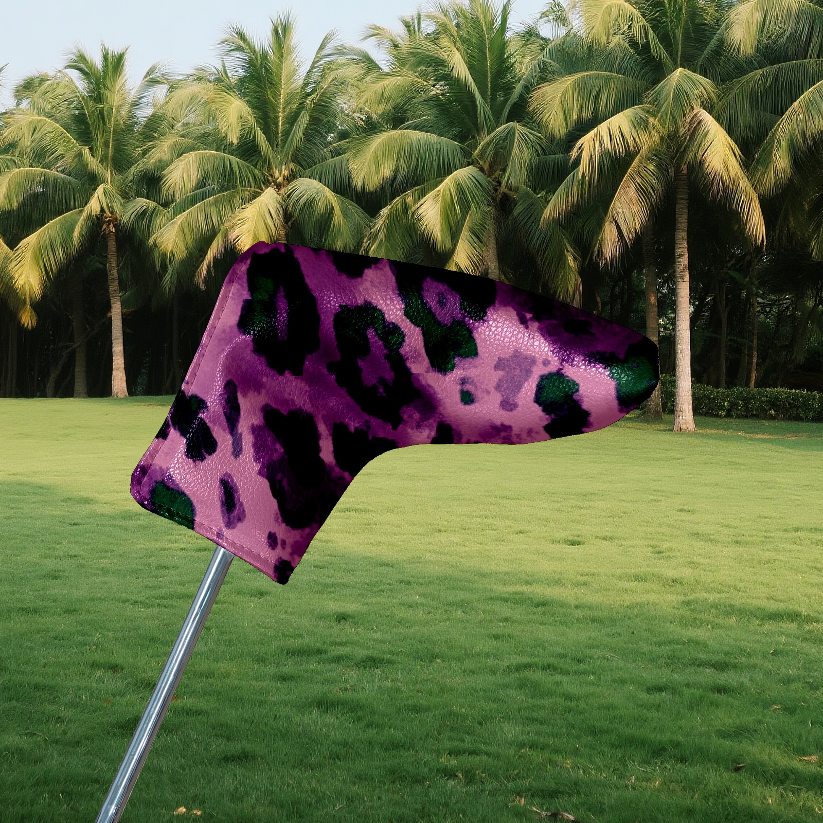 Golf Club Head Covers for Blade Putter, Waterproof Leather Headcovers for Golf Clubs, Ideal Golf Accessories Gift for Men Women (Purple And Green Leopard Print)