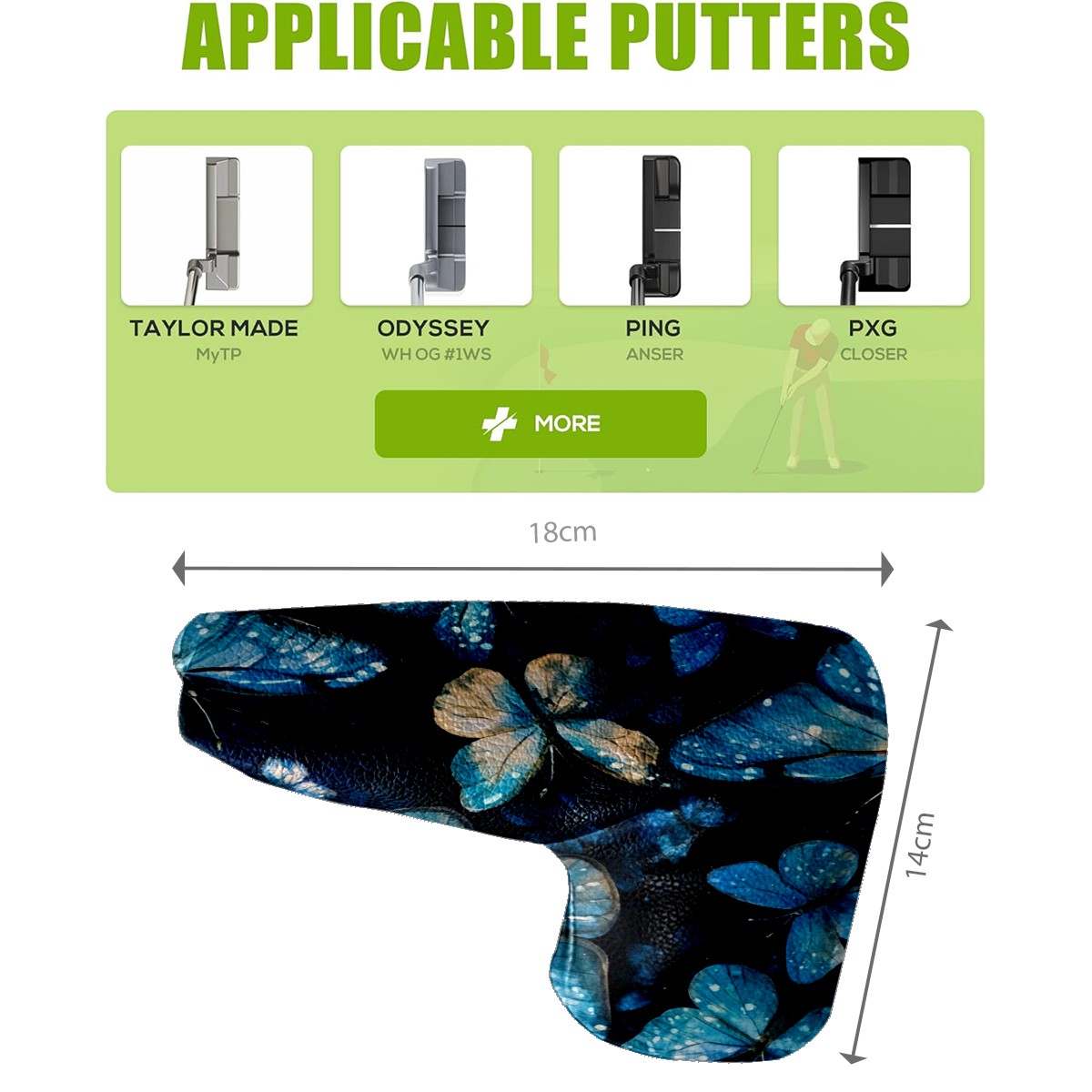 Golf Club Head Covers for Blade Putter, Waterproof Leather Headcovers for Golf Clubs, Ideal Golf Accessories Gift for Men Women (Turquoise And Blue Butterflies)