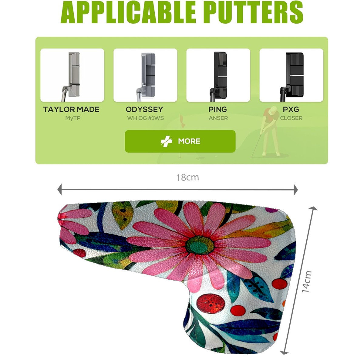 • <p>This golf club cover, made of high quality PU leather, combines durability with water and stain resistance to easily cope with complex outdoor environments. The soft velvet lining on the inside of the cover fits the clubs snugly, cushioning them from impact and preventing scratches and abrasions in every way. It's easy to clean, and can be gently scrubbed to keep your clubs in good condition. 14x18cm is the perfect size for all types of clubs, and it's stable and won't wobble. Whether for personal use or as a gift, the thoughtful and practical design makes it an ideal gift for golf enthusiasts on birthdays and festivals, adding a unique style to the bag.</p>