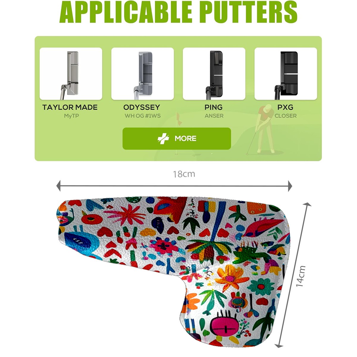 • <p>This golf club cover, made of high quality PU leather, combines durability with water and stain resistance to easily cope with complex outdoor environments. The soft velvet lining on the inside of the cover fits the clubs snugly, cushioning them from impact and preventing scratches and abrasions in every way. It's easy to clean, and can be gently scrubbed to keep your clubs in good condition. 14x18cm is the perfect size for all types of clubs, and it's stable and won't wobble. Whether for personal use or as a gift, the thoughtful and practical design makes it an ideal gift for golf enthusiasts on birthdays and festivals, adding a unique style to the bag.</p>