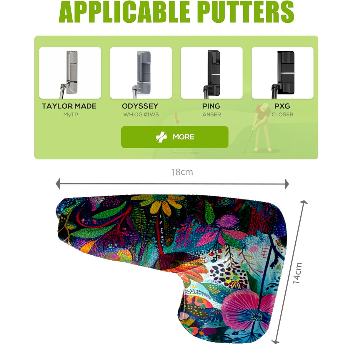 • <p>This golf club cover, made of high quality PU leather, combines durability with water and stain resistance to easily cope with complex outdoor environments. The soft velvet lining on the inside of the cover fits the clubs snugly, cushioning them from impact and preventing scratches and abrasions in every way. It's easy to clean, and can be gently scrubbed to keep your clubs in good condition. 14x18cm is the perfect size for all types of clubs, and it's stable and won't wobble. Whether for personal use or as a gift, the thoughtful and practical design makes it an ideal gift for golf enthusiasts on birthdays and festivals, adding a unique style to the bag.</p>