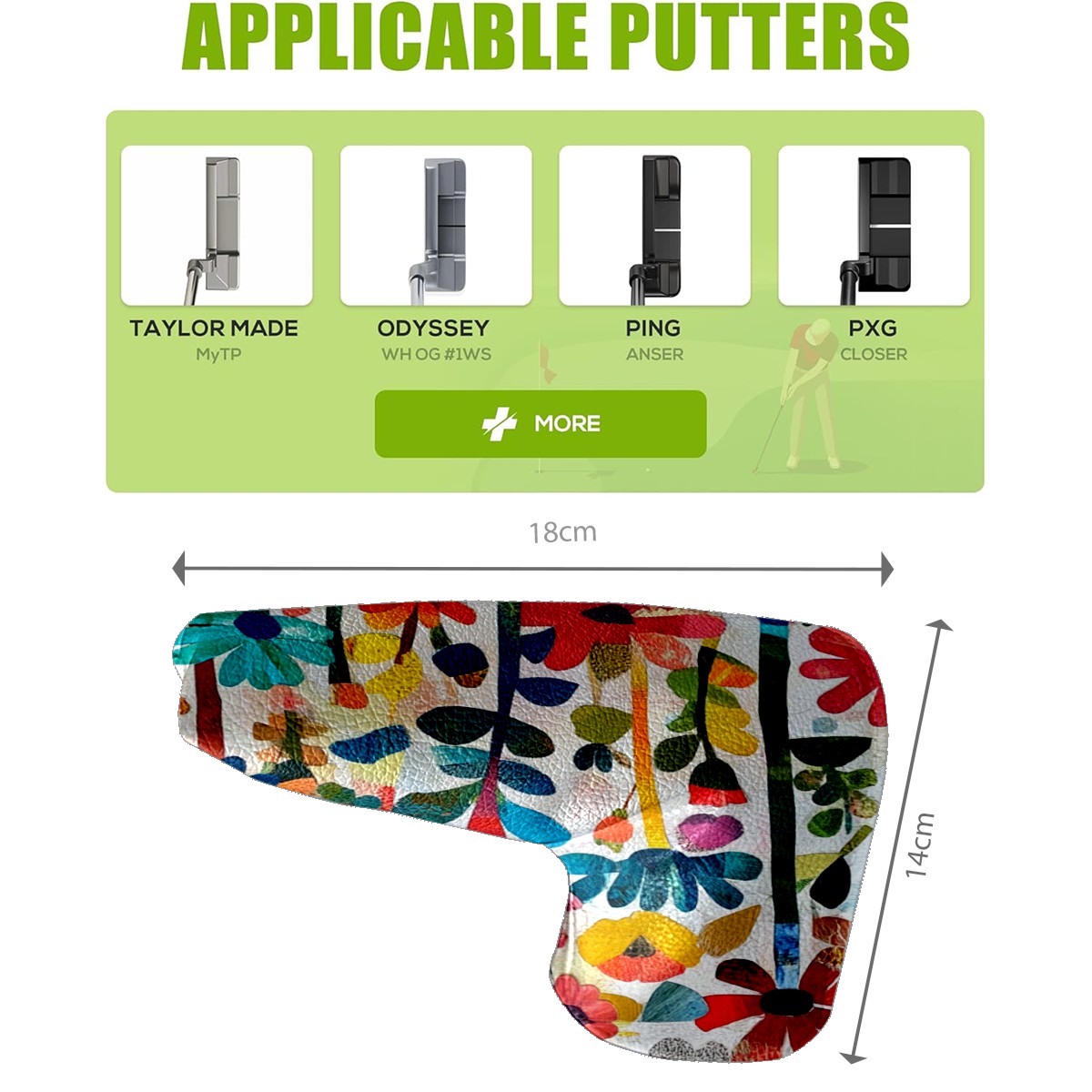 • <p>This golf club cover, made of high quality PU leather, combines durability with water and stain resistance to easily cope with complex outdoor environments. The soft velvet lining on the inside of the cover fits the clubs snugly, cushioning them from impact and preventing scratches and abrasions in every way. It's easy to clean, and can be gently scrubbed to keep your clubs in good condition. 14x18cm is the perfect size for all types of clubs, and it's stable and won't wobble. Whether for personal use or as a gift, the thoughtful and practical design makes it an ideal gift for golf enthusiasts on birthdays and festivals, adding a unique style to the bag.</p>