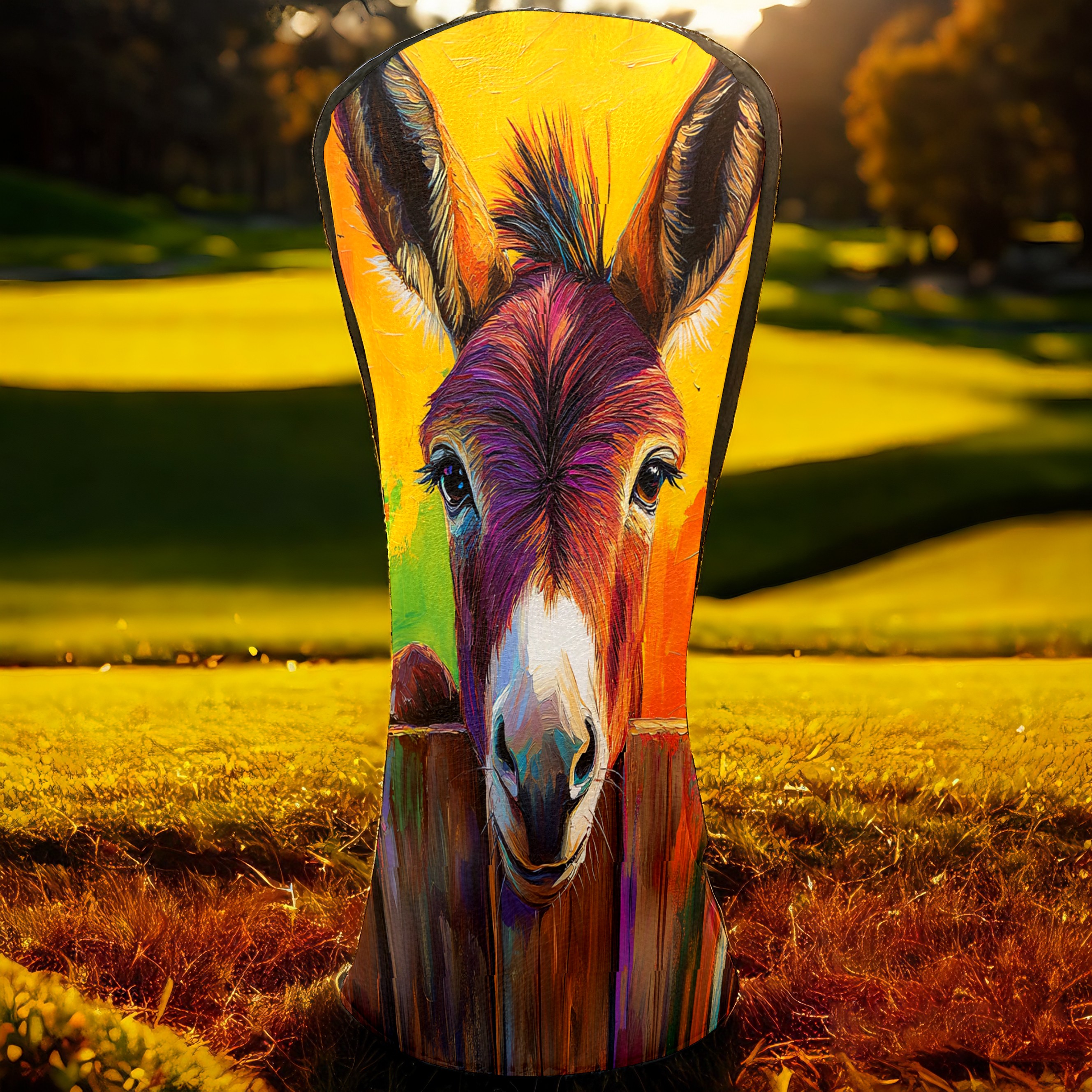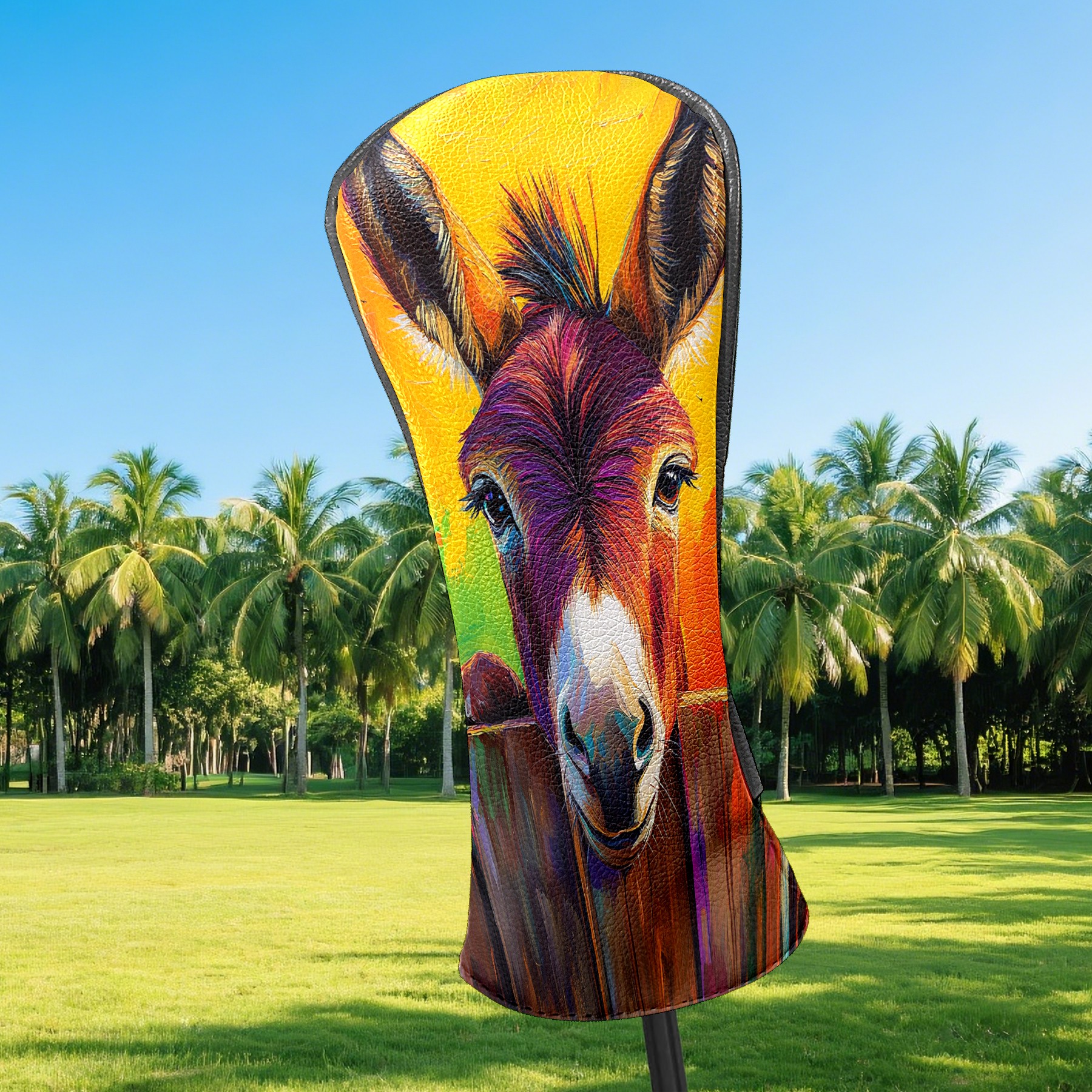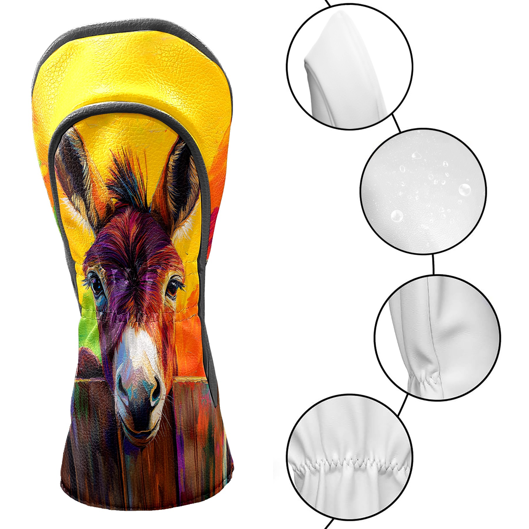 Golf Club Head Cover Premium Leather Driver Headcover, Golf Head Covers for Woods and Driver Waterproof Golf Headcovers with Anti-Scratch Lining for Men Women (Cute Donkey)
