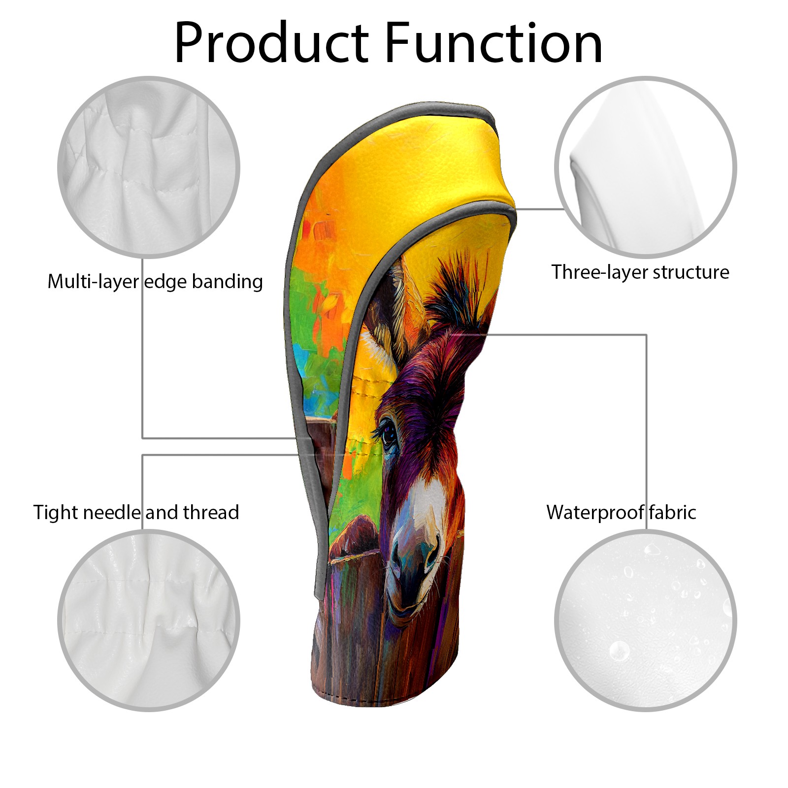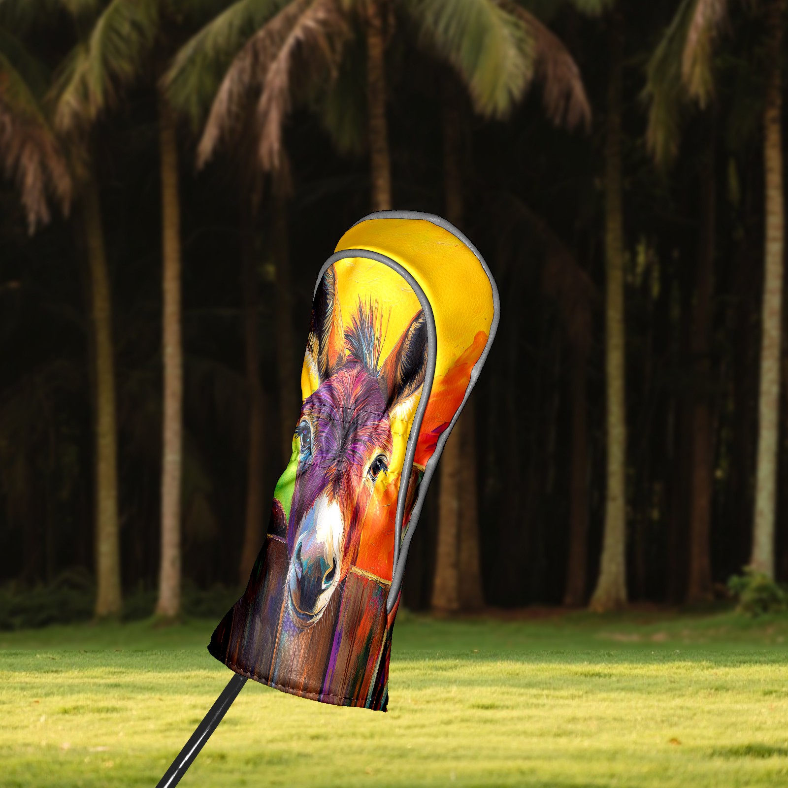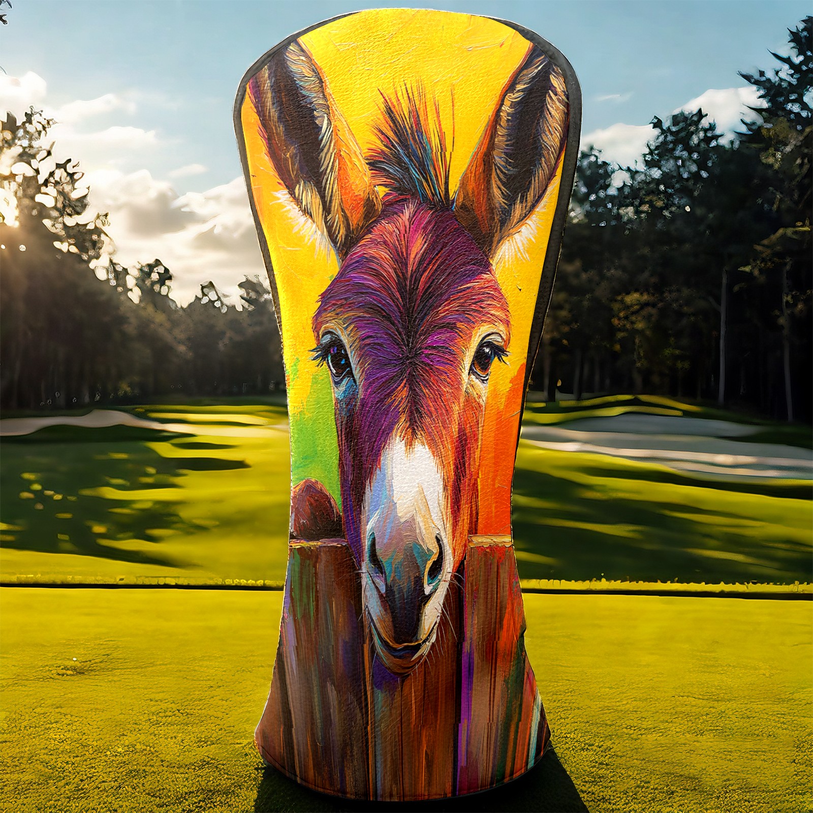 Golf Club Head Cover Premium Leather Driver Headcover, Golf Head Covers for Woods and Driver Waterproof Golf Headcovers with Anti-Scratch Lining for Men Women (Cute Donkey)