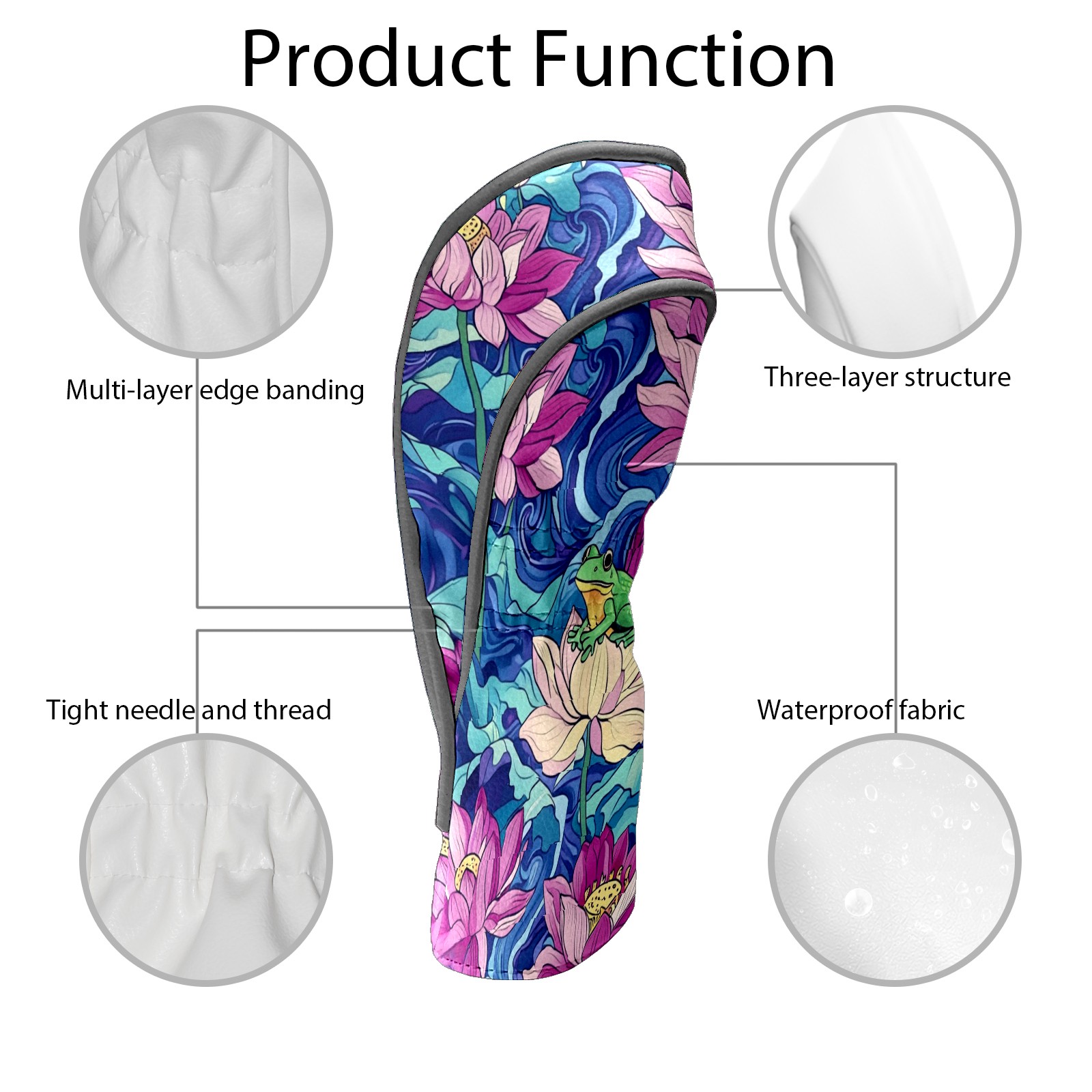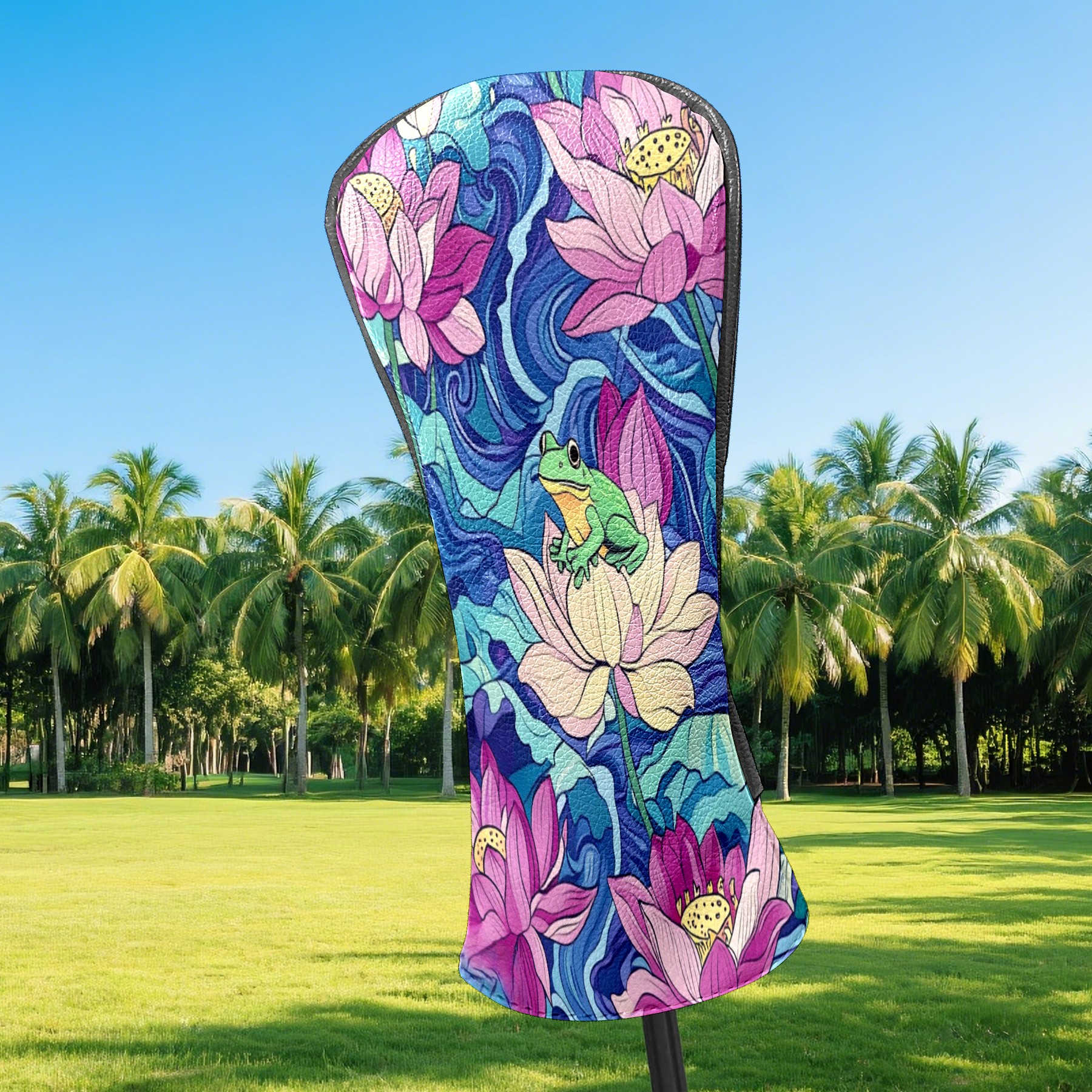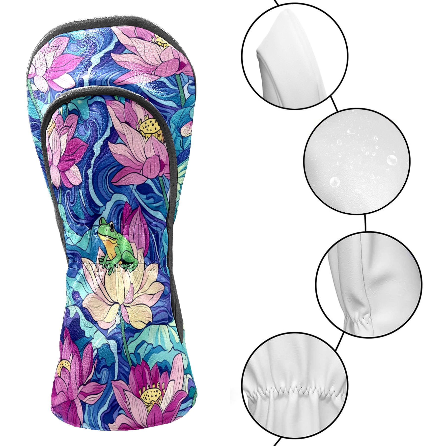Golf Club Head Cover Waterproof Leather Golf Club Cover Driver Headcover for Women Men Lotus Flower3