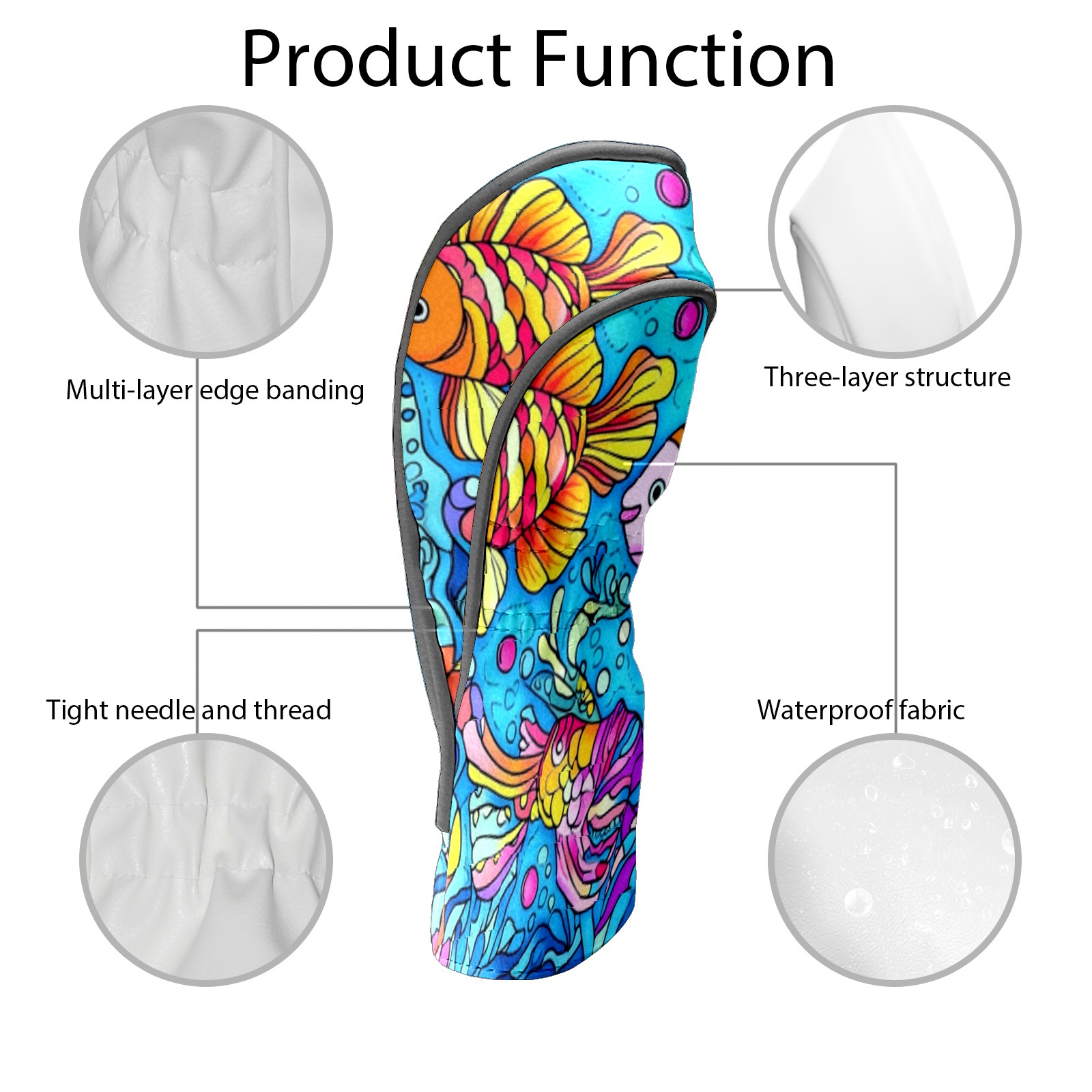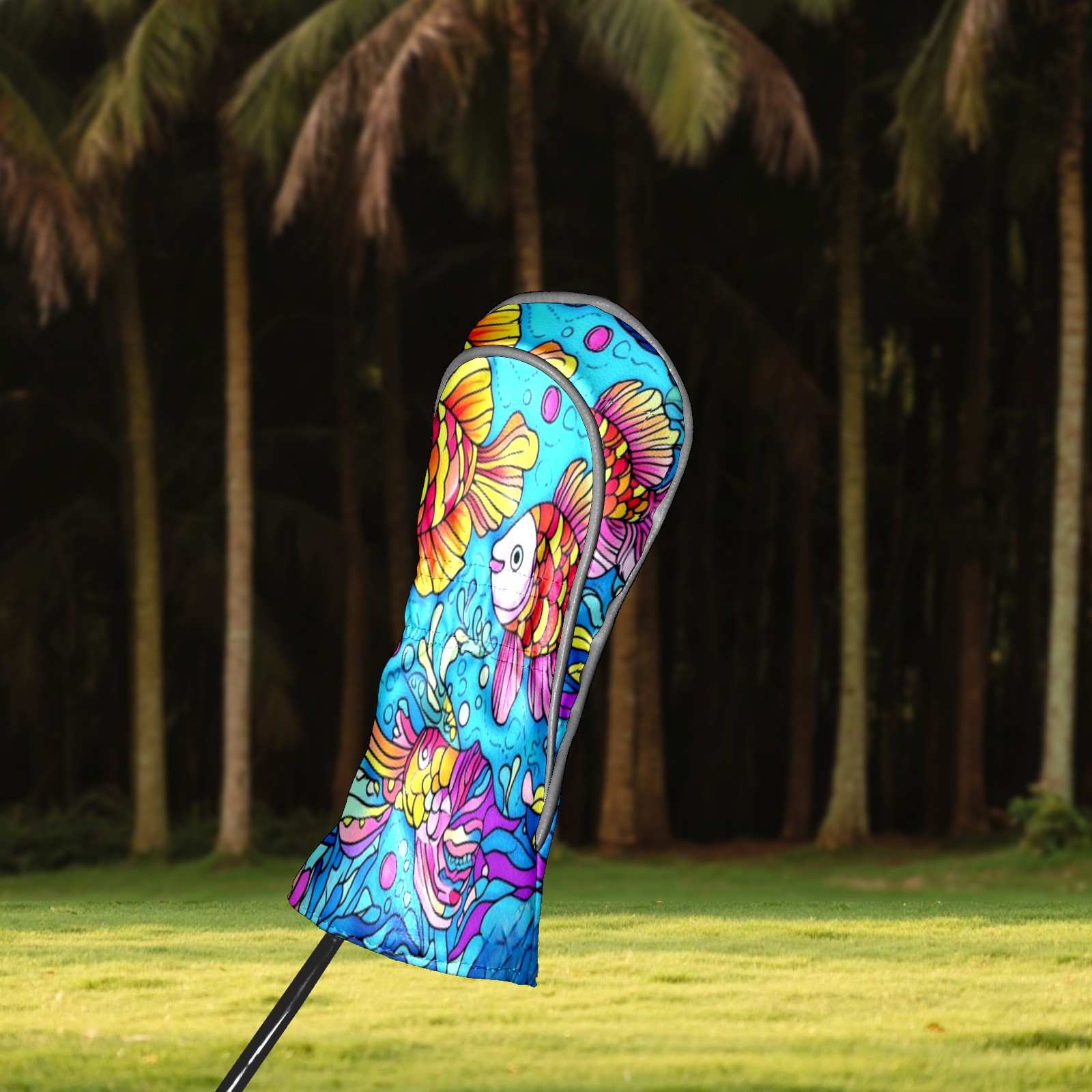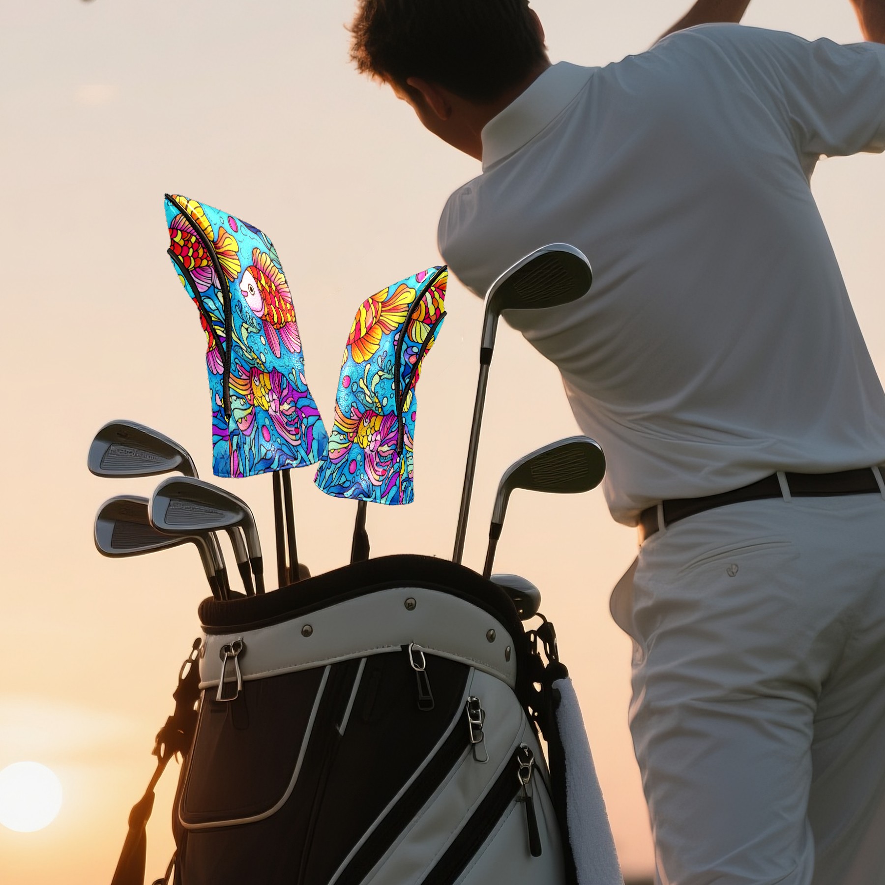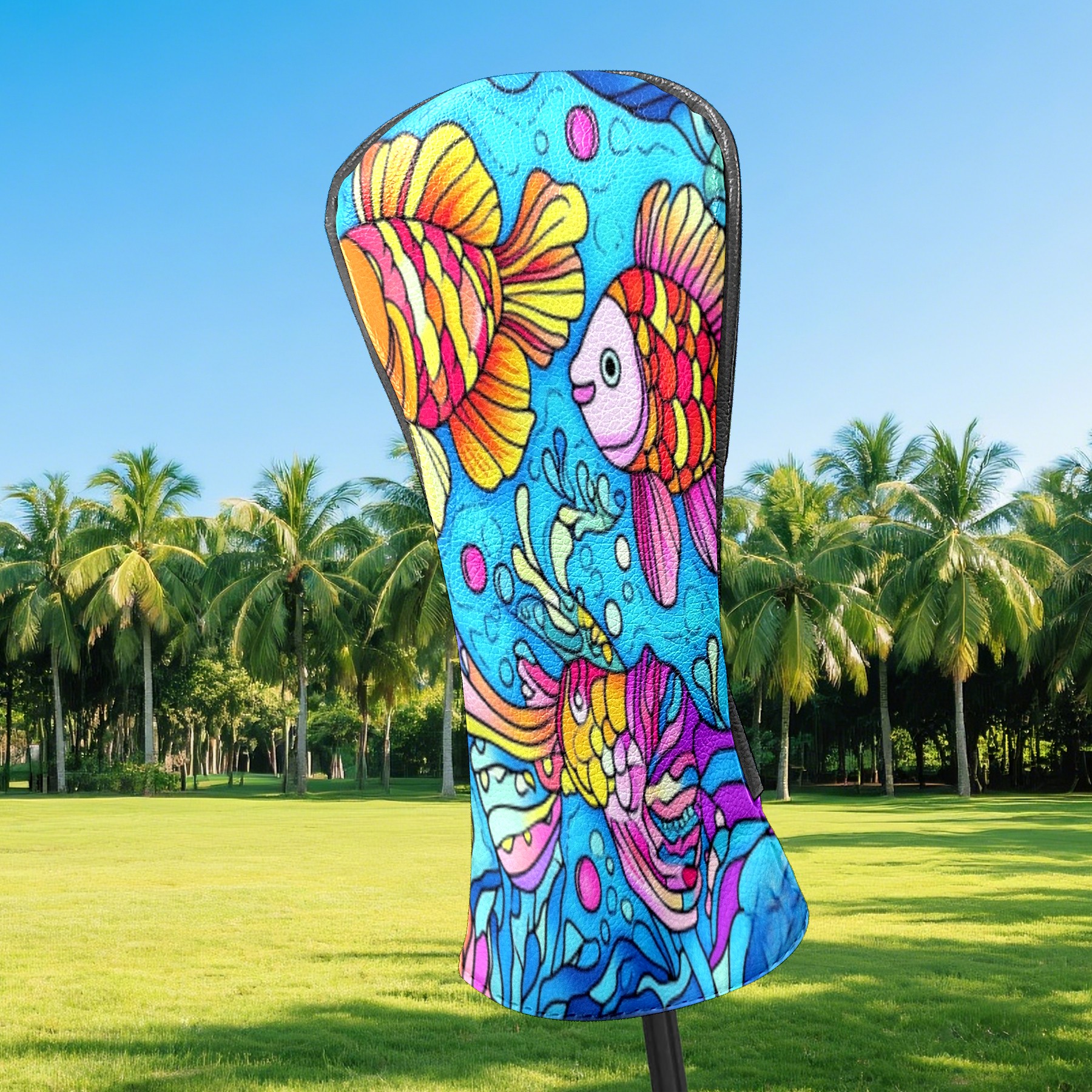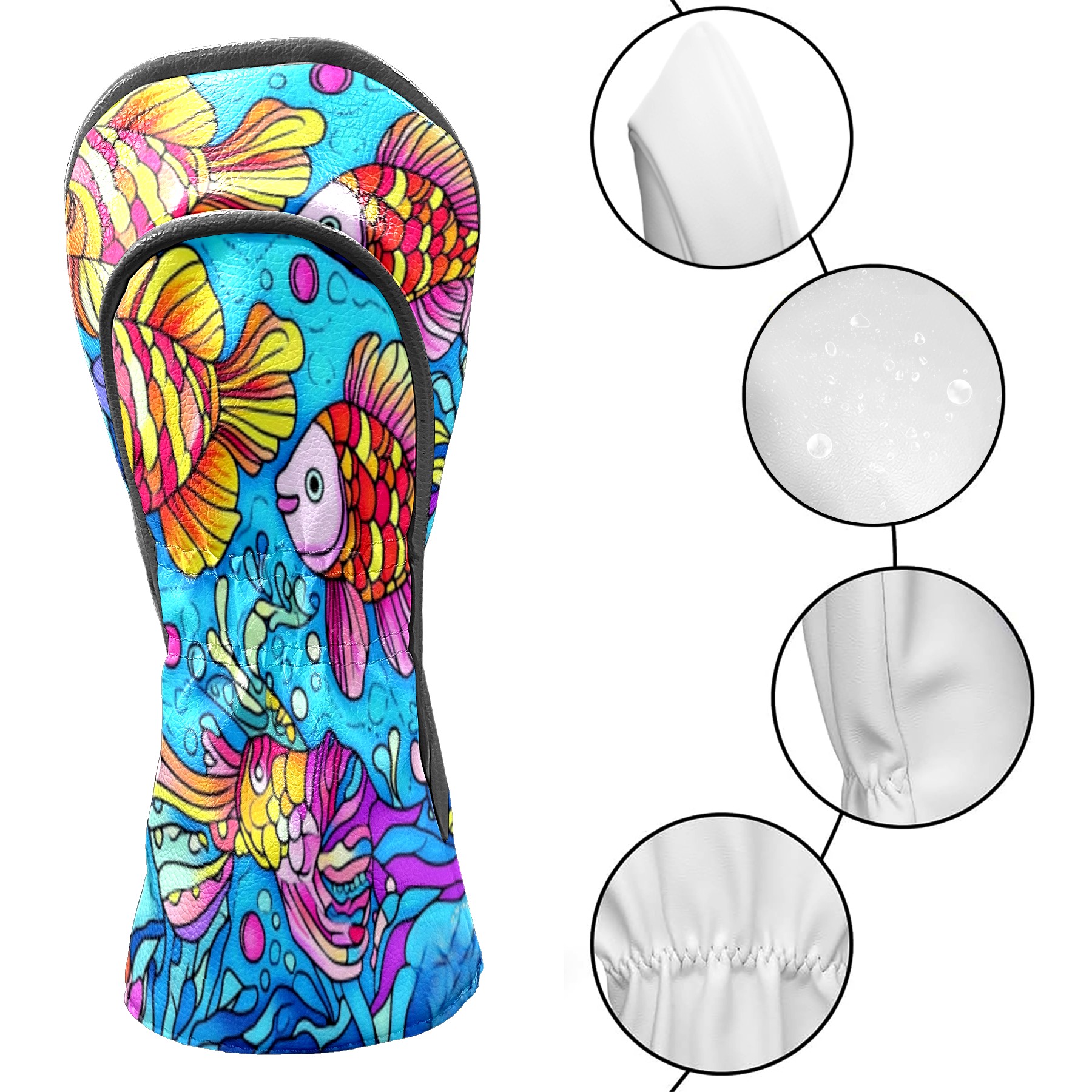 Golf Club Head Cover Waterproof Leather Golf Club Cover Driver Headcover for Women Men Colorful Fish2