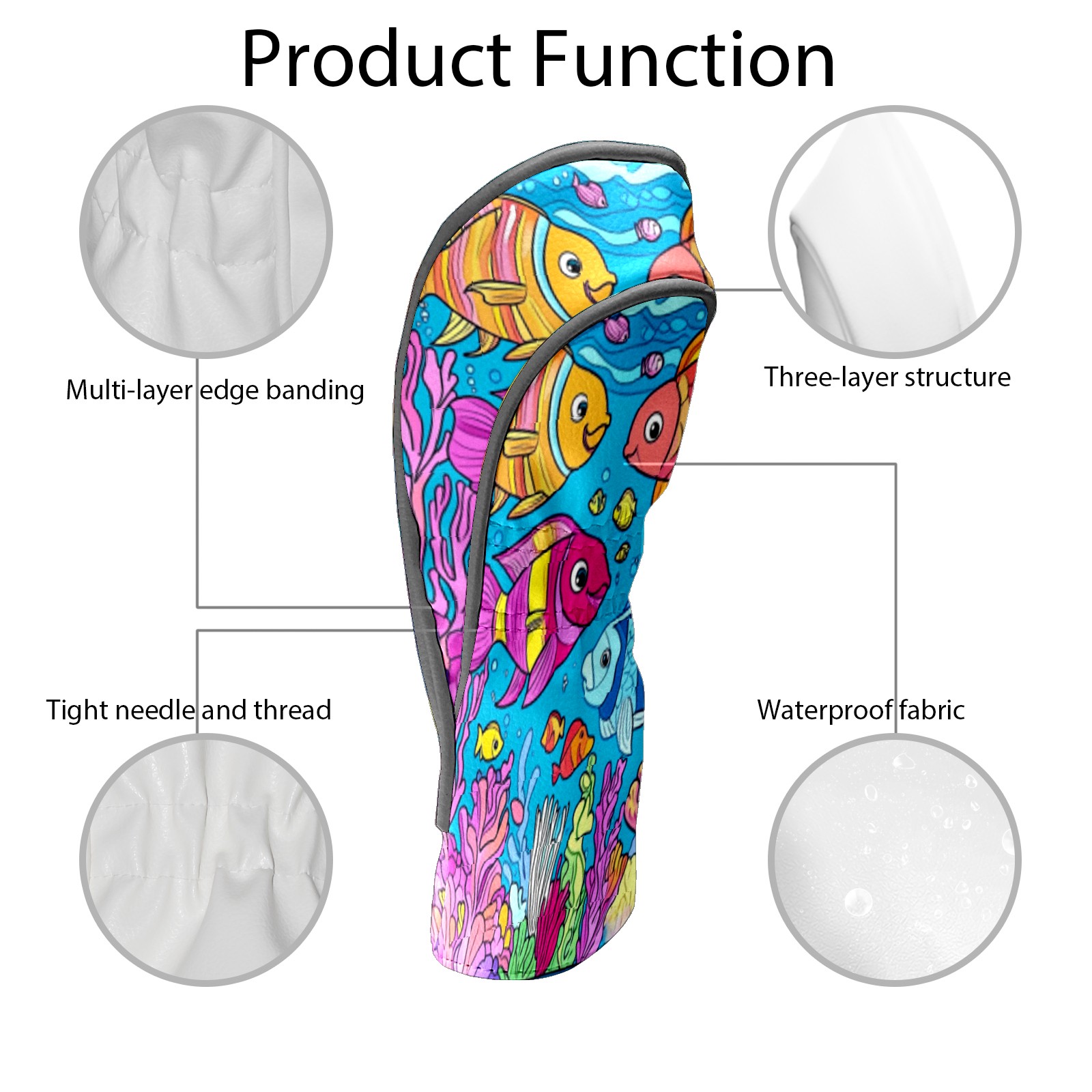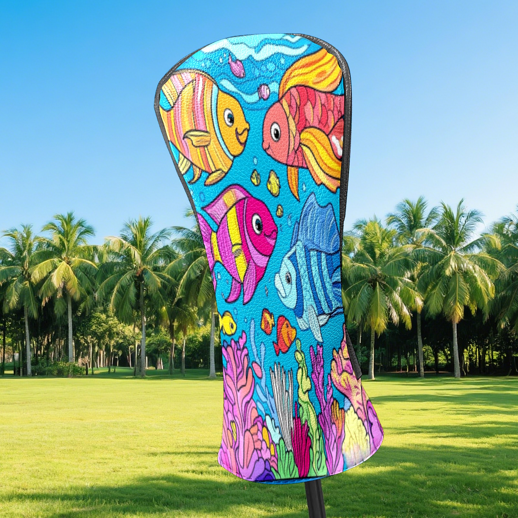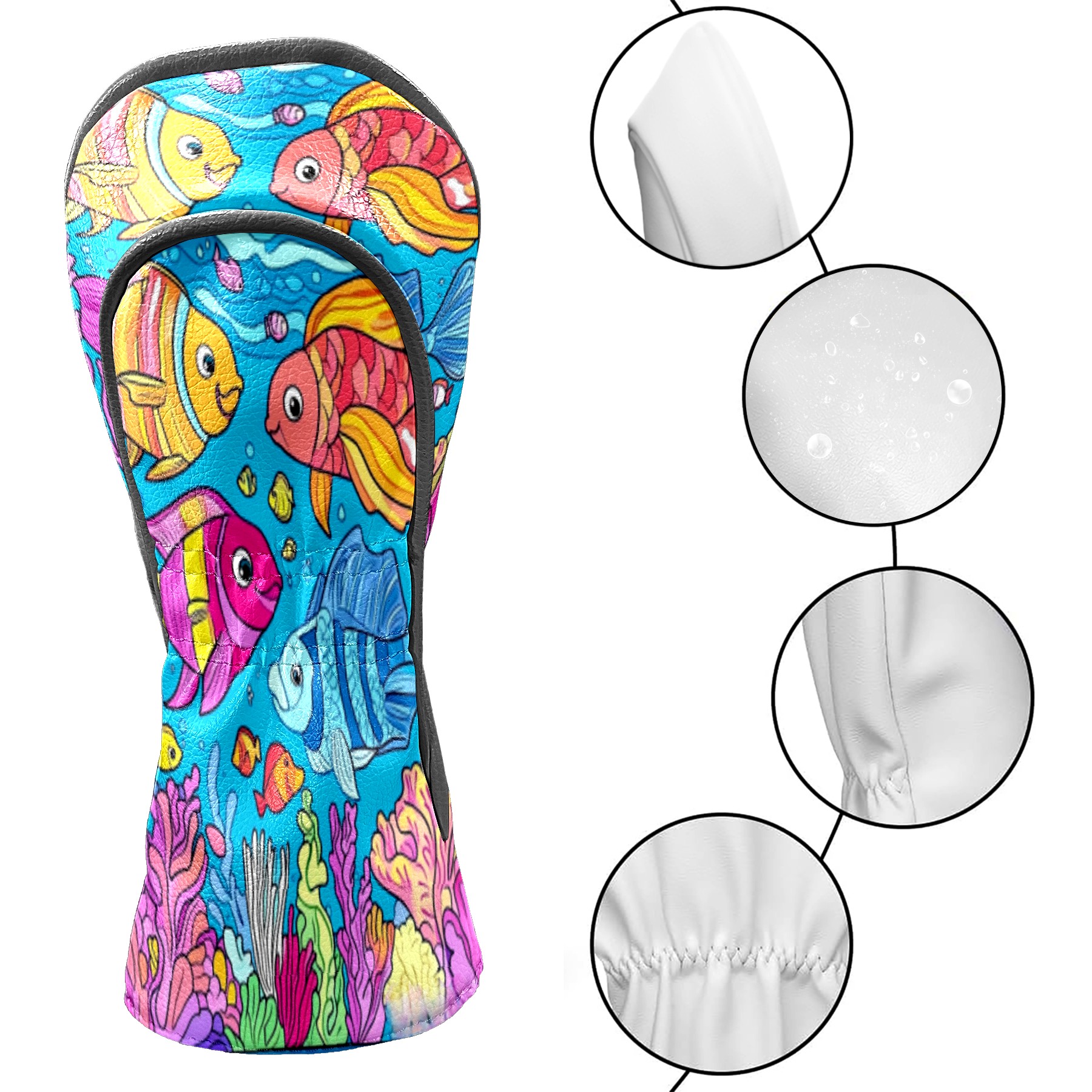 Golf Club Head Cover Waterproof Leather Golf Club Cover Driver Headcover for Women Men Colorful Fish