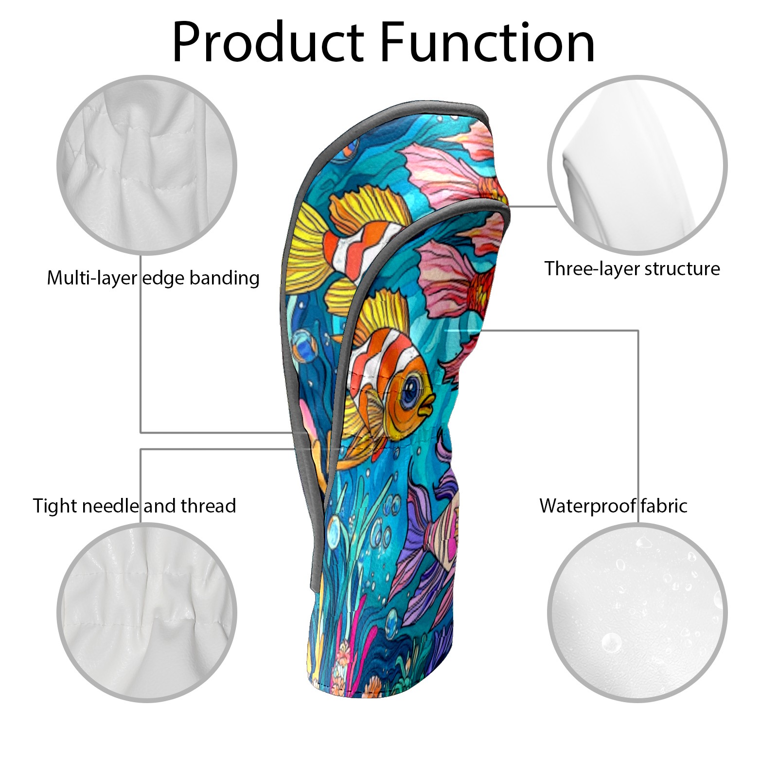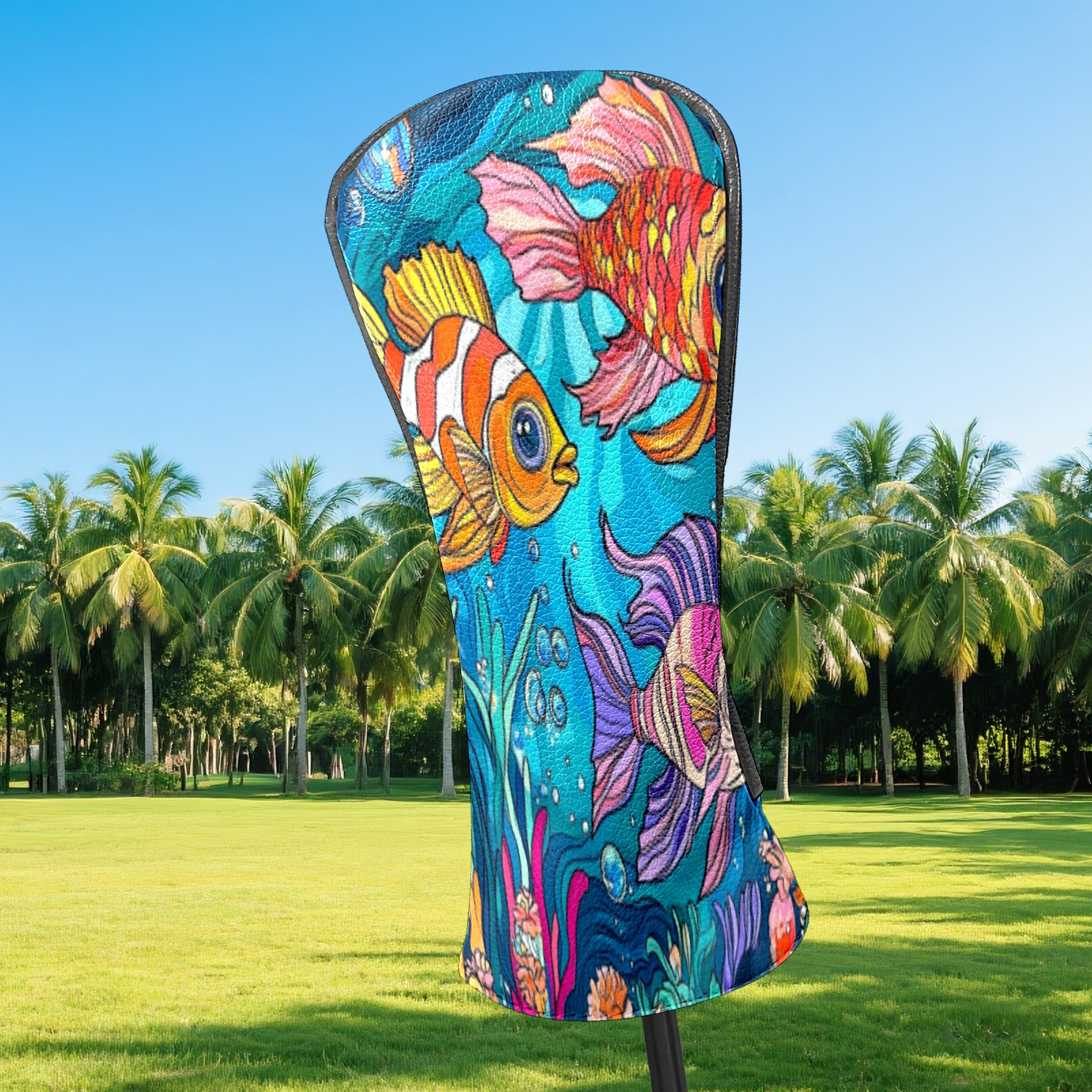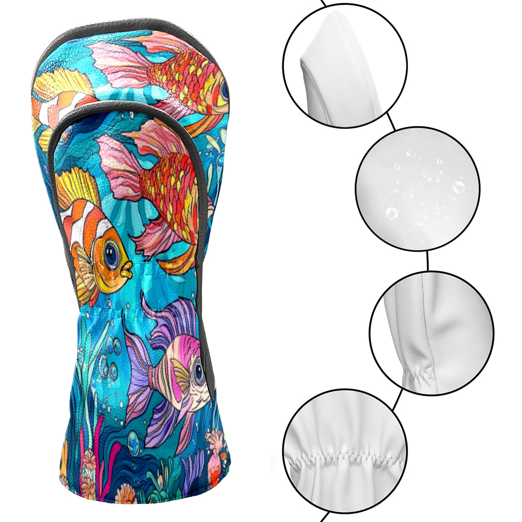 Golf Club Head Cover Waterproof Leather Golf Club Cover Driver Headcover for Women Men Colorful Fish 1