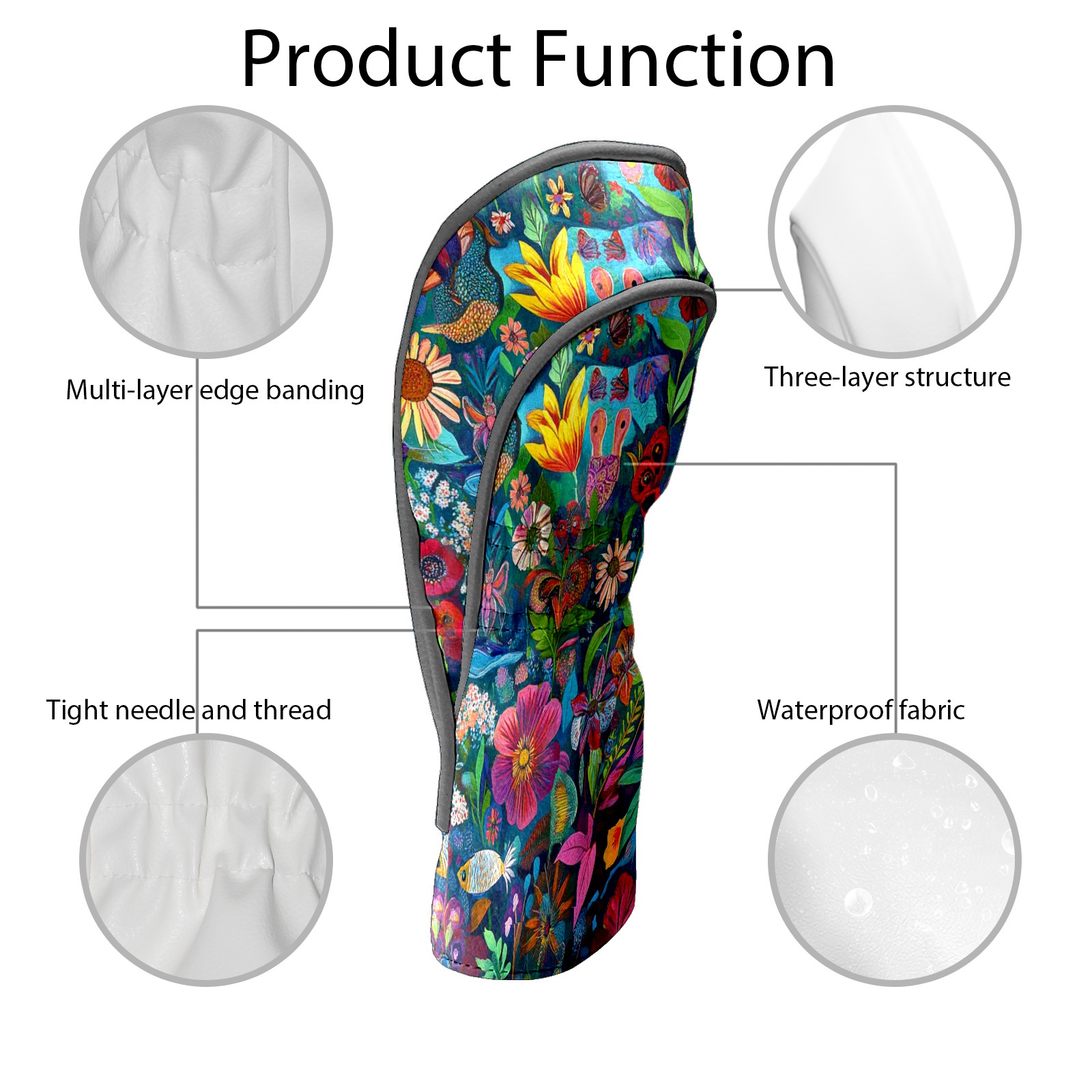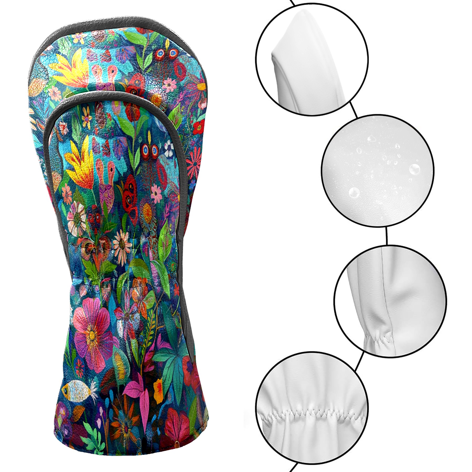 Golf Club Head Cover Waterproof Leather Golf Club Cover Driver Headcover for Women Men Flowers4