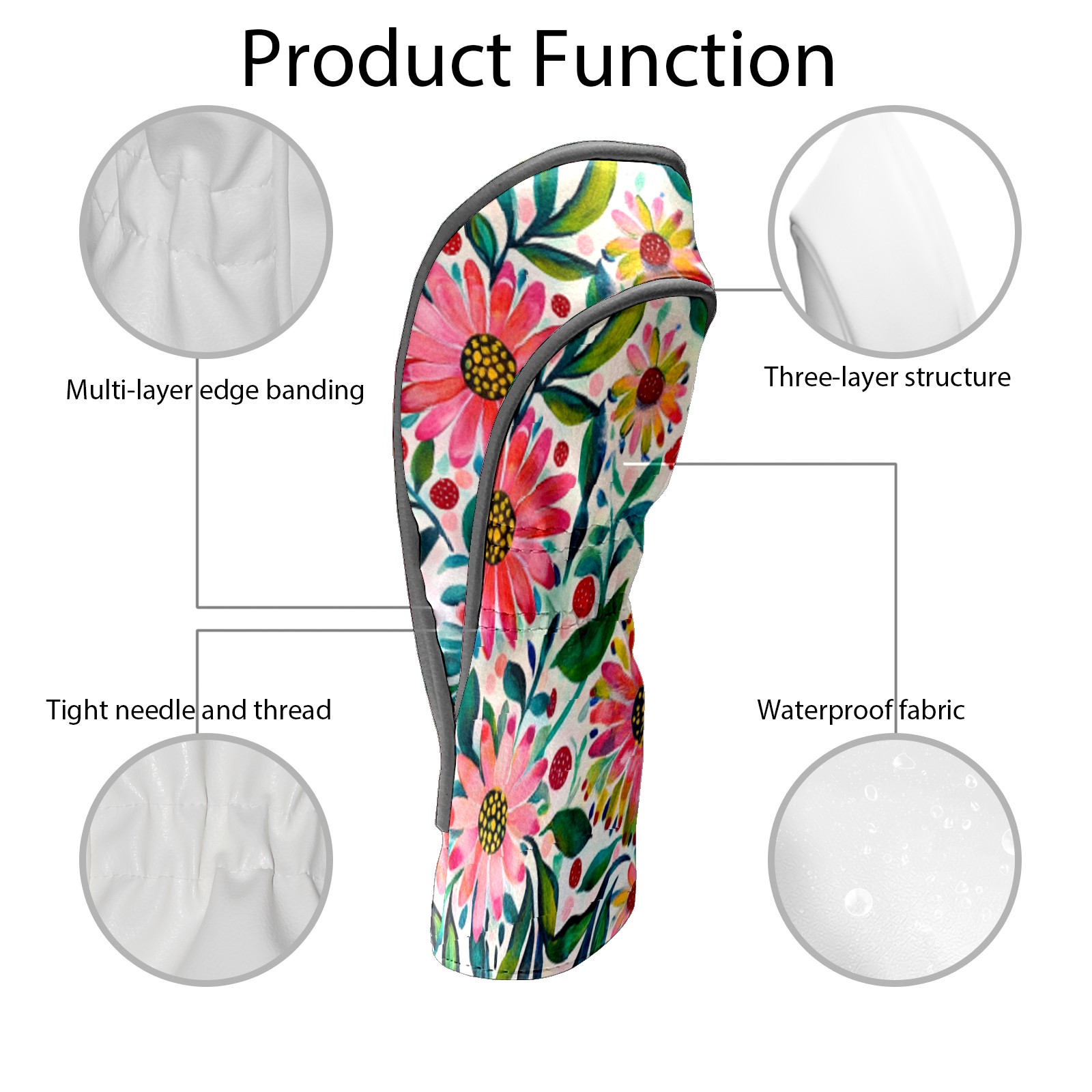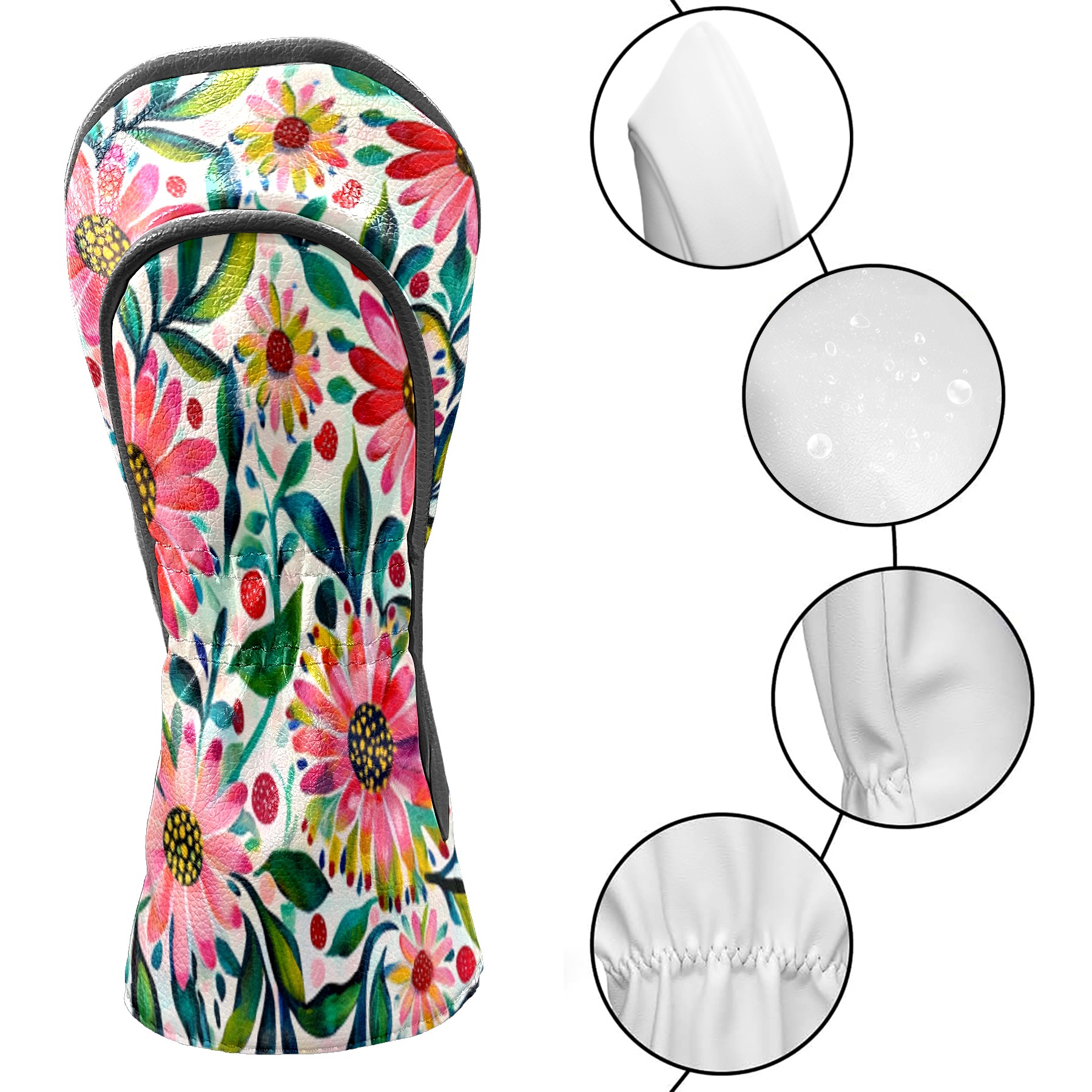 Golf Club Head Cover Waterproof Leather Golf Club Cover Driver Headcover for Women Men Flowers5