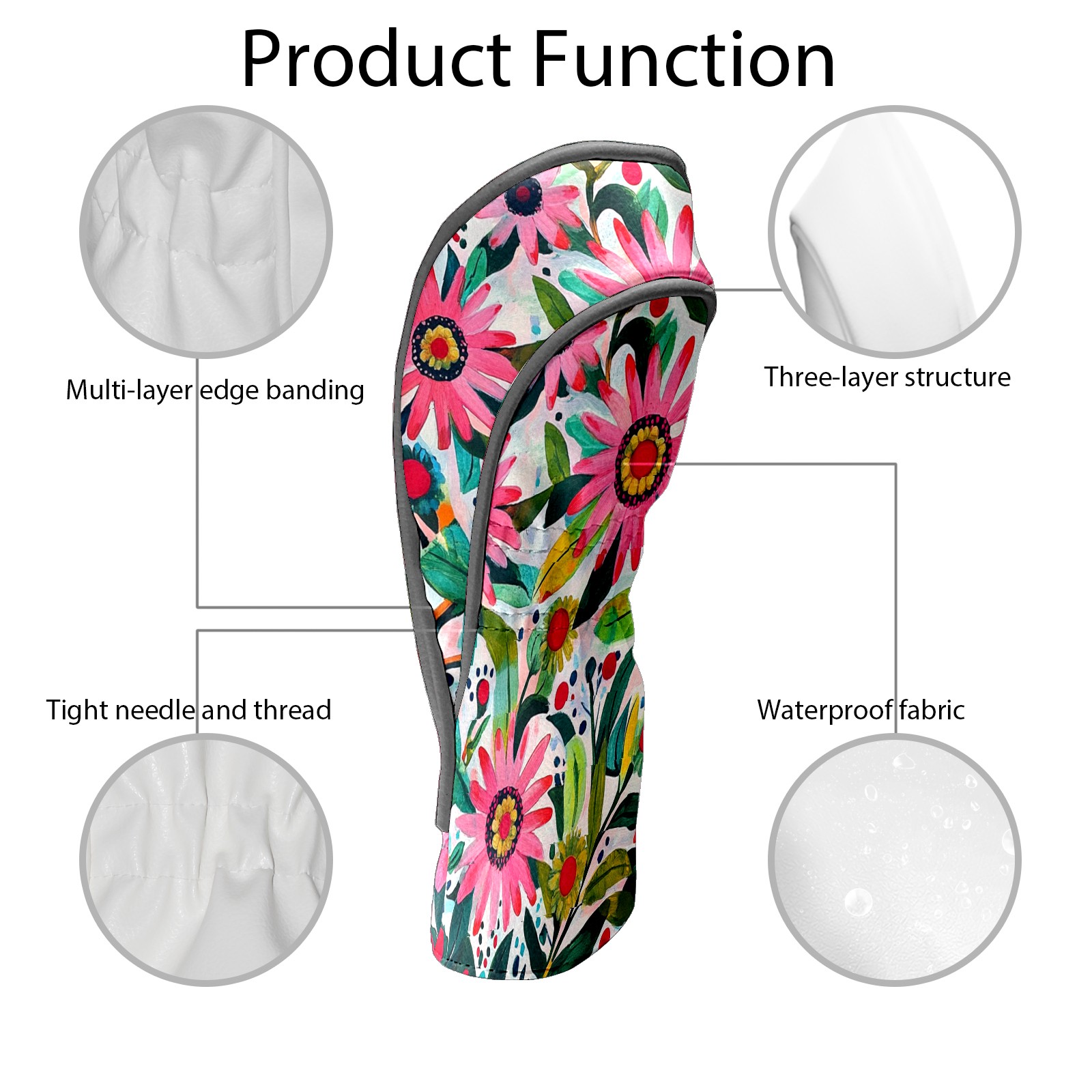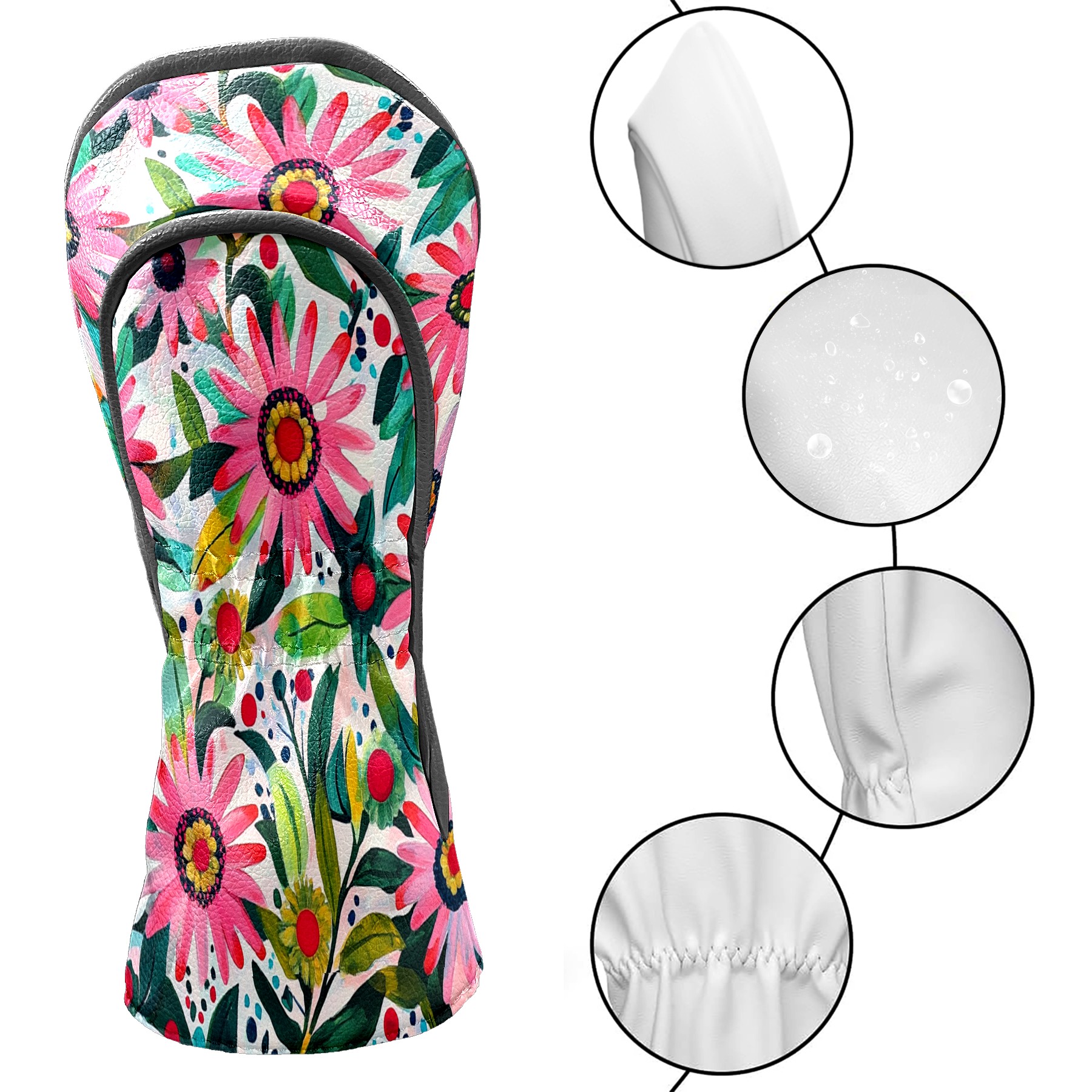 Golf Club Head Cover Waterproof Leather Golf Club Cover Driver Headcover for Women Men Flowers6