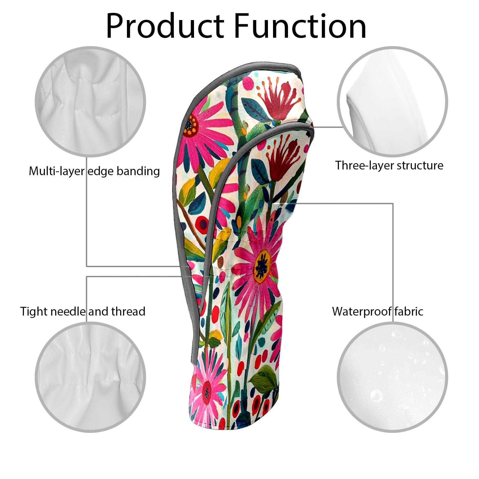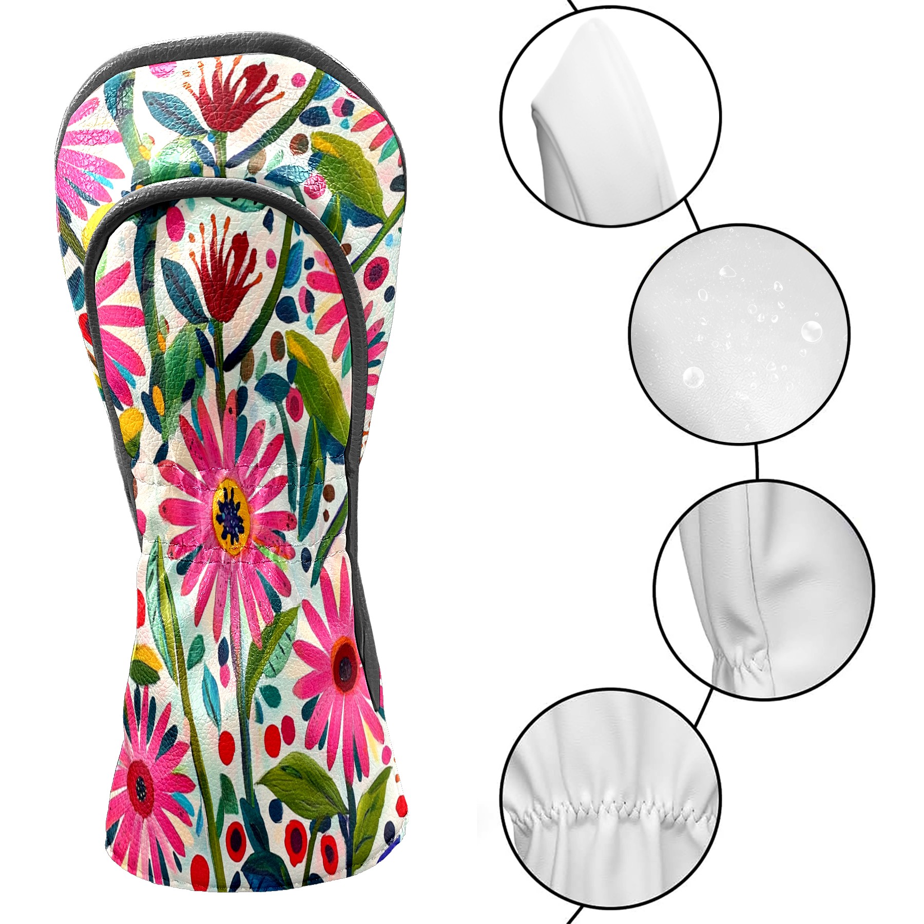 Golf Club Head Cover Waterproof Leather Golf Club Cover Driver Headcover for Women Men Flowers8