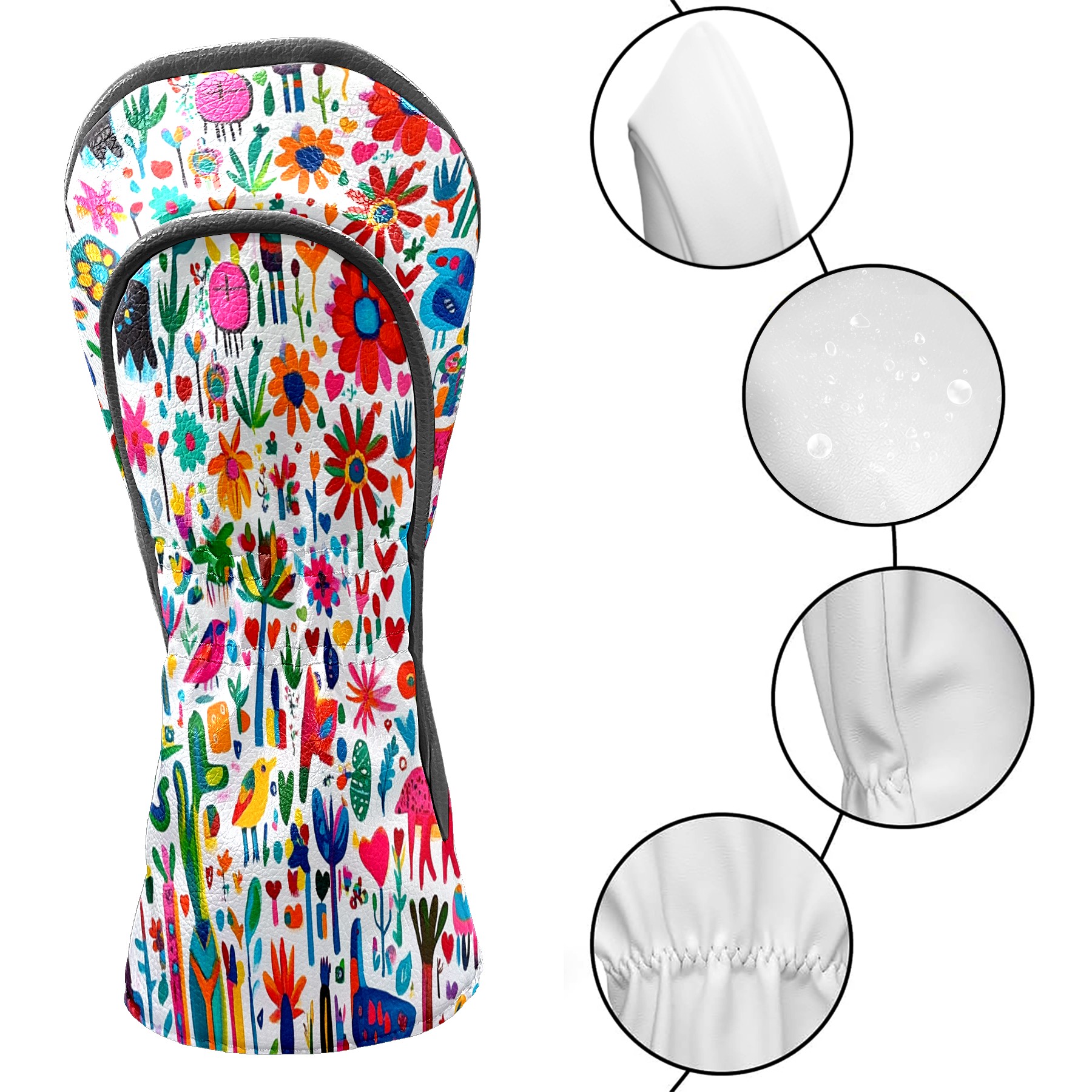 Golf Club Head Cover Waterproof Leather Golf Club Cover Driver Headcover for Women Men Flowers12