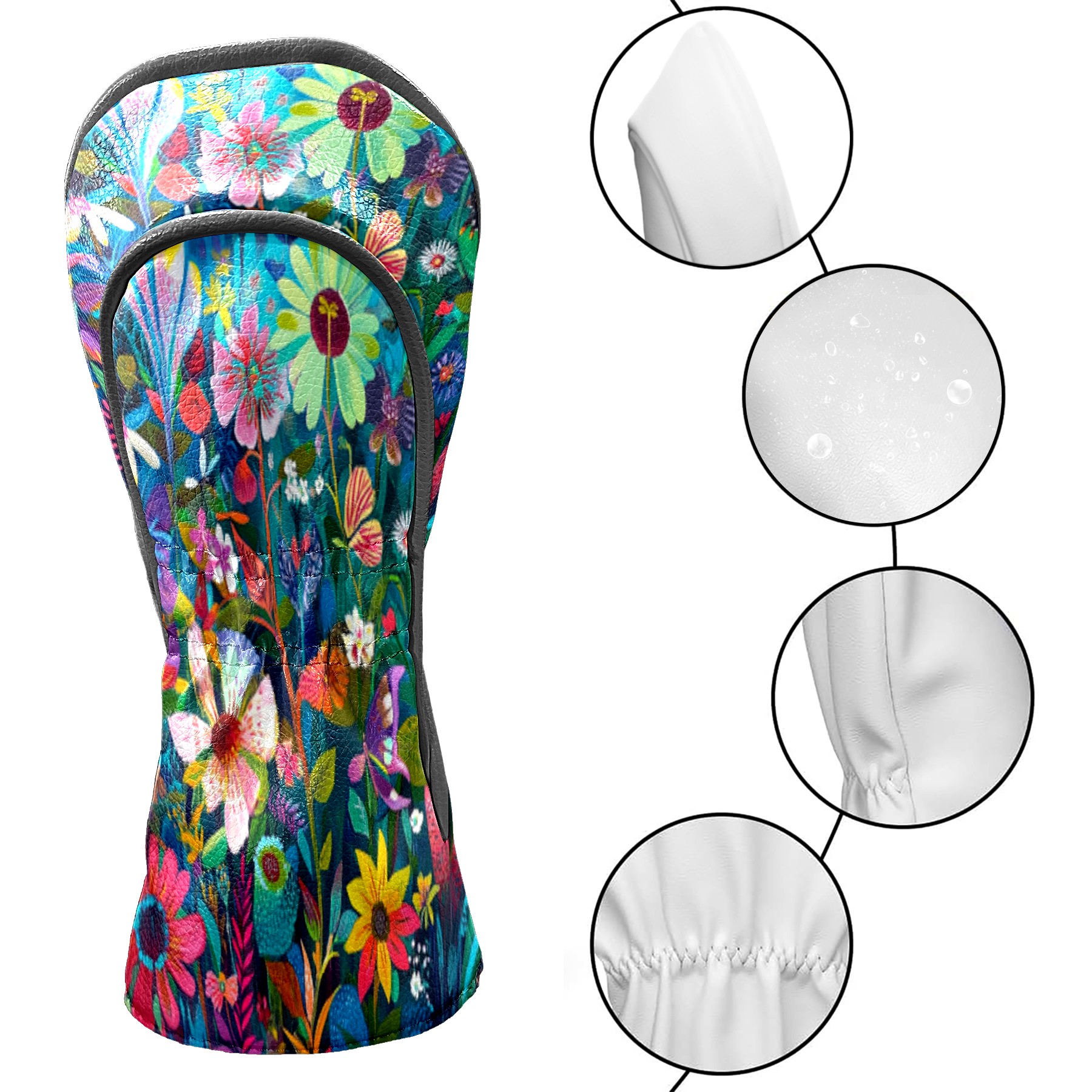 Golf Club Head Cover Waterproof Leather Golf Club Cover Driver Headcover for Women Men Flowers14