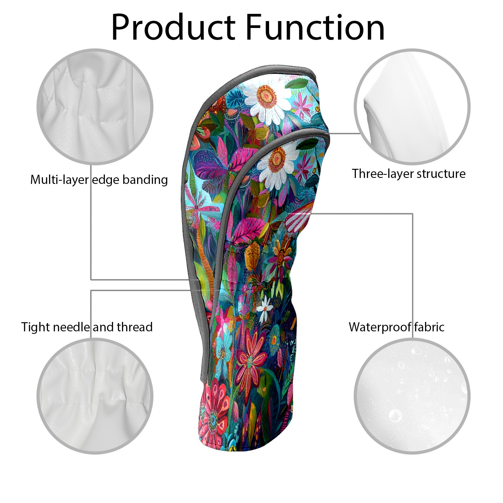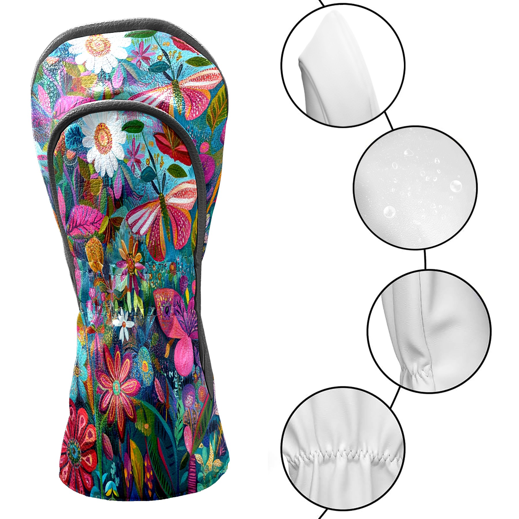 Golf Club Head Cover Waterproof Leather Golf Club Cover Driver Headcover for Women Men Flowers15