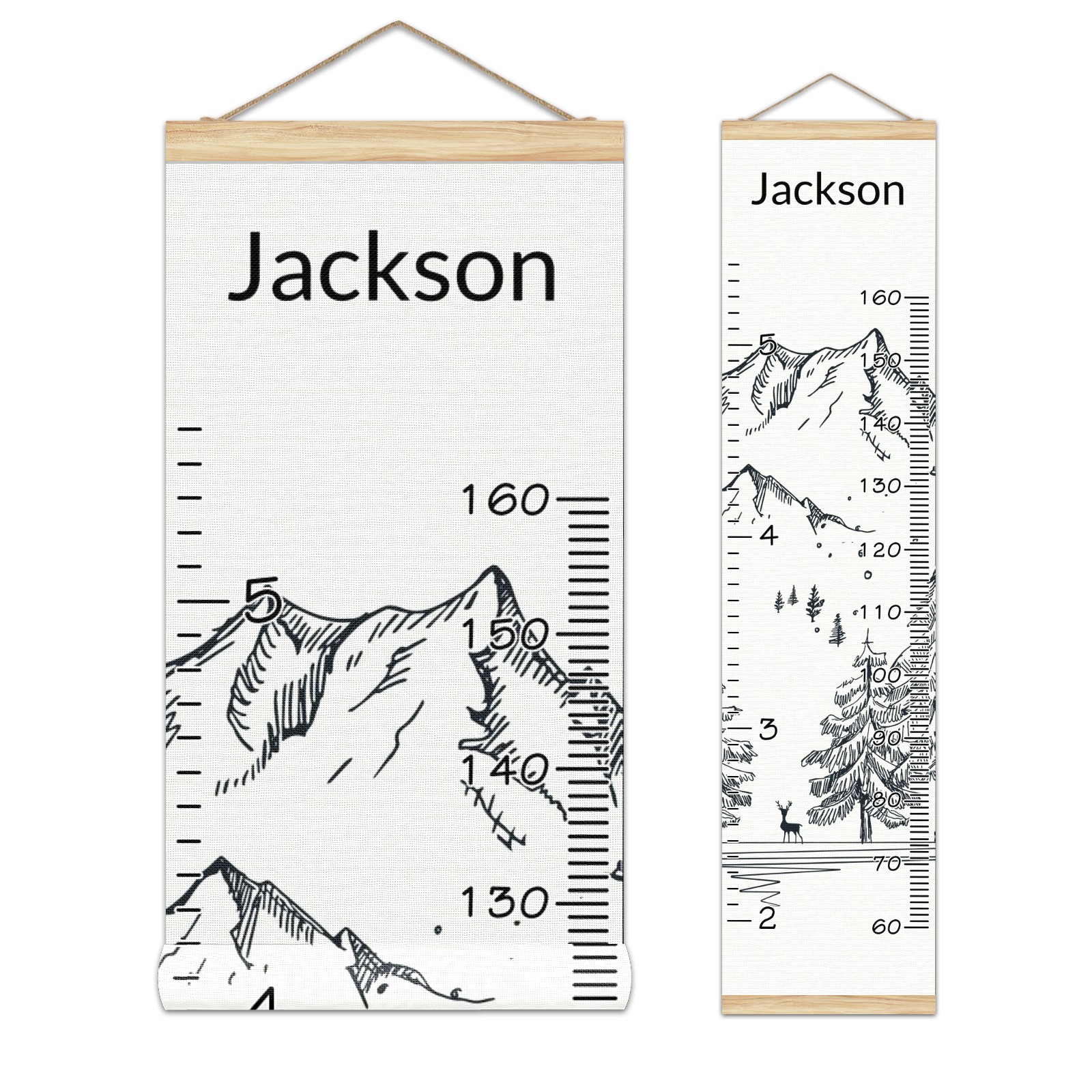 Personalized Kids Name Growth Chart Ruler for Wall Wood Frame Canvas Height Measure Chart 13.4x56 in Hanging Growth Chart Winter Mountain6.9-1 Boys Girls Room Decor