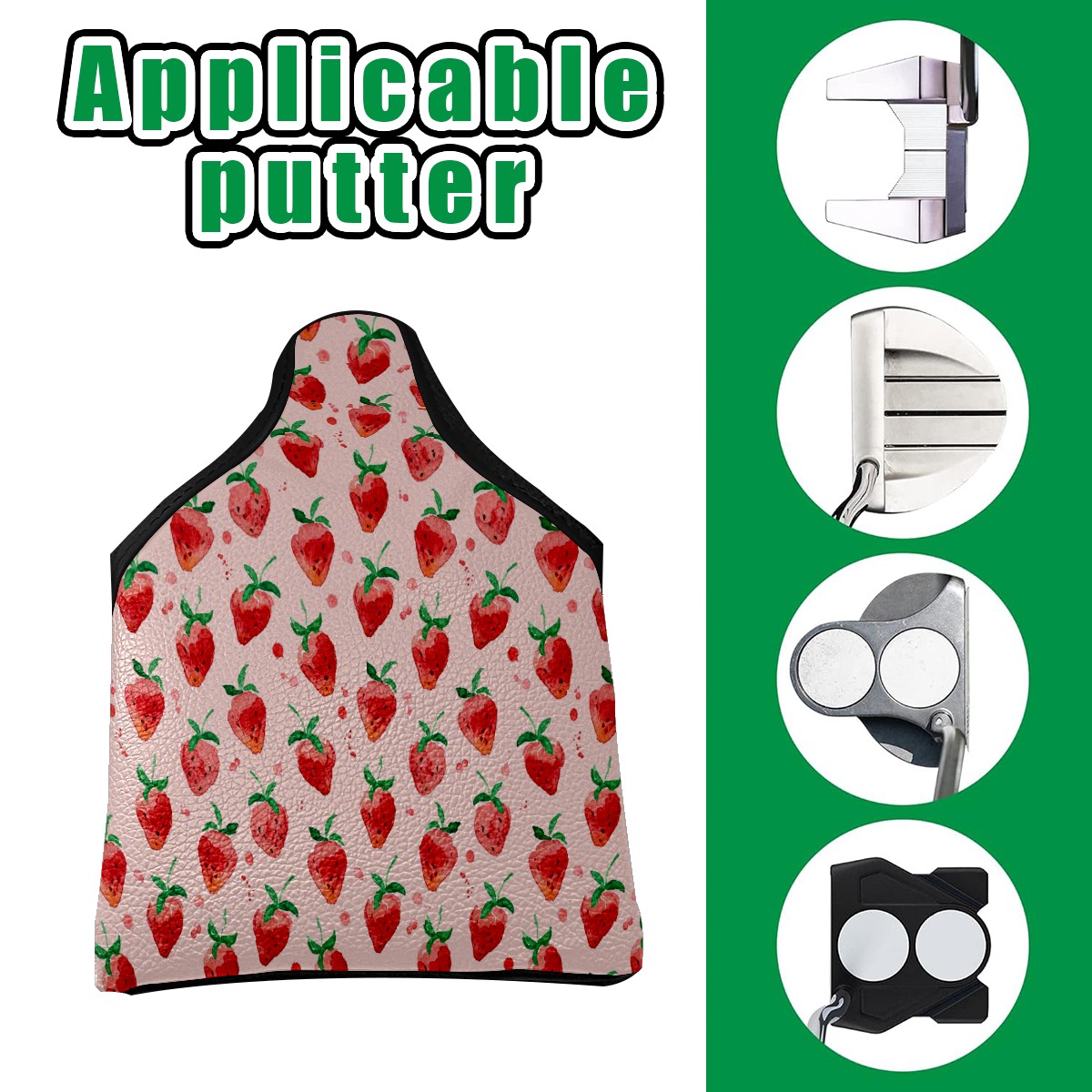 PU Leather and Waterproof Mallet Putter Cover Portable Golf Putter Cover Golfer Gift Adults Men Women Strawberry Fruit Summer
