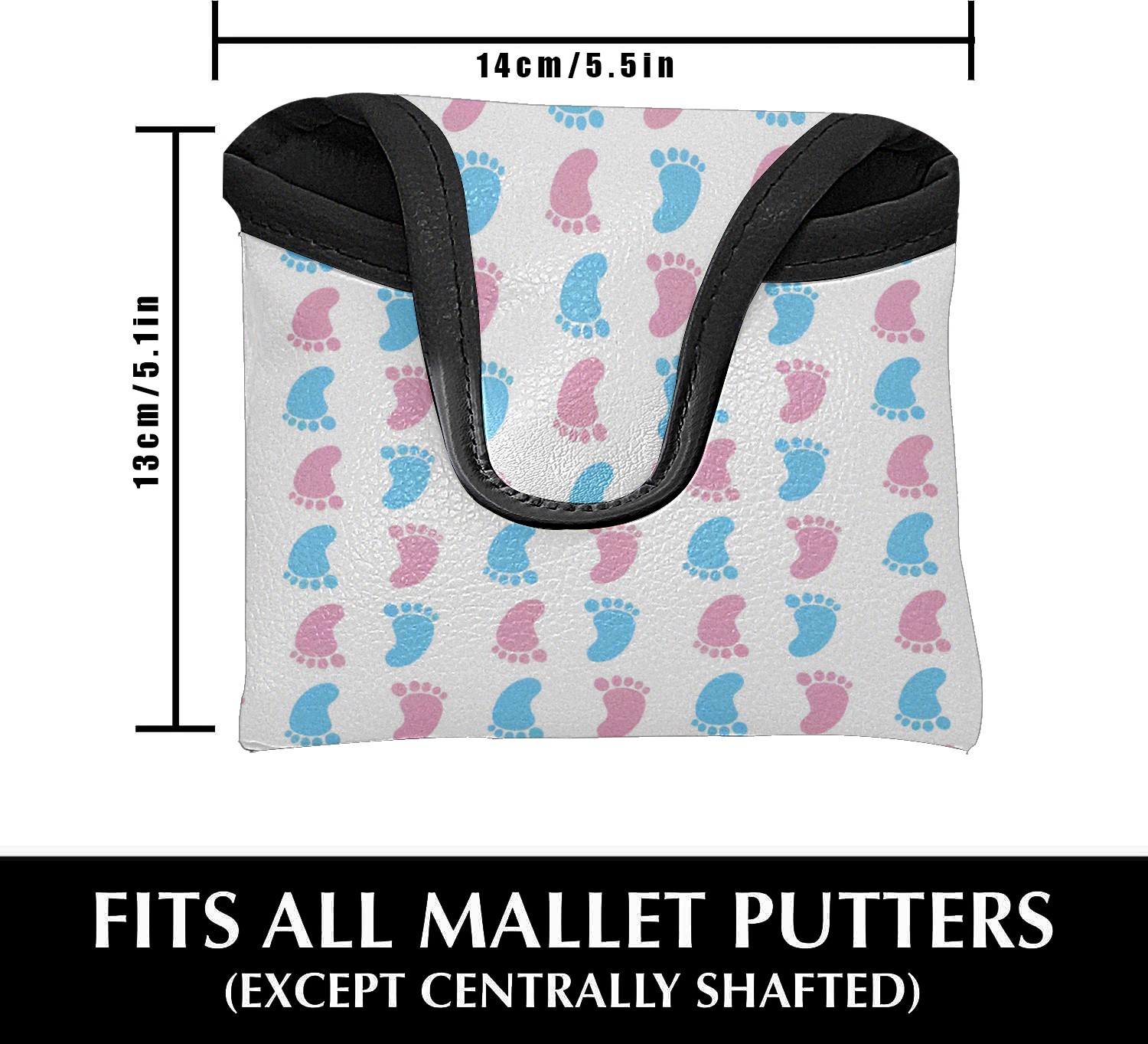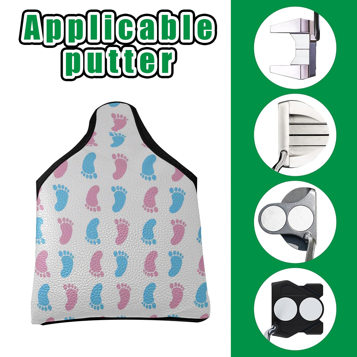 PU Leather and Waterproof Mallet Putter Cover Portable Golf Putter Cover Golfer Gift Adults Men Women Colorful Baby Footprints