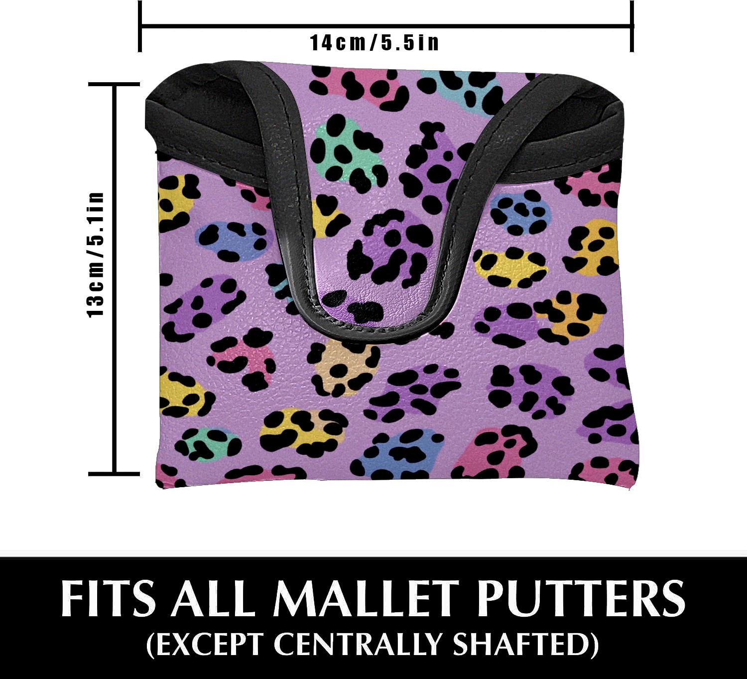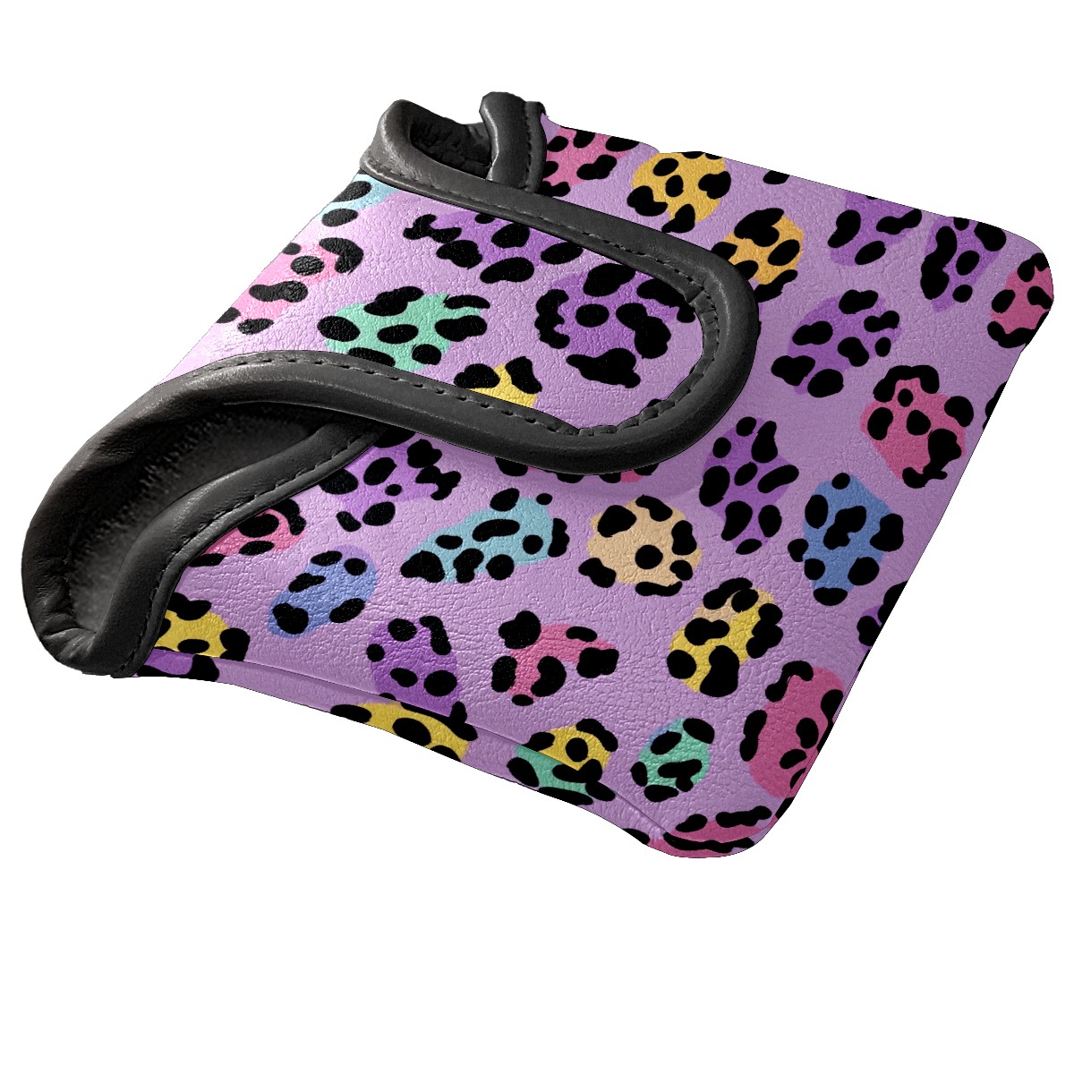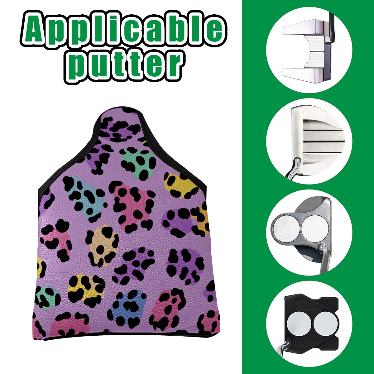 Golf Club Head Covers for Mallet Putter, Waterproof Leather Headcovers for Golf Clubs, Ideal Golf Accessories Gift for Men Women (Holographic Leopard Print)