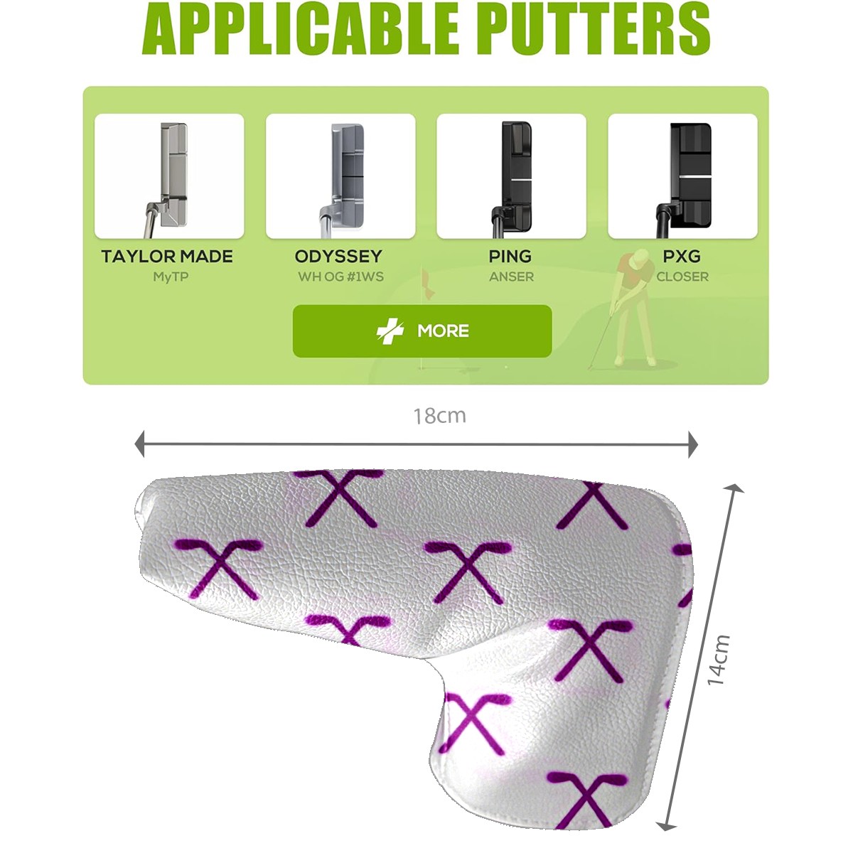 • <p>In the world of golfing equipment, the details often show professionalism and care. We carefully present this putter head protector as a classic golf accessory that will bring a new upgrade to your golf experience. It is a fusion of precision and fashion. The exterior is made of high-quality leather with a tough and textured texture that can effectively resist wear and tear and scratches from daily use. The soft inner lining wraps a gentle protective film around the putter head, avoiding minor scratches and damages caused by collisions and prolonging the life of the putter. The unique closure design is the finishing touch, super strong adhesive force, no matter how you walk on the course, bumps, it is as stable as a mountain, will not easily fall off. It is very convenient to take off the putter cover and put it into the stroke with just one pull, so that every operation is smooth and natural. It is the crystallization of retro and practical. With a strong retro flavor, it pays tribute to the classic tradition of golf. Its shape perfectly fits the unique shape of a mallet putter, providing all-around wrap-around protection for the putter head. The design of the mallet putter head protector is inspired by the golden age of golf, and the retro pattern and color combination make people feel as if they have traveled through time and space to experience the deep historical heritage of the game of golf. Whether on a traditional style golf course or a modern and fashionable course, it fits perfectly and adds a unique charm to your clubs.<br></p>