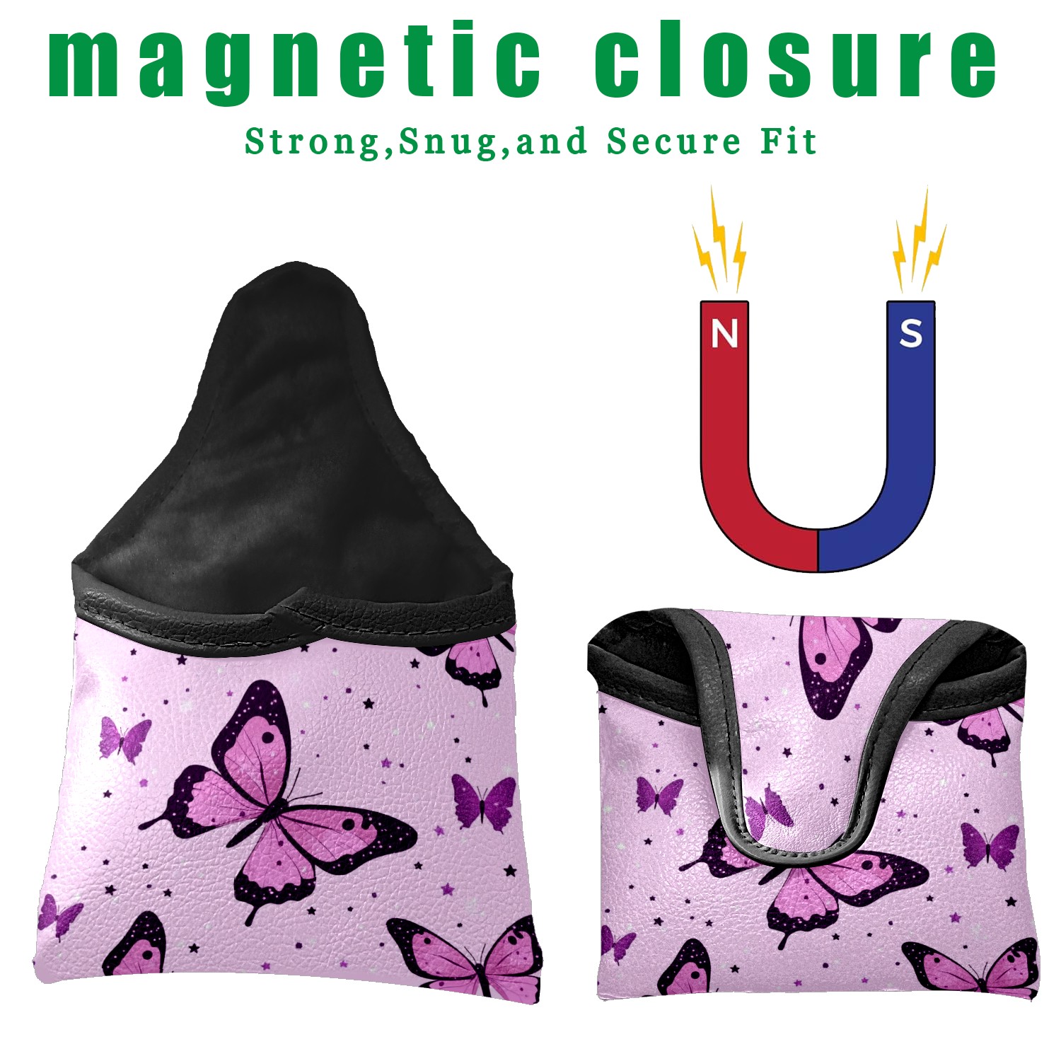 Golf Club Head Covers for Mallet Putter, Waterproof Leather Headcovers for Golf Clubs, Ideal Golf Accessories Gift for Men Women (Pink Leopard Butterflies)