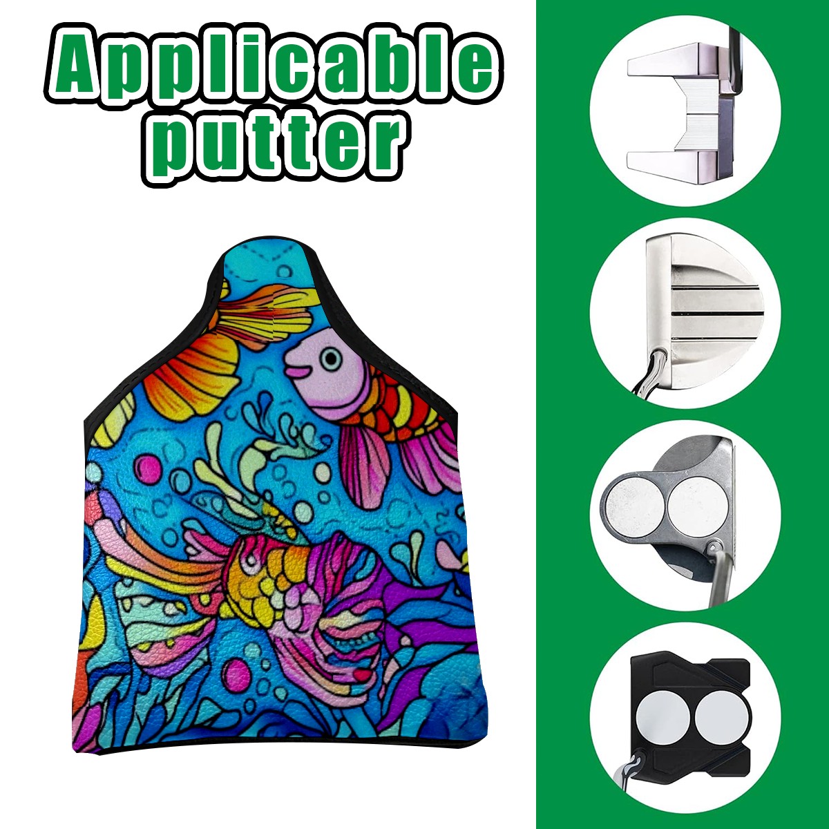 Golf Club Head Cover Waterproof Leather Golf Headcover Velvet Lined Golf Cover,Driver Head Covers for Women Men Colorful Fish2