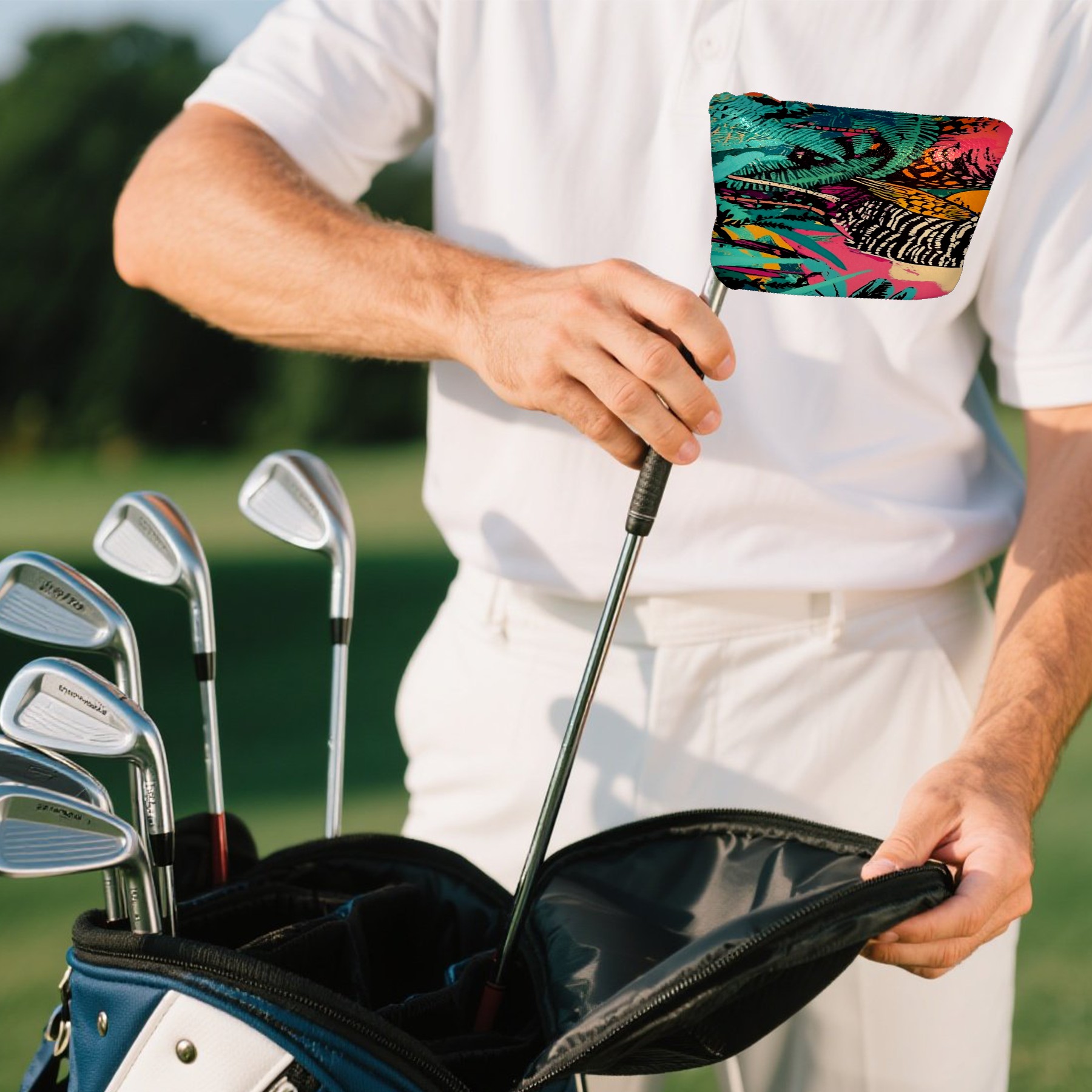 <p>This golf club cover, made of high quality PU leather, combines durability with water and stain resistance to easily cope with complex outdoor environments. The soft velvet lining on the inside of the cover fits the clubs snugly, cushioning them from impact and preventing scratches and abrasions in every way. It's easy to clean, and can be gently scrubbed to keep your clubs in good condition. 13x14cm is the perfect size for all types of clubs, and it's stable and won't wobble. Whether for personal use or as a gift, the thoughtful and practical design makes it an ideal gift for golf enthusiasts on birthdays and festivals, adding a unique style to the bag.</p>