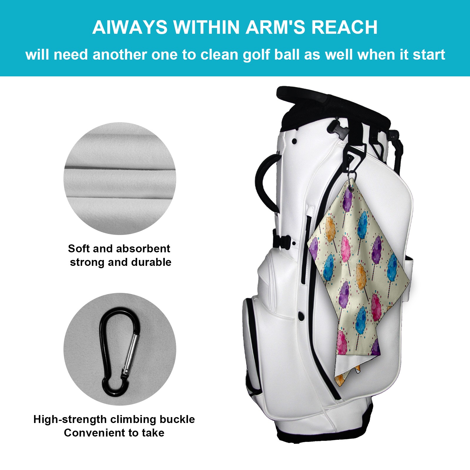 Golf Towel, Absorbent and Fast Drying, Portable and Easy to Store, for Cleaning Club Heads and Balls Candy Floss Pattern Vector_Candy-Floss-Pattern-Vector(noise_scale)(Level1)(x2.000000)