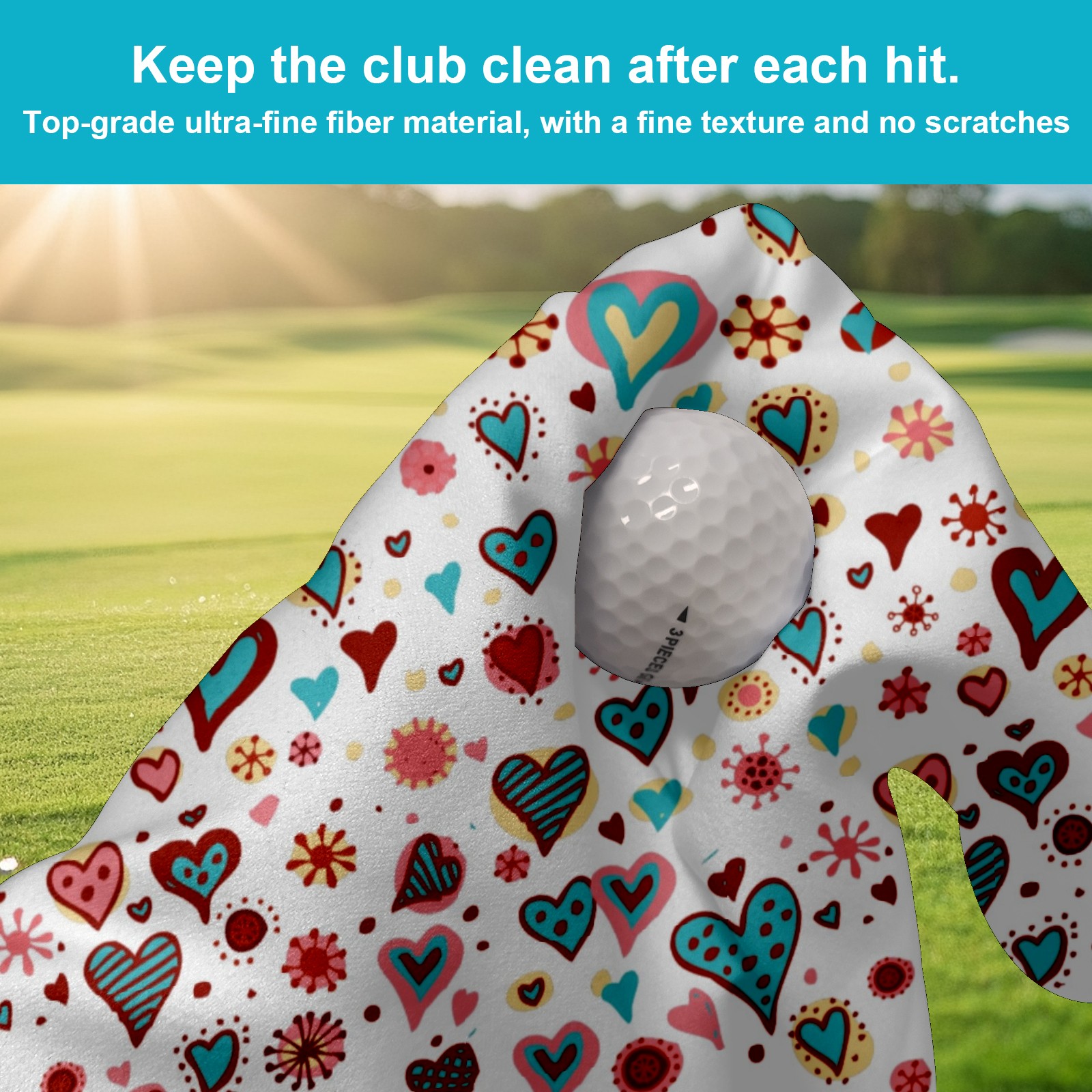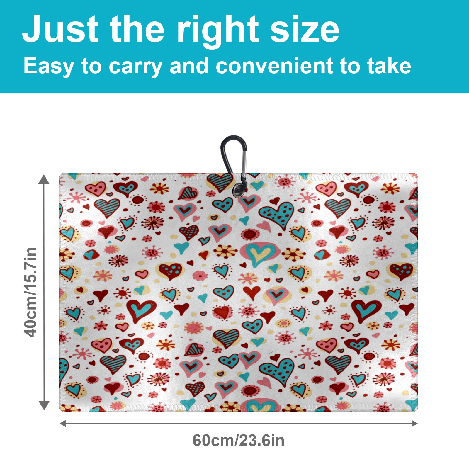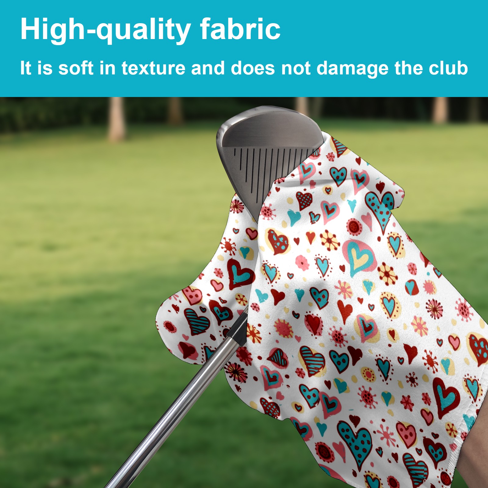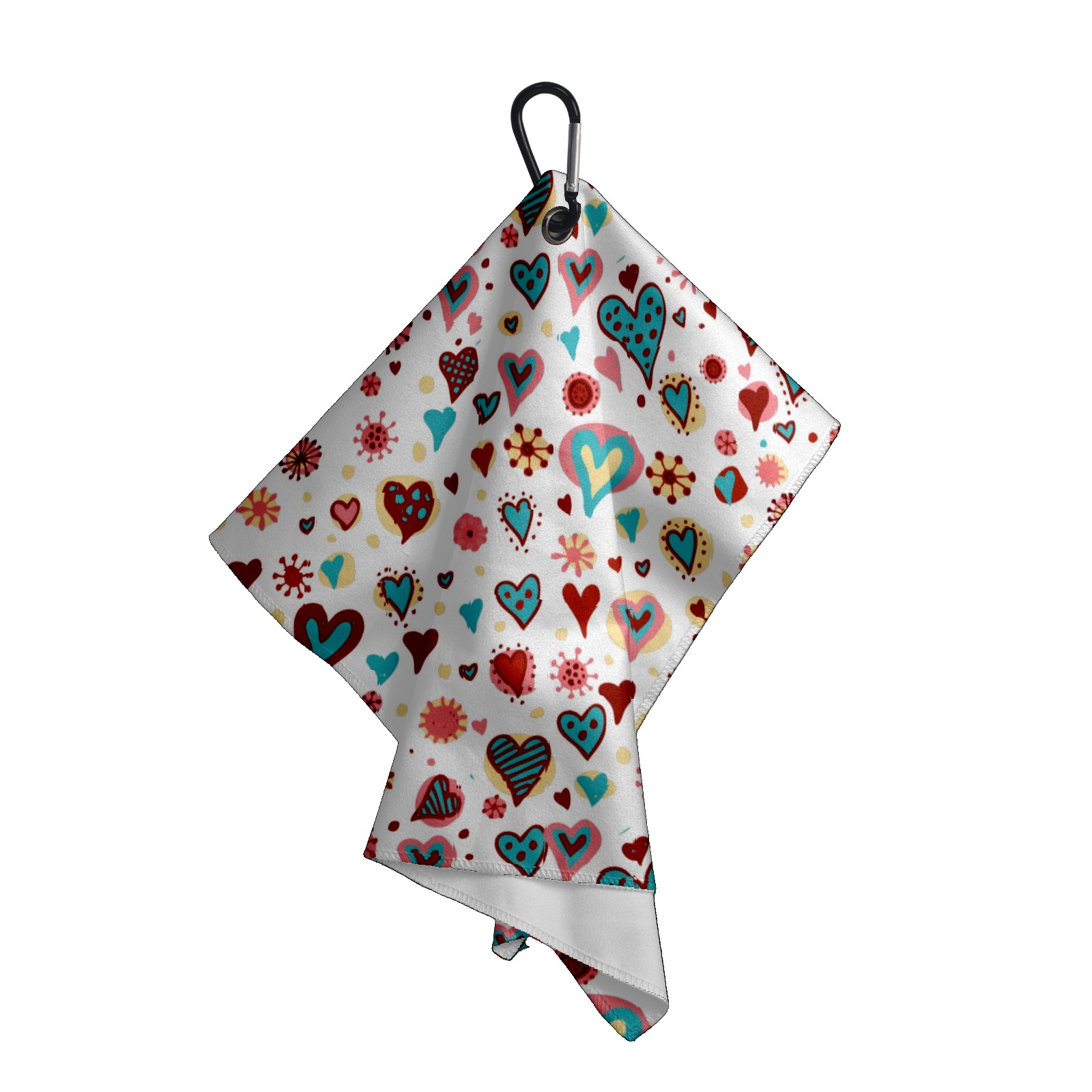 Golf Towel, Absorbent and Fast Drying, Portable and Easy to Store, for Cleaning Club Heads and Balls Cute Cartoon Colorful Valentines Hearts Pattern