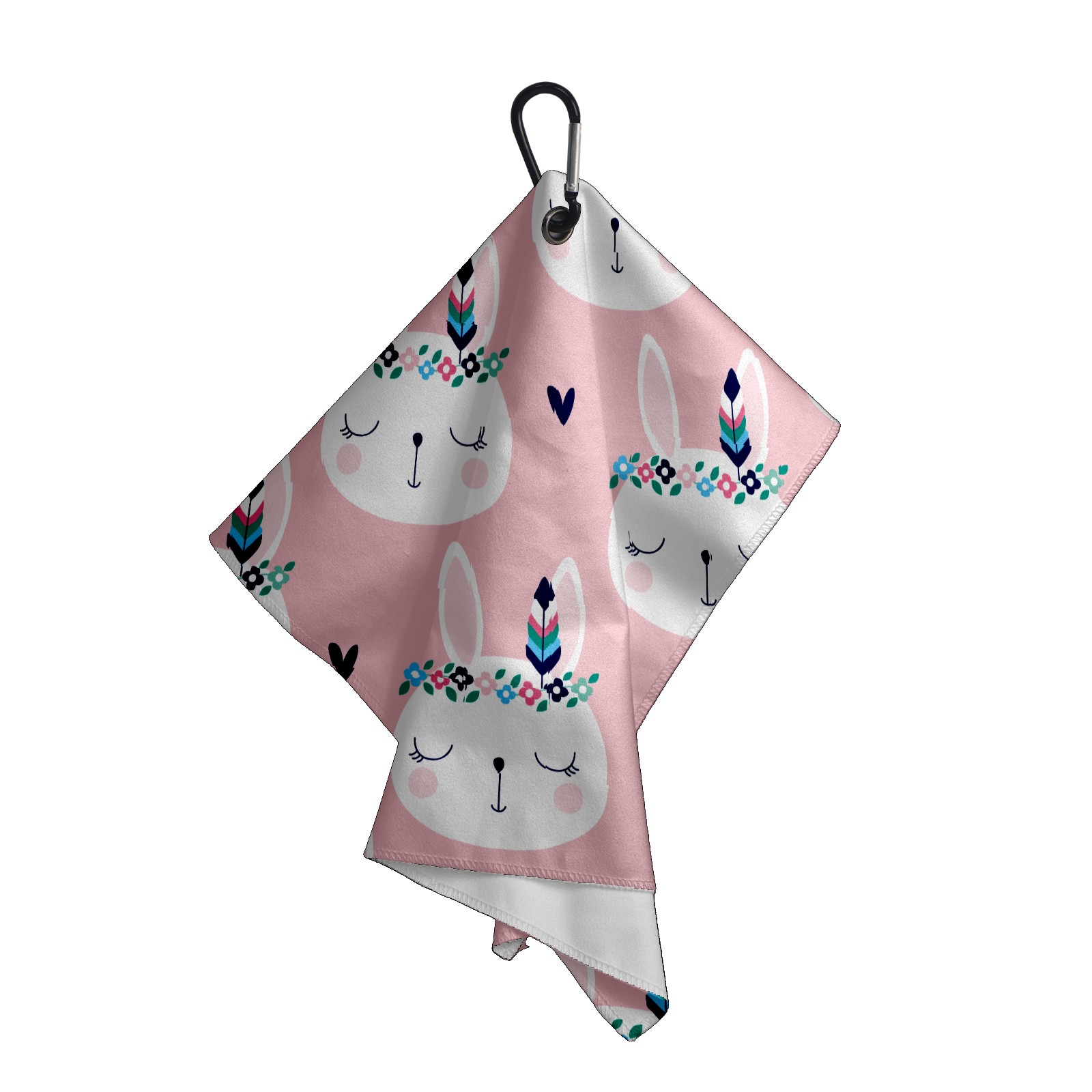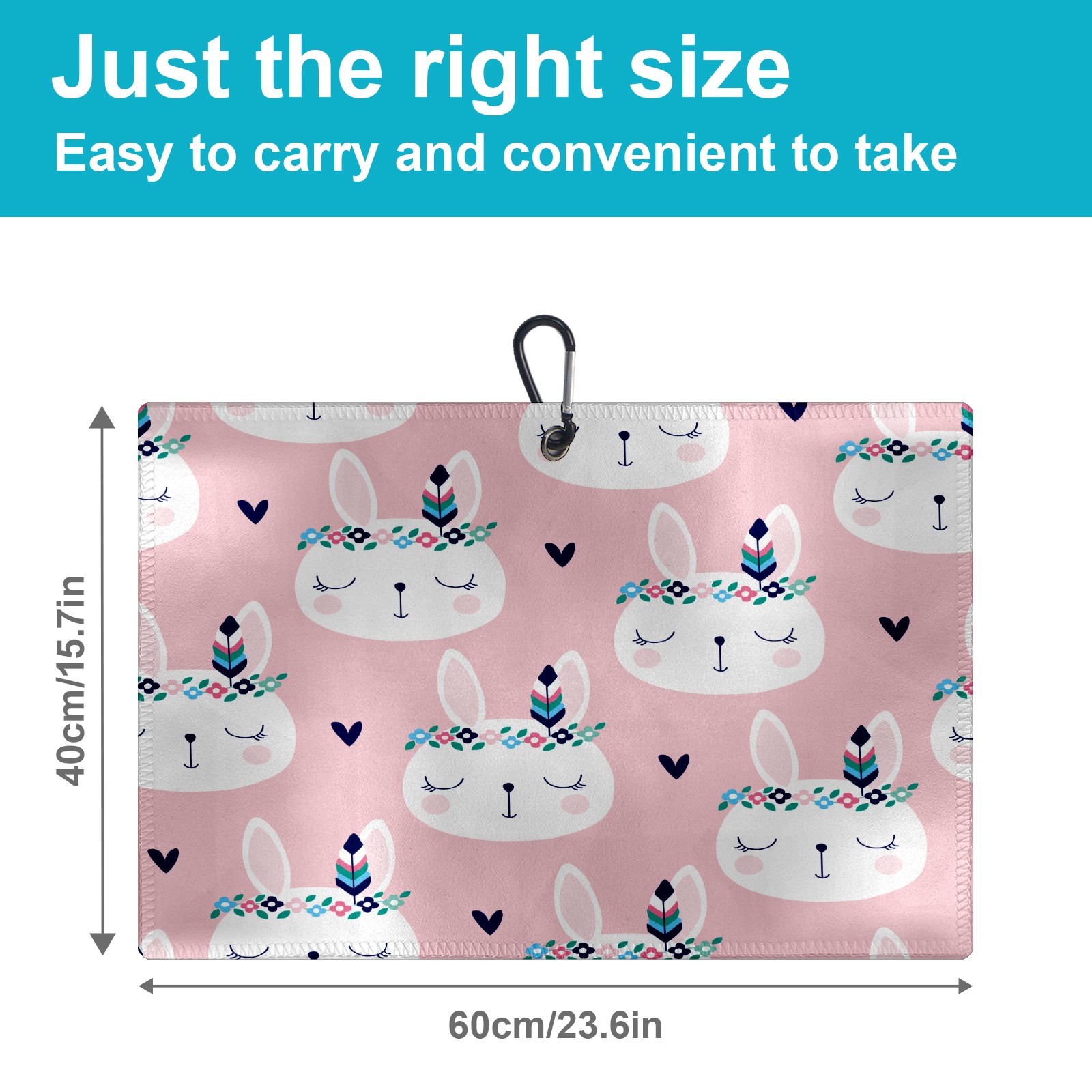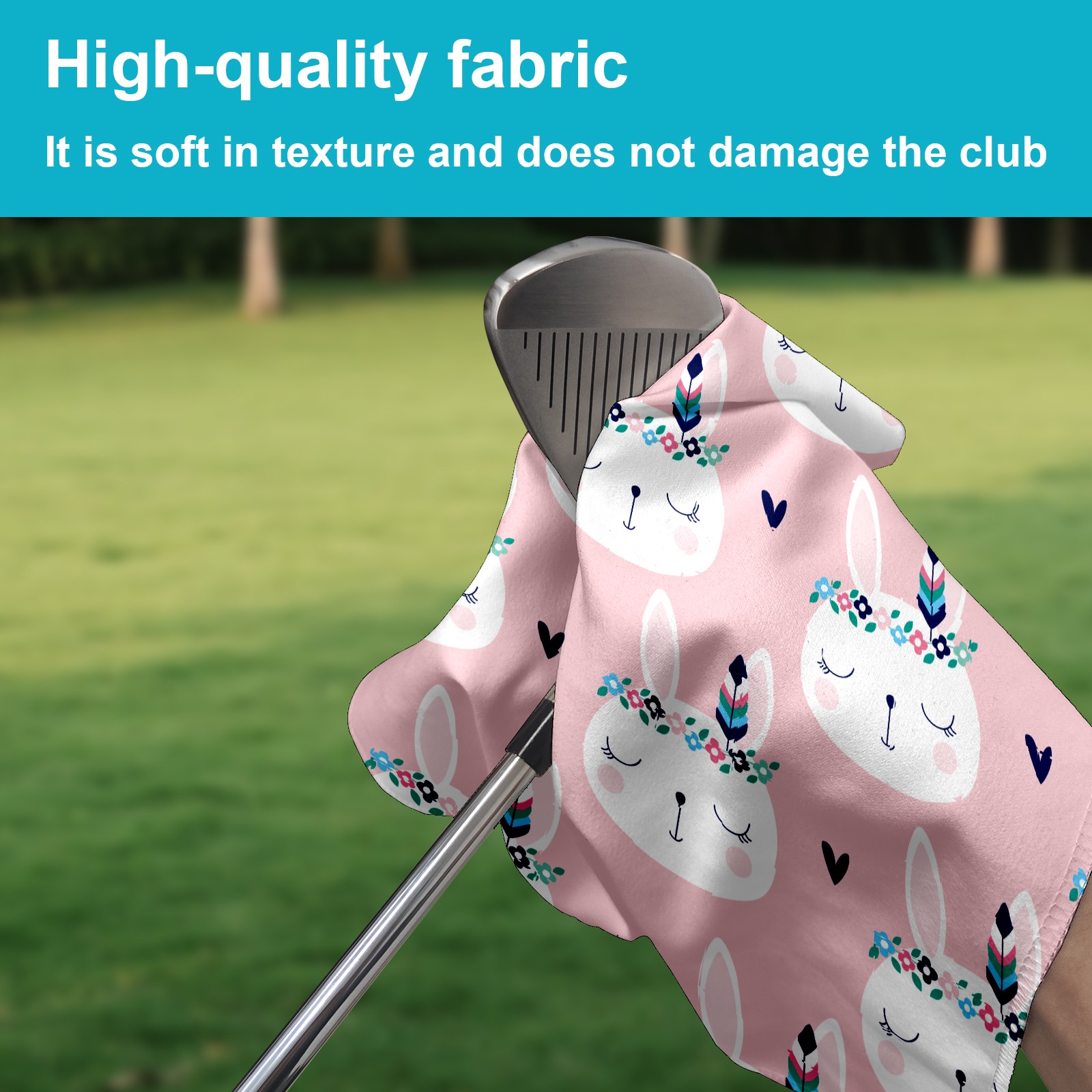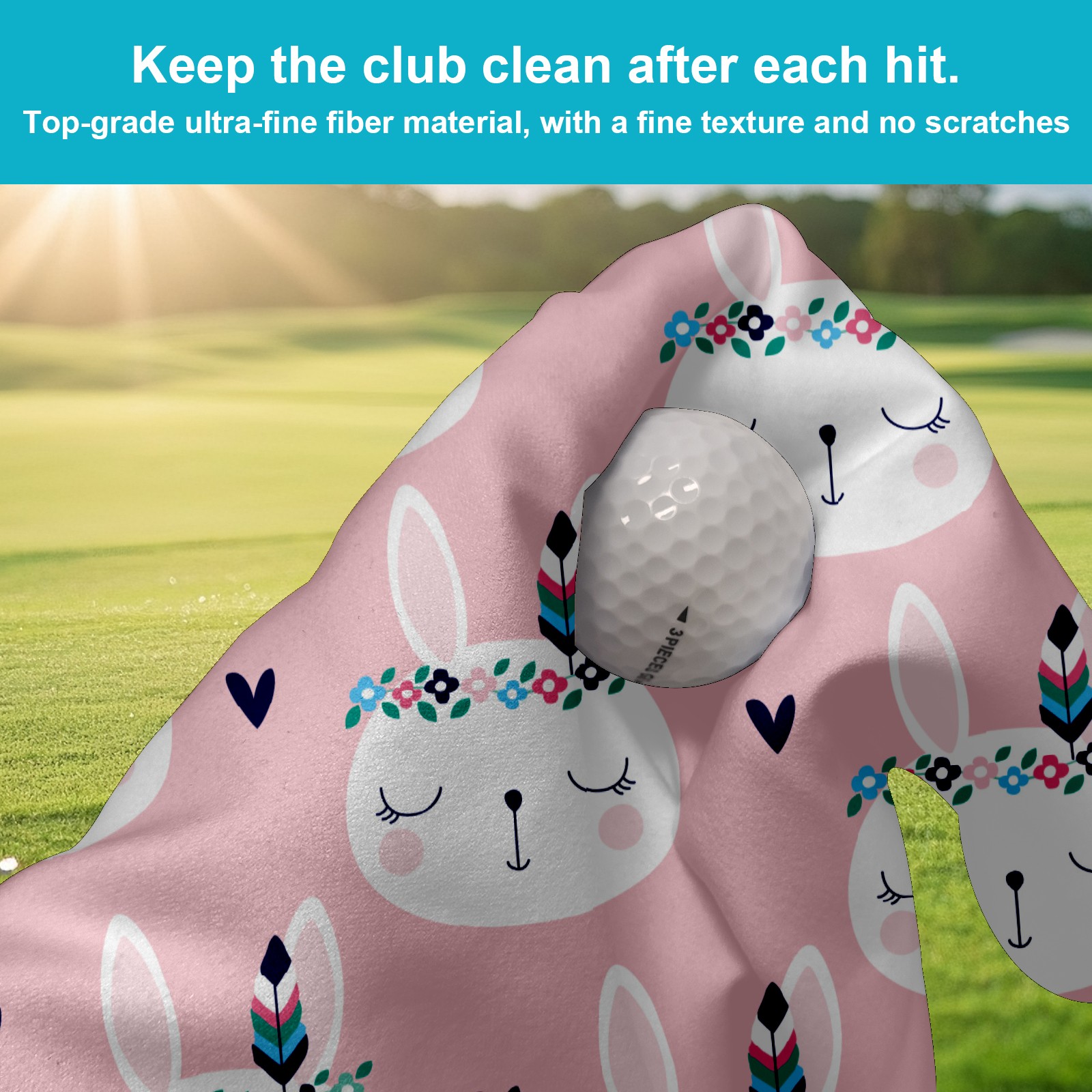 Golf Towel, Absorbent and Fast Drying, Portable and Easy to Store, for Cleaning Club Heads and Balls Easter Bunny Rabbit Love Floral Pattern